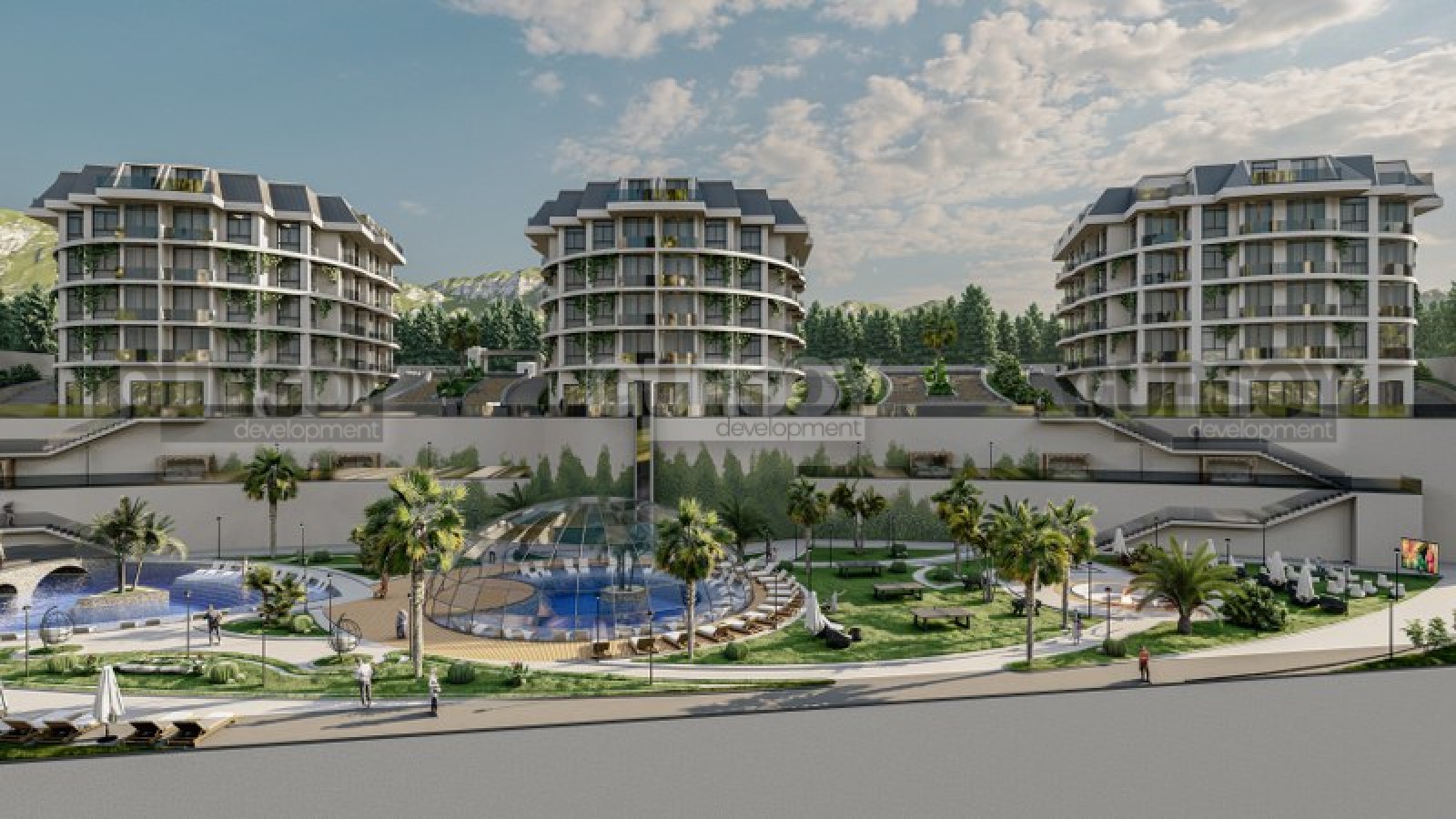 Однако этот комплекс - это не только квартиры. Здесь вы найдете обширную инфраструктуру для отдыха и развлечений как внутри помещений, так и на открытом воздухе, включая турецкую баню, фитнес-центр, бассейн, детский бассейн, крытую детскую площадку, площадку для барбекю, детскую площадку, открытую спортивную площадку и открытую автостоянку.