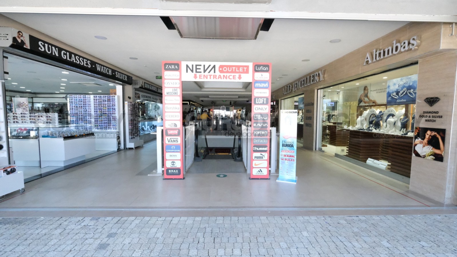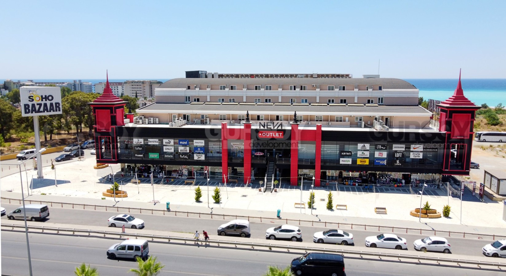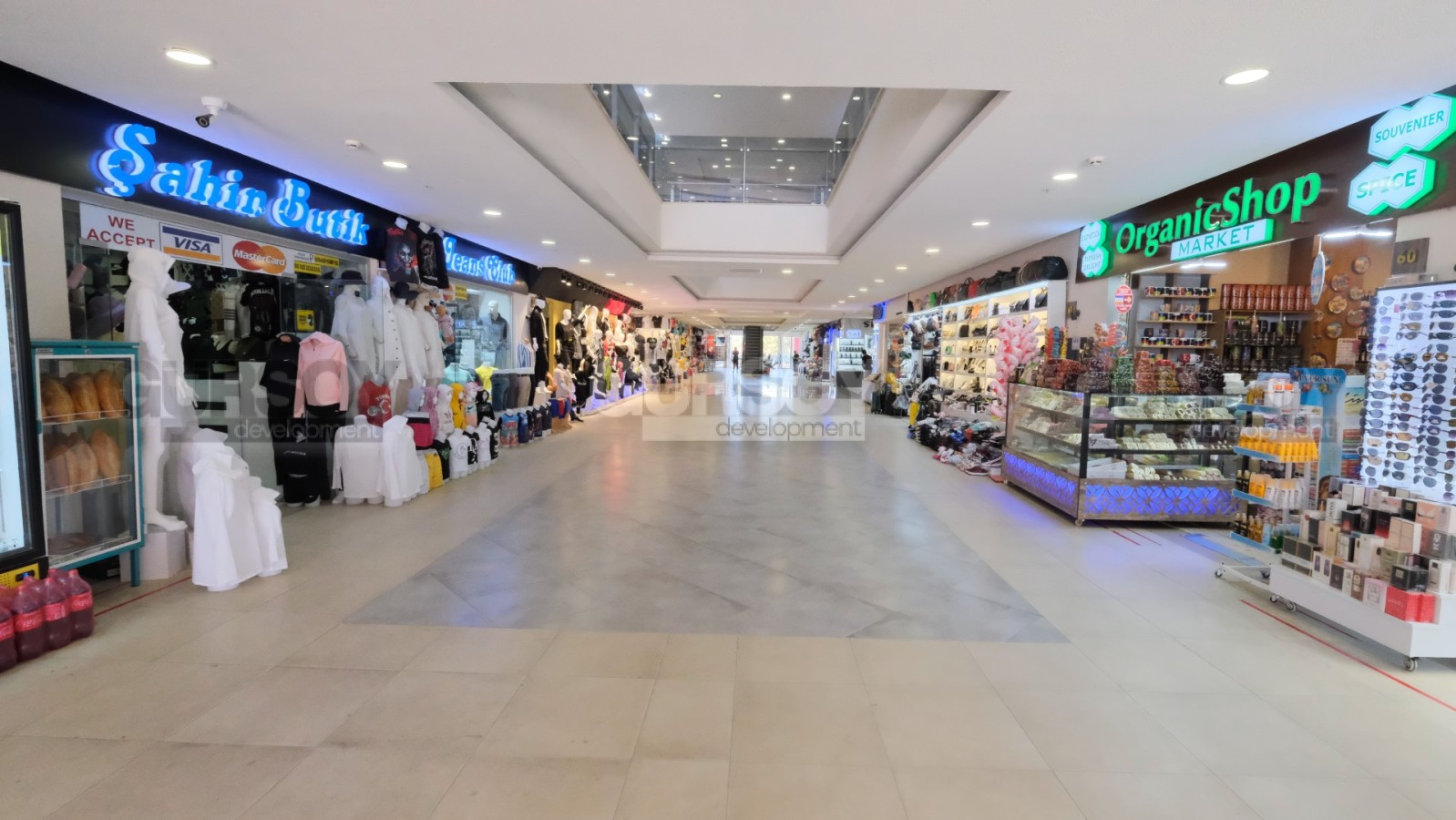Торговый центр начал свою деятельность с 2018 года. Расположен в 400 метрах от моря, на трассе D-400. Рядом с ТЦ располагается картинг, лучшие отели, СПА центр – это означает, что данная локация является удобной и доступной как со стороны главной дороги, так и с разных мест района Окурджалар.