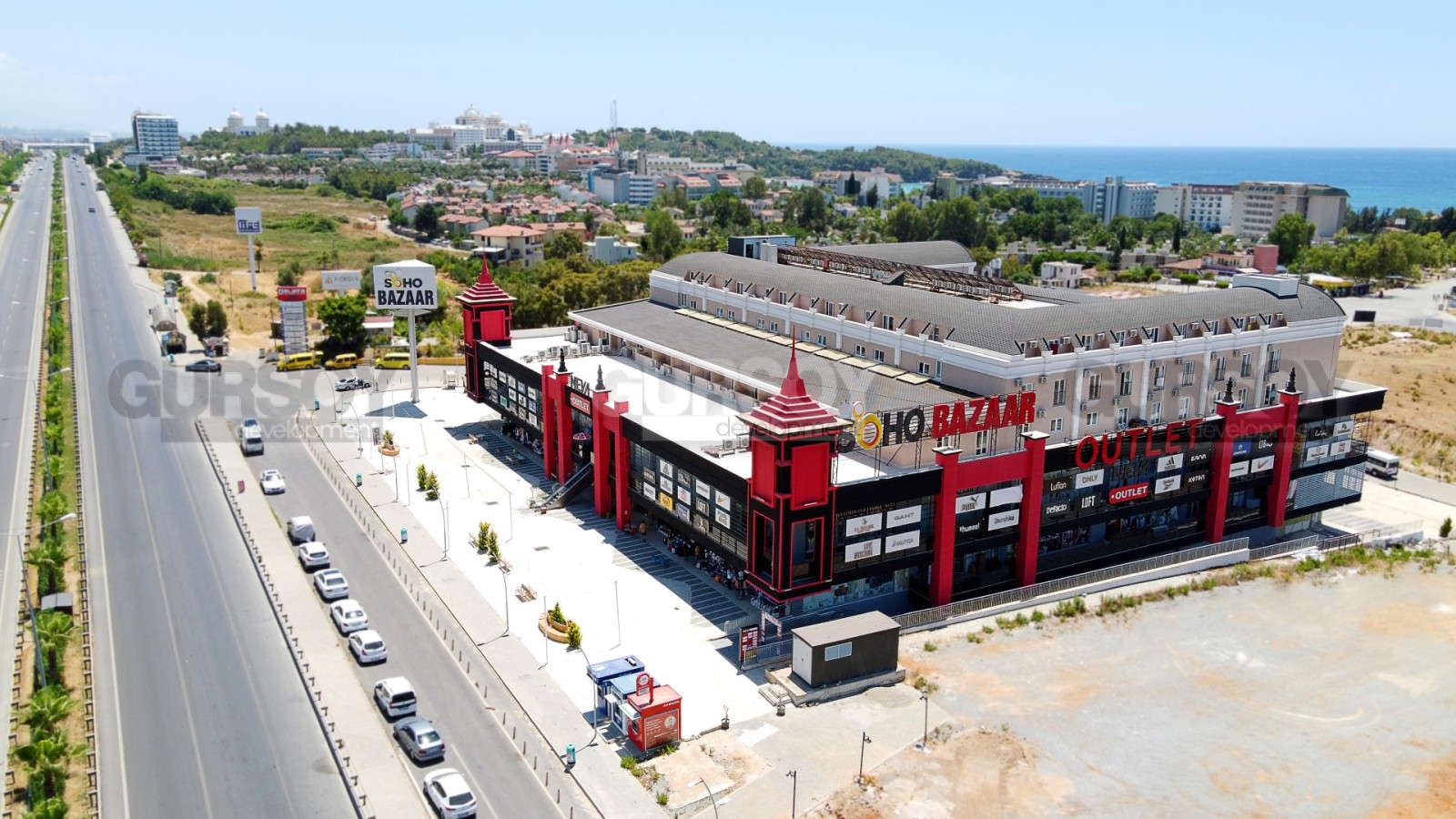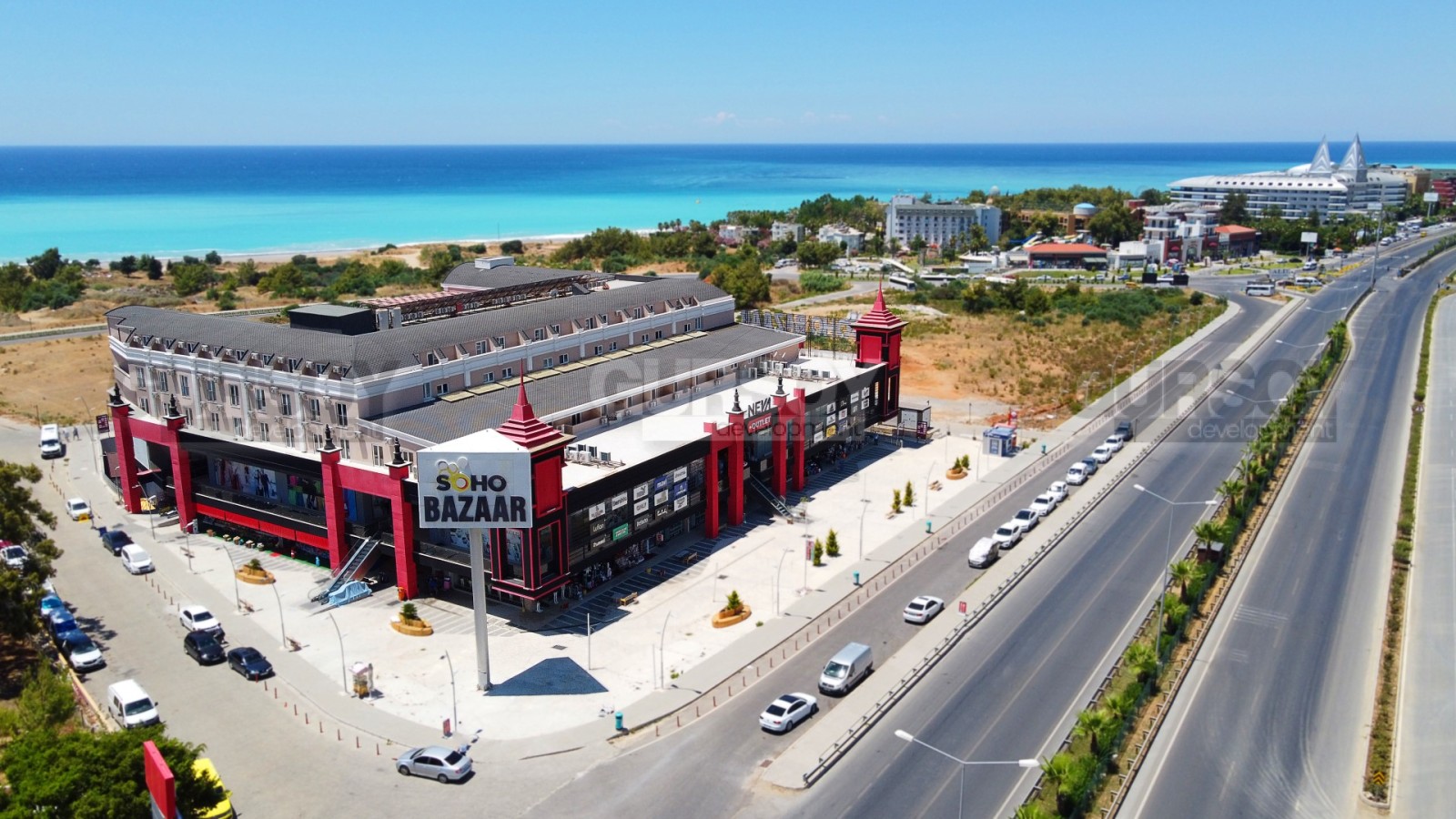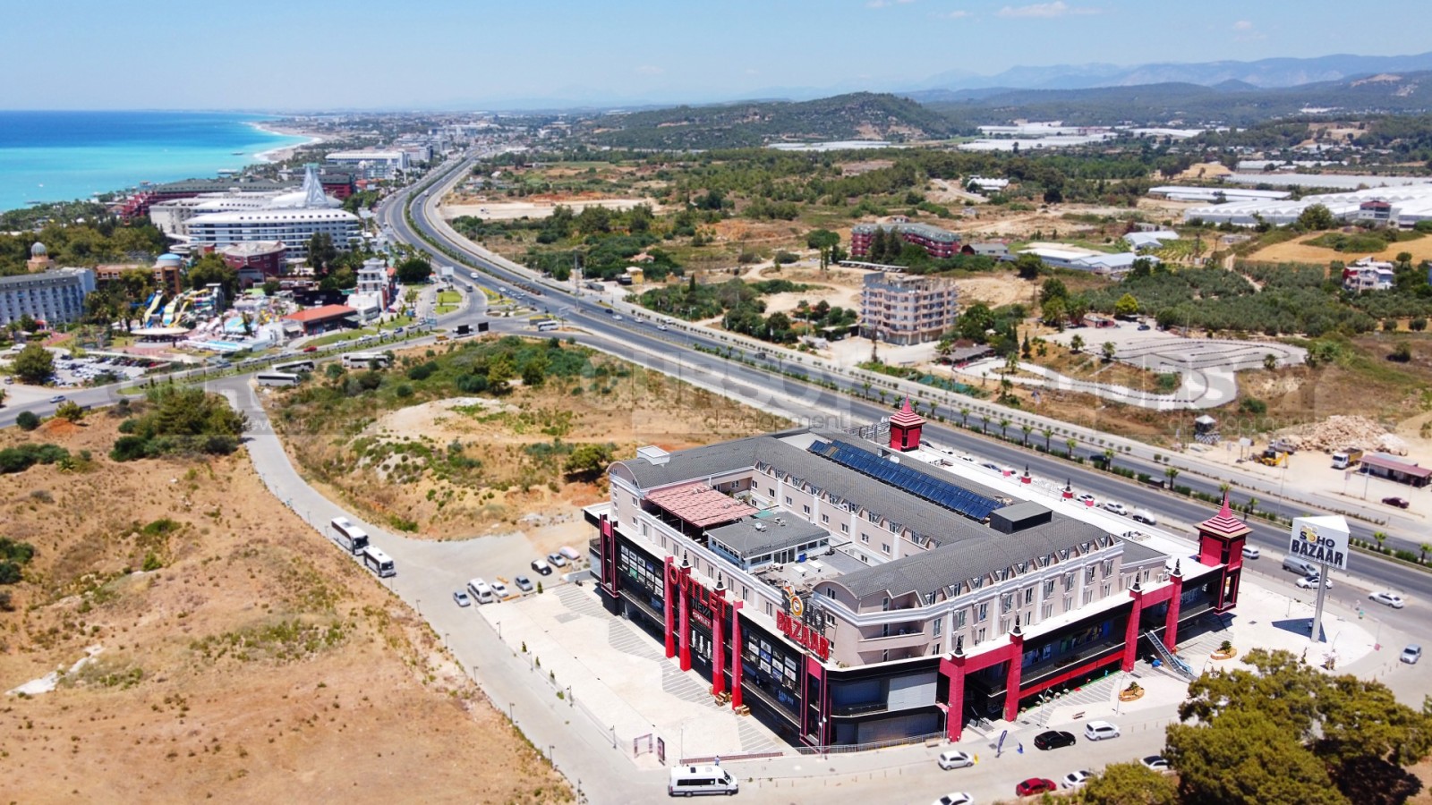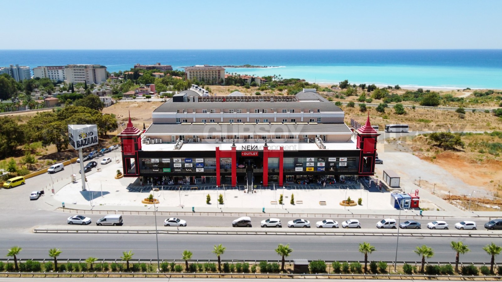 Торговый центр начал свою деятельность с 2018 года. Расположен в 400 метрах от моря, на трассе D-400. Рядом с ТЦ располагается картинг, лучшие отели, СПА центр – это означает, что данная локация является удобной и доступной как со стороны главной дороги, так и с разных мест района Окурджалар.