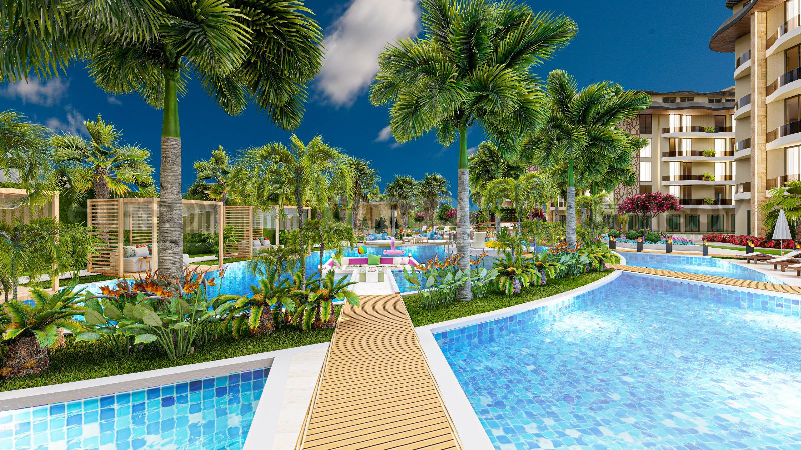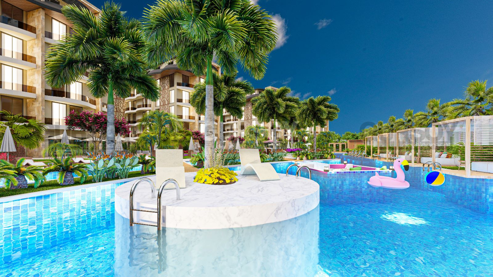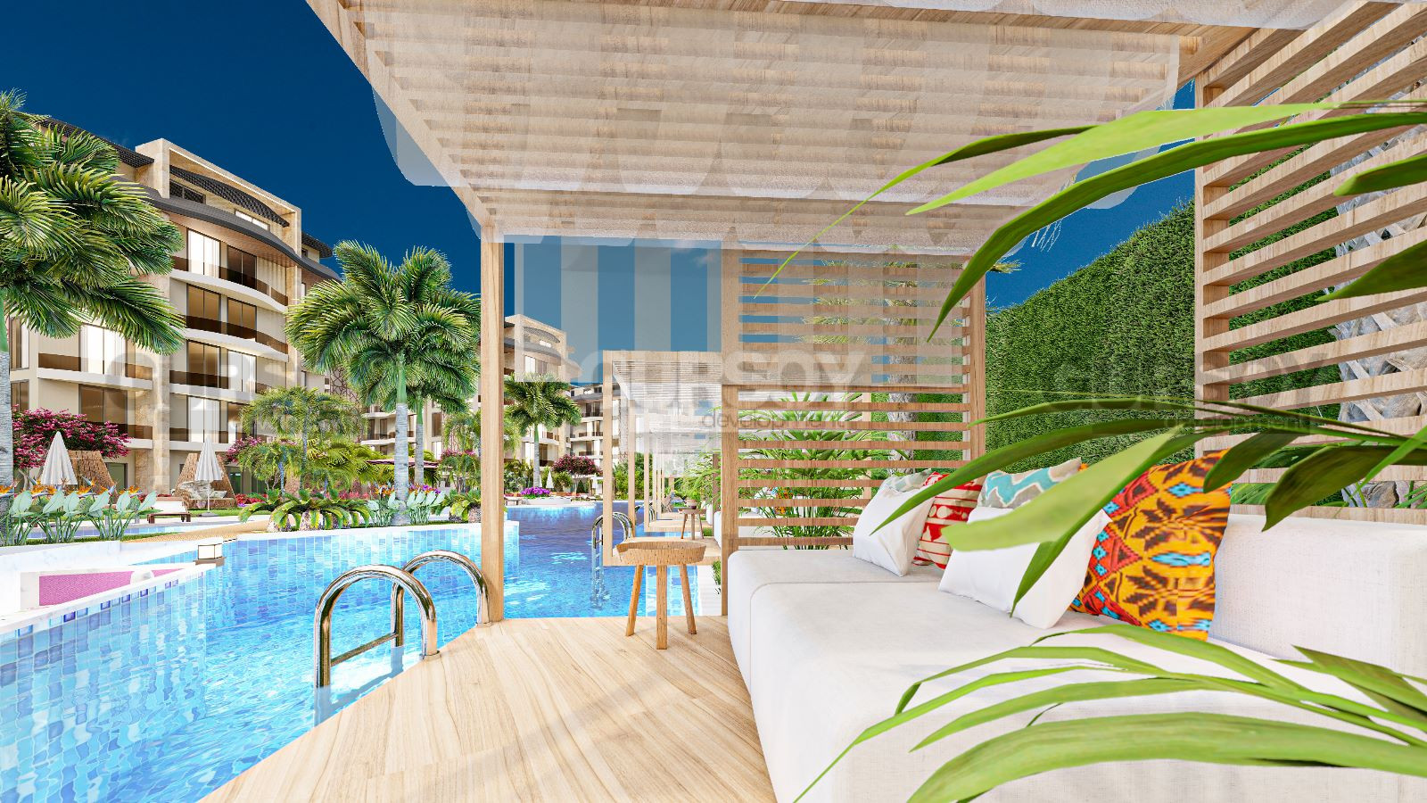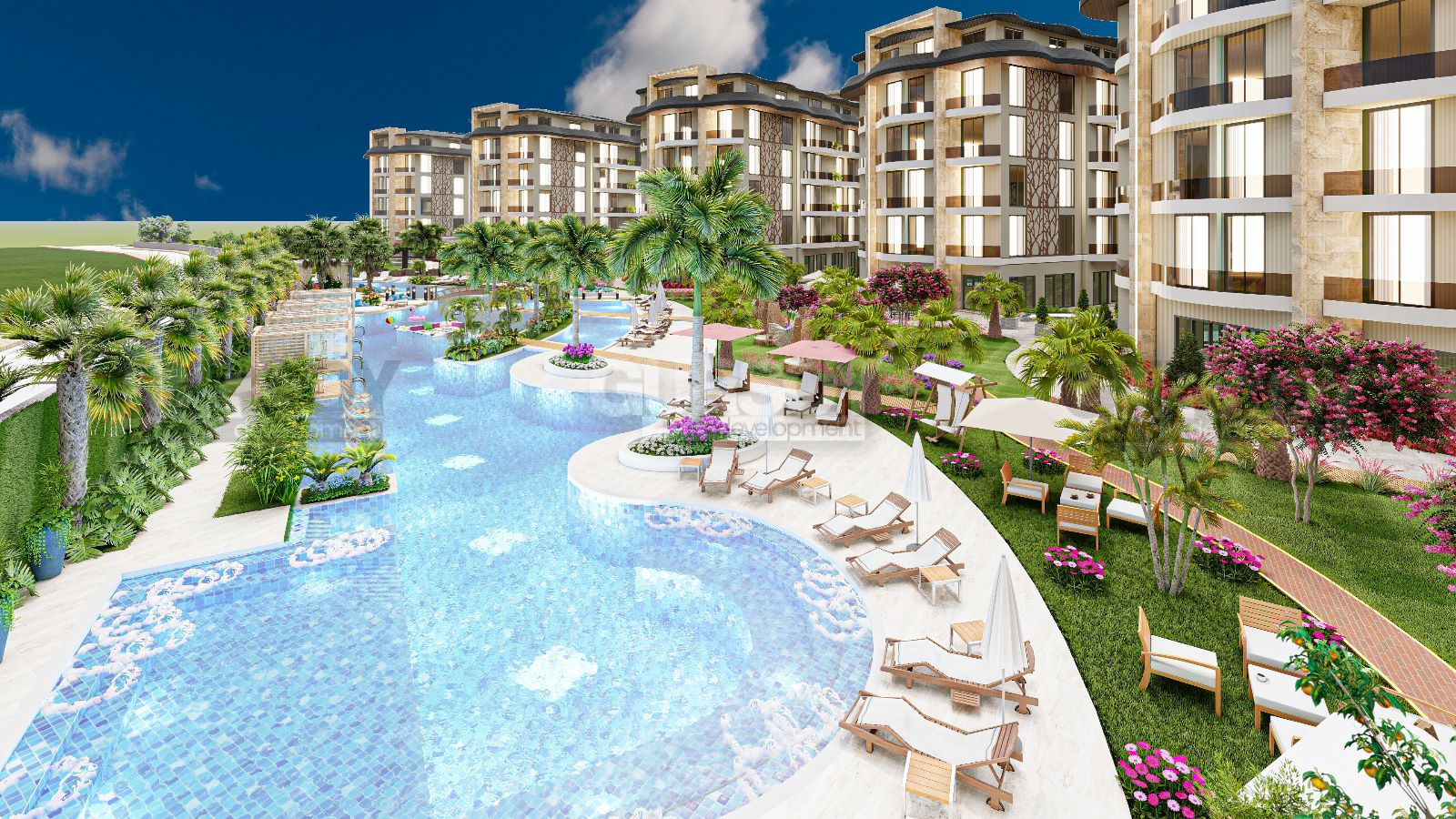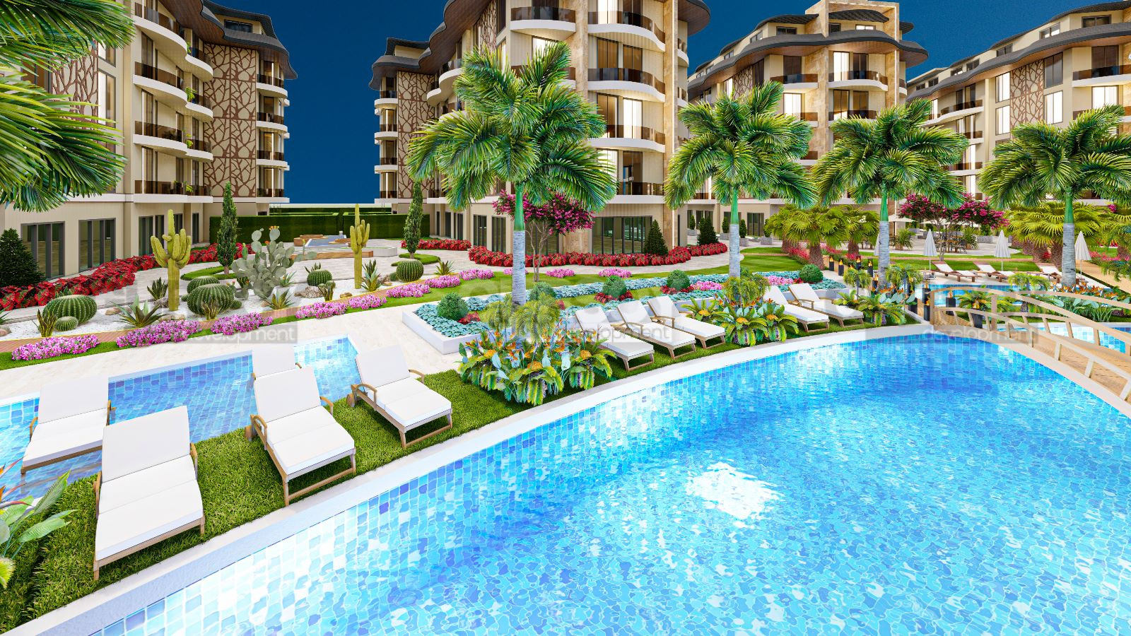 Апартаменты, представленные в продаже, имеют различные планировки - от 1+1 до 3+1 пентхаусов и садовых дуплексов. В стоимость апартаментов входит: входная стальная дверь, видеодомофон, встроенная мебель на кухне и в ванных комнатах, встроенный шкаф в коридоре, полный пакет бытовой техники (холодильник, посудомоечная машина, варочная поверхность, духовка, вытяжка, стиральная машина), кондиционер в каждой комнате, подогрев полов в ванной комнате, душевые кабины, сантехника и электрический водонагреватель.