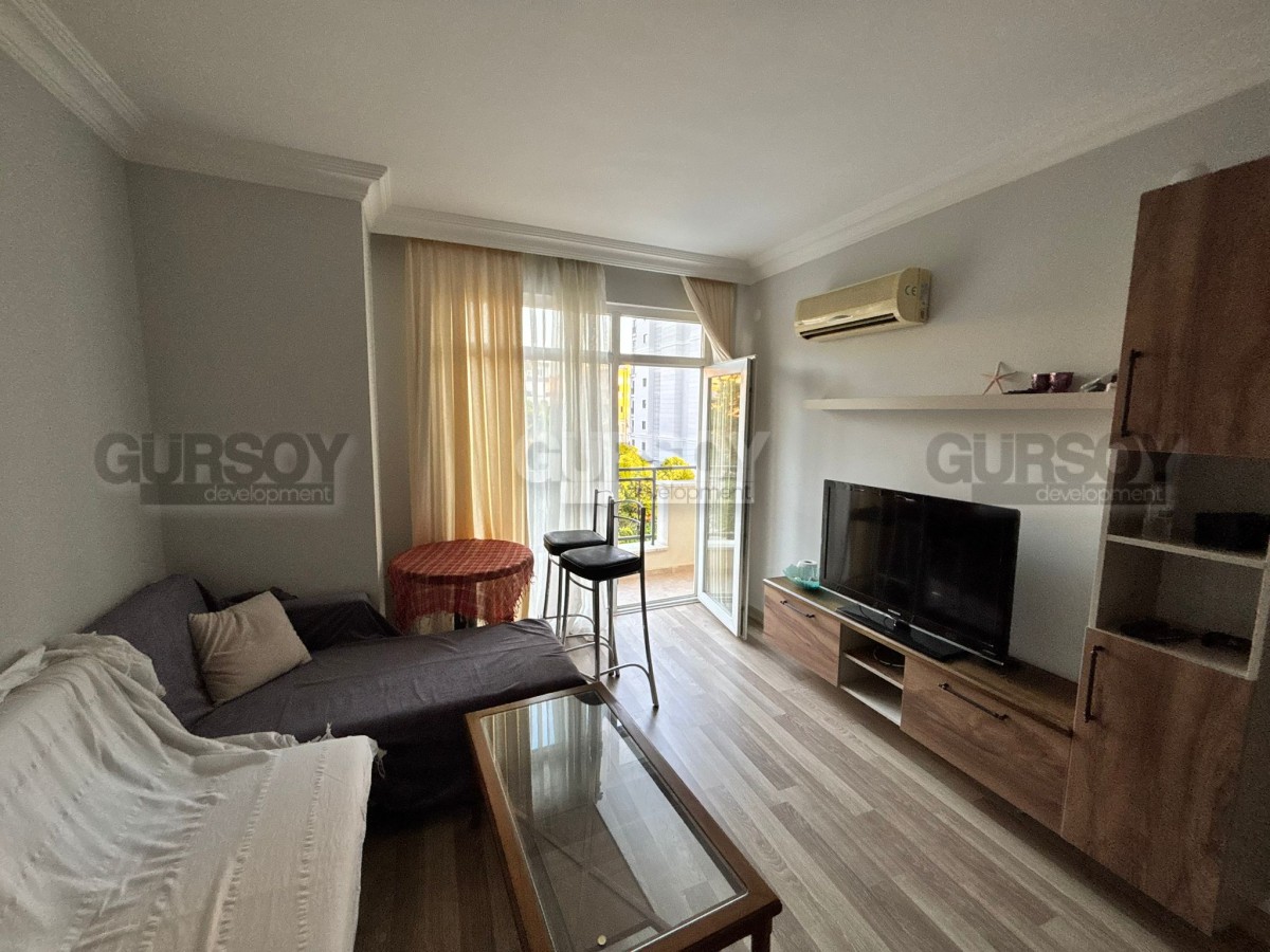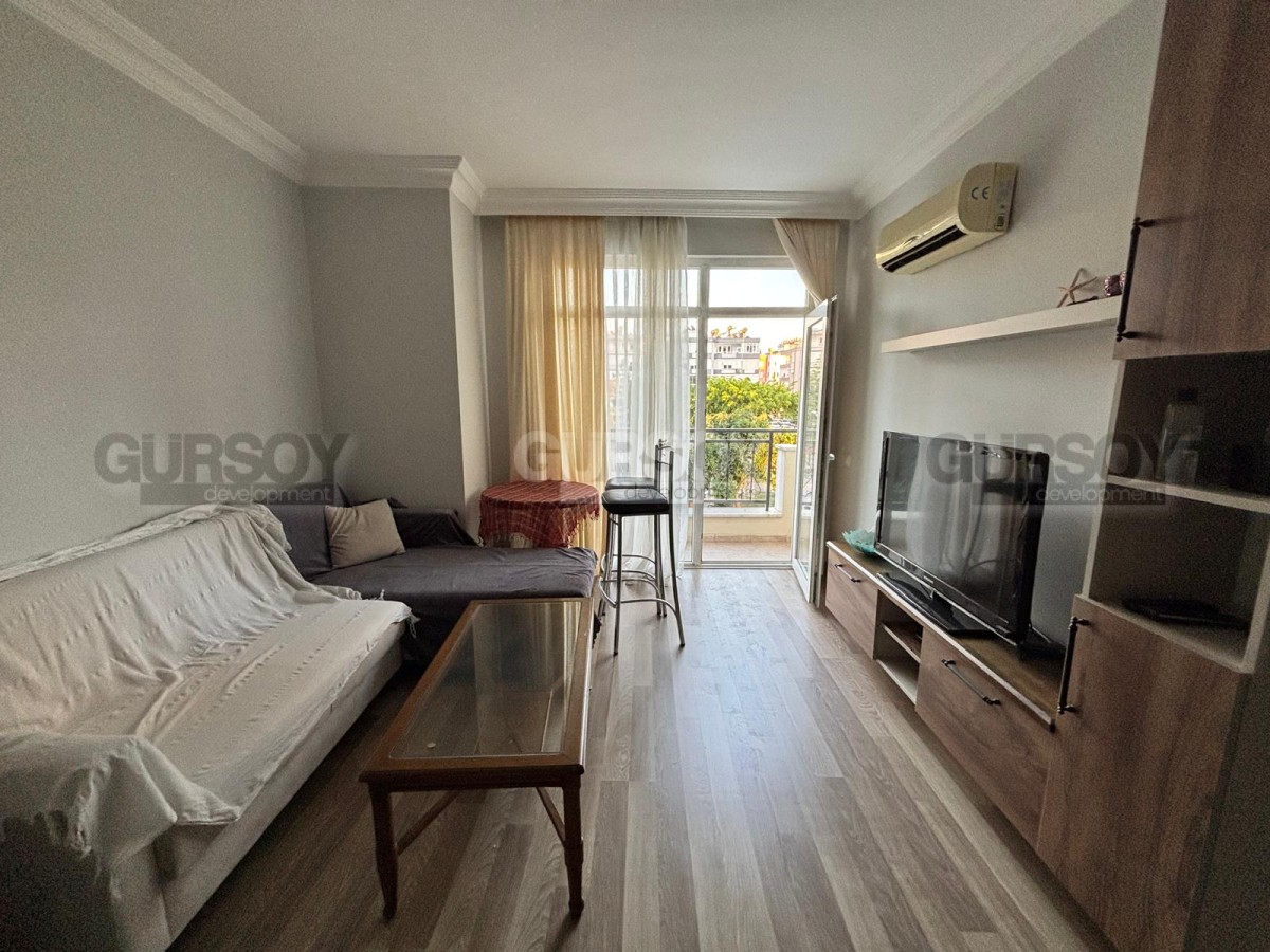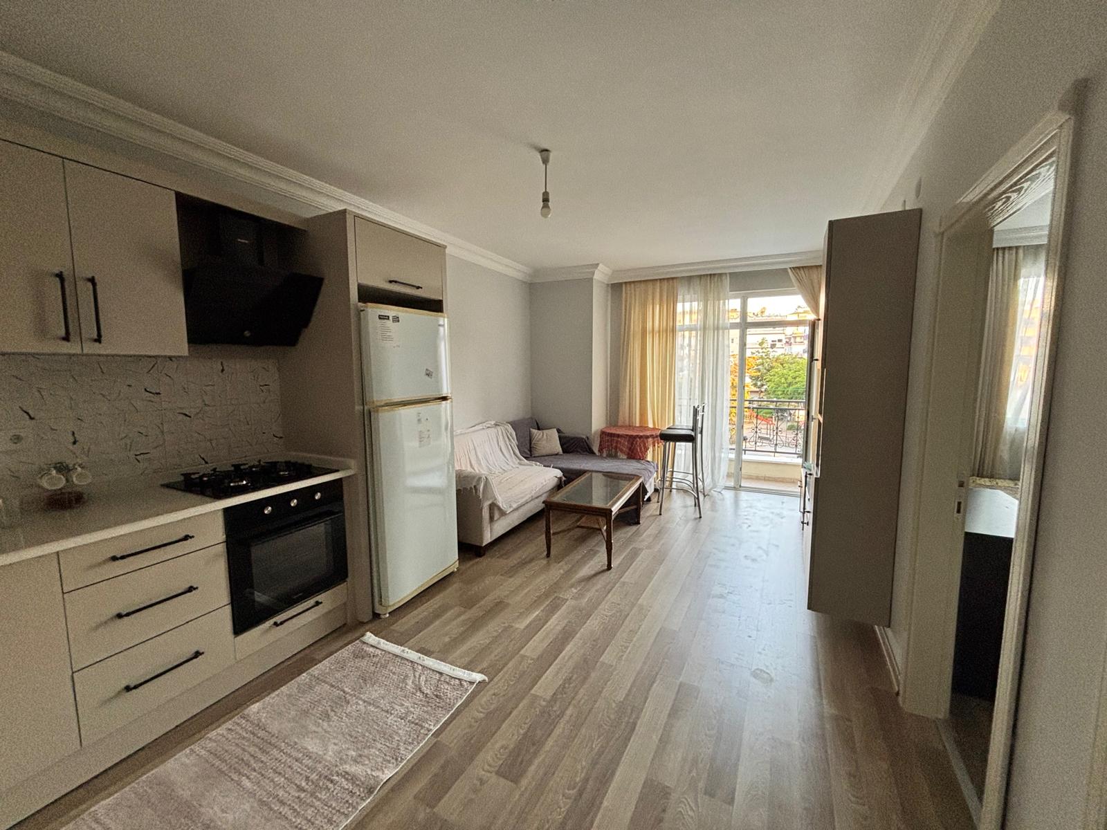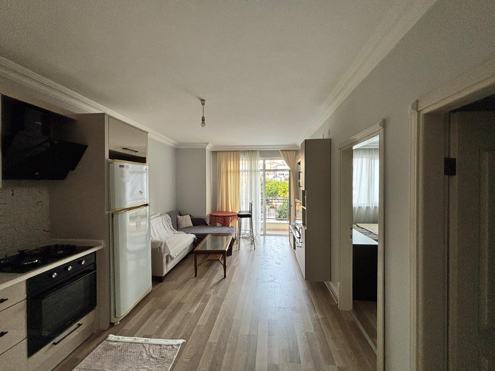 Предлагается к продаже квартира 1+1 общей площадью 55 м², расположенная на 3 этаже в районе Клеопатра. Дом 2010 года постройки, семиэтажный жилой комплекс. Квартира продаётся с мебелью, планировка включает гостиную с кухней американского типа, спальню, санузел и балкон.