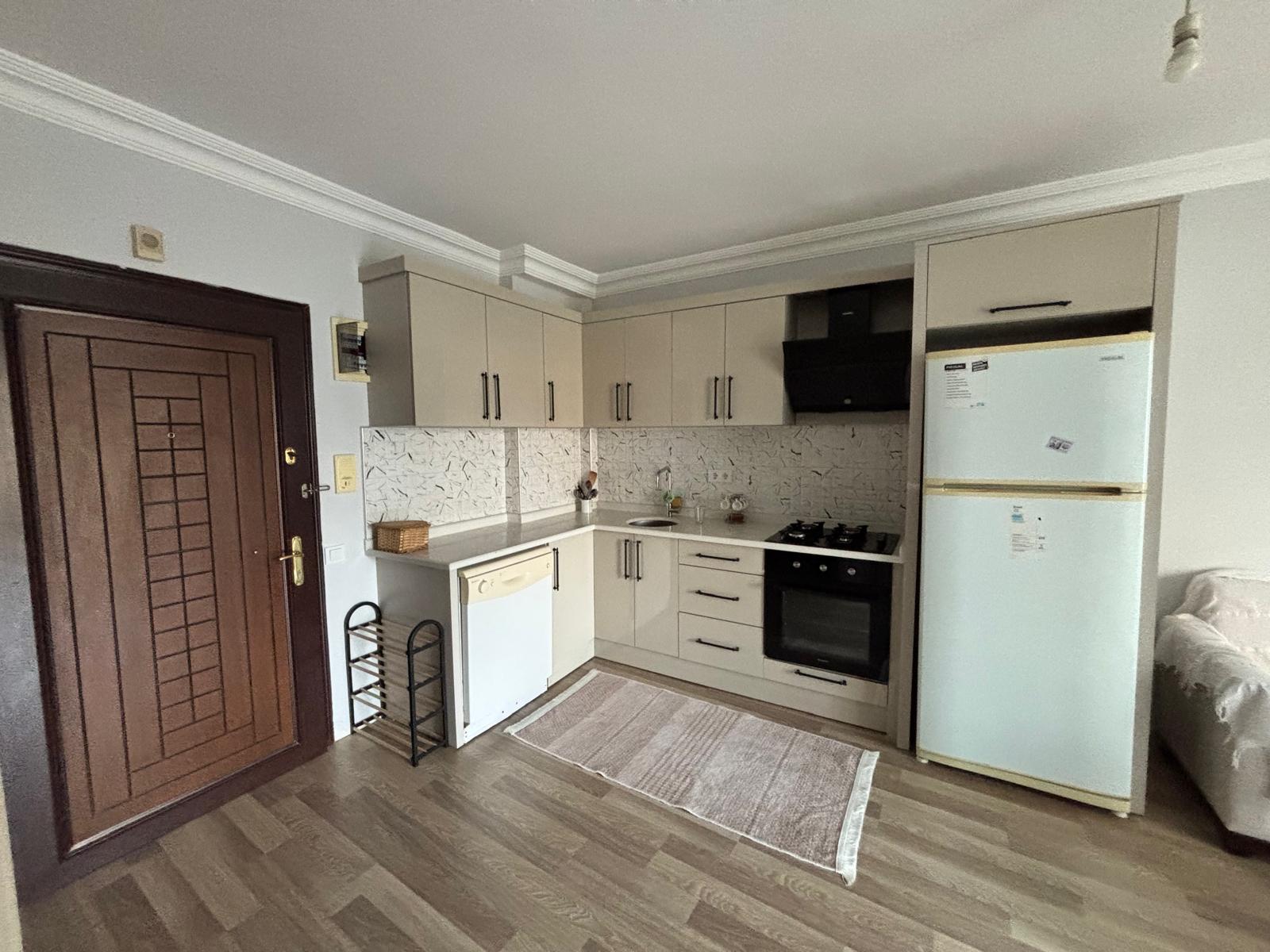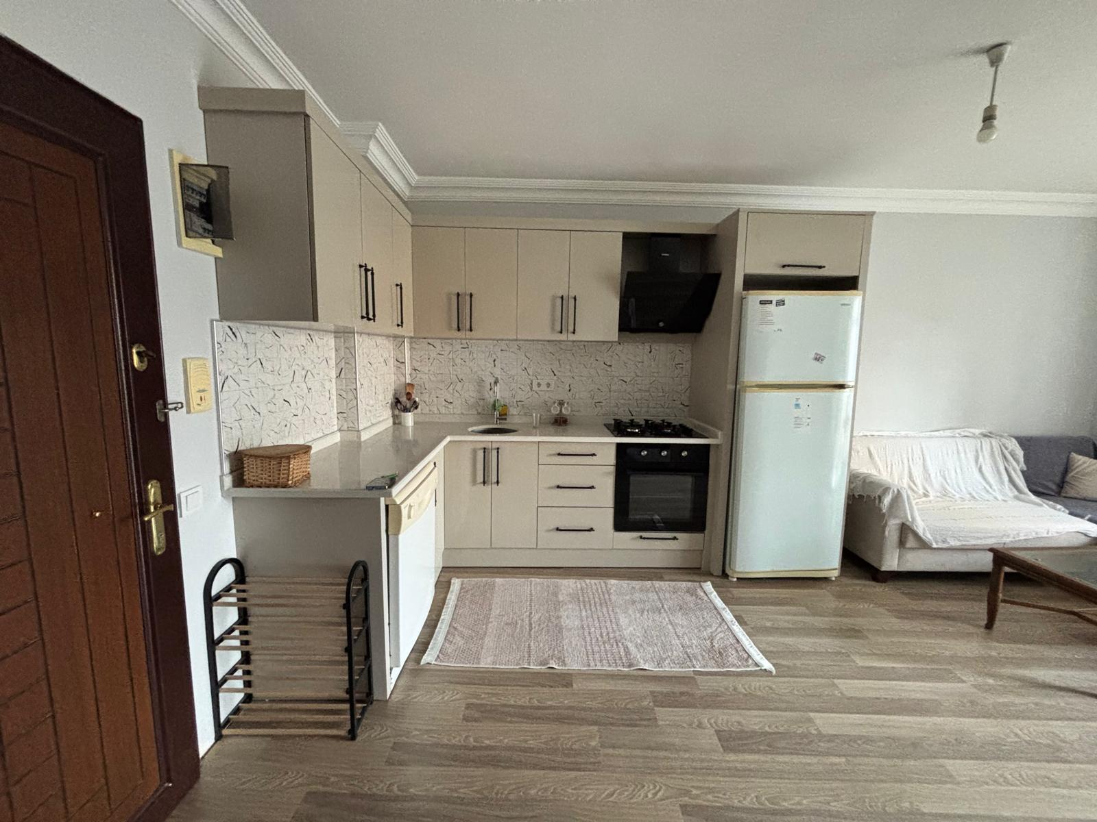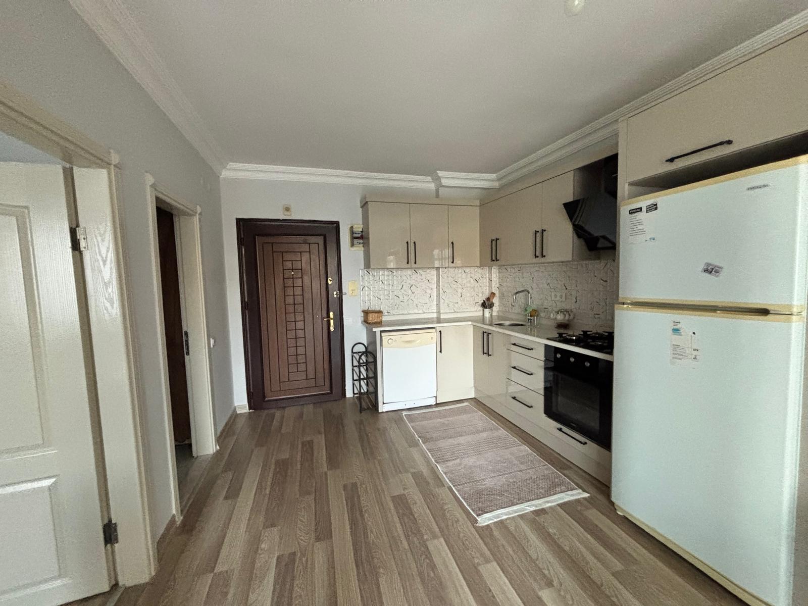 Предлагается к продаже квартира 1+1 общей площадью 55 м², расположенная на 3 этаже в районе Клеопатра. Дом 2010 года постройки, семиэтажный жилой комплекс. Квартира продаётся с мебелью, планировка включает гостиную с кухней американского типа, спальню, санузел и балкон.
