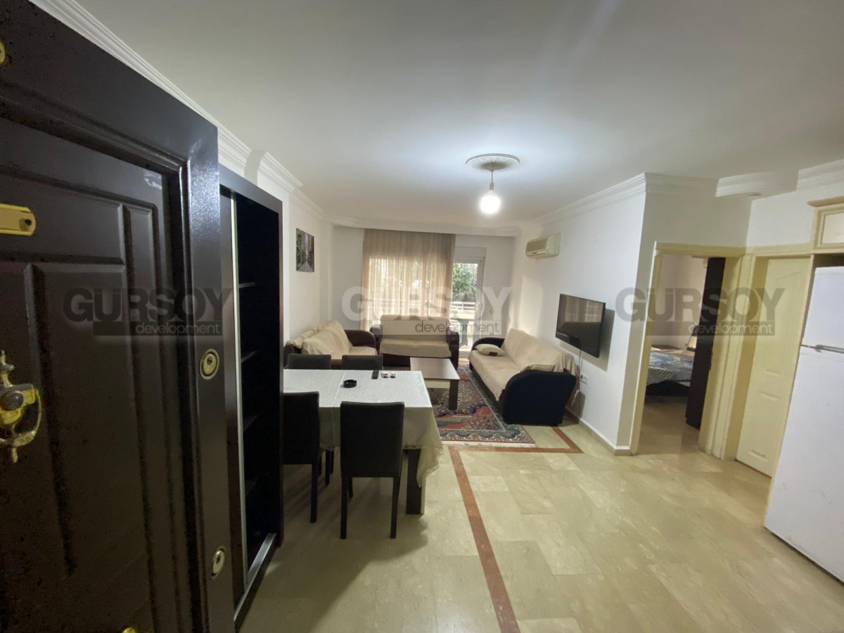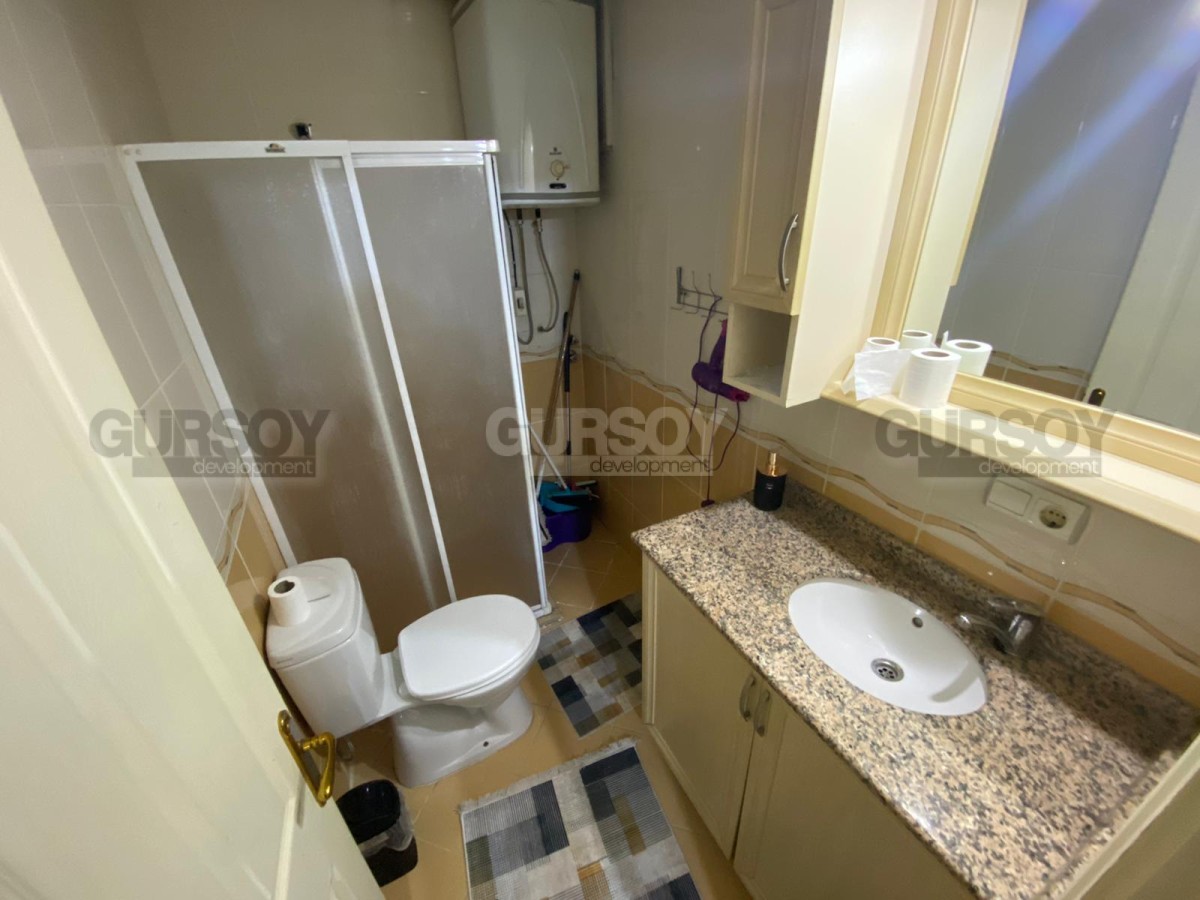 На продажу выставлена комфортабельная, готовая к проживанию квартира с мебелью и бытовой техникой, расположенная на 1-м этаже в небольшой резиденции, построенной в 2010 году, в нескольких минутах ходьбы от центра района Оба. Просторная для планировки 1+1, общей площадью 70 м2, квартира состоит из совмещенной с кухней гостиной, спальни, оснащенного душевой кабиной санузла, и открытого балкона, с видом на тихую улочку. Дизайн комнат - простой и универсальный, с традиционными светлыми оттенками в интерьере. Гостиная укомплектована мягкими диванами, журнальным столиком и обеденным столом; спальня - большой кроватью, тумбами и гардеробным шкафом; а кухонный уголок оснащен холодильником, стиральной и посудомоечной машинами и газовой плитой.