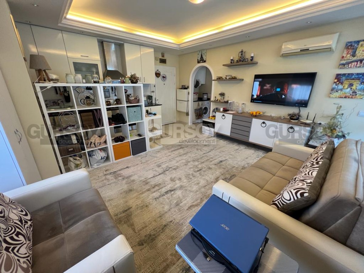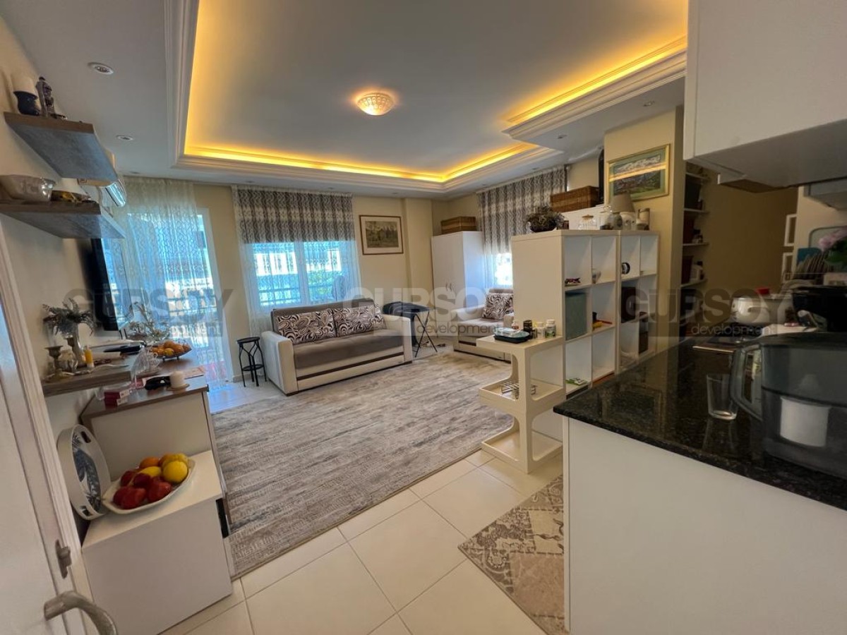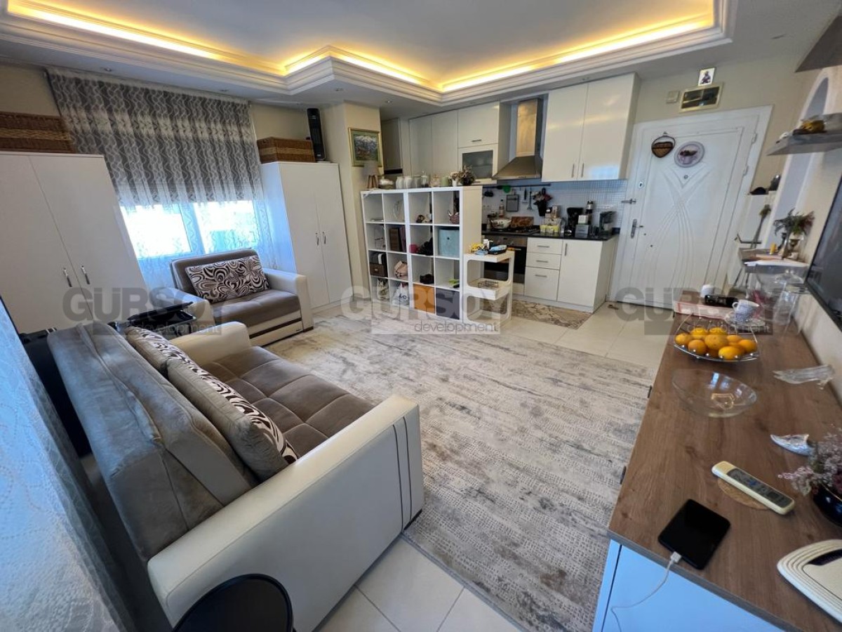 Компания Gürsoy Development представляет вашему вниманию меблированную квартиру 1+1 в уютном жилом комплексе в районе Оба. Площадь квартиры 45 м2, а планировка 1+1 подразумевает наличие гостиной, совмещённой с кухней, спальни, ванной комнаты и застеклённого балкона. Квартира продаётся в полной меблировке, с установленной бытовой техникой, кондиционерами и LED подсветкой. Ванная комната оборудована душевой кабиной и сантехникой, есть стиральная машина. Квартира расположена на 3-м этаже 5-этажного жилого комплекса 2010 года постройки. С балкона открывается красивый вид на Таврские горы и на улицу, поэтому наслаждаться неспешным ритмом турецкой жизни вы сможете даже не выходя из своей квартиры. Квартира выходит на северо-западную сторону.