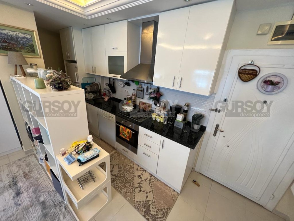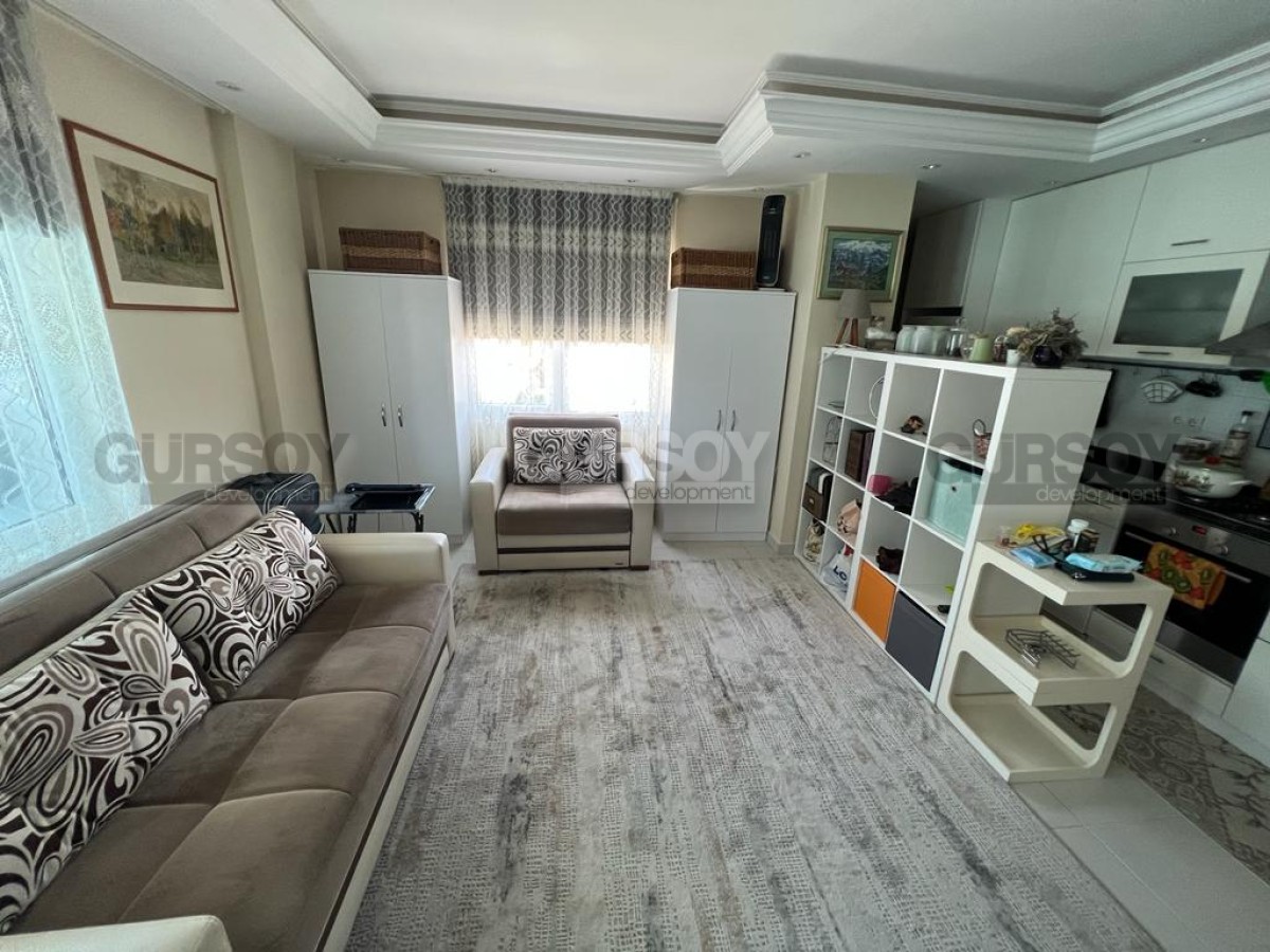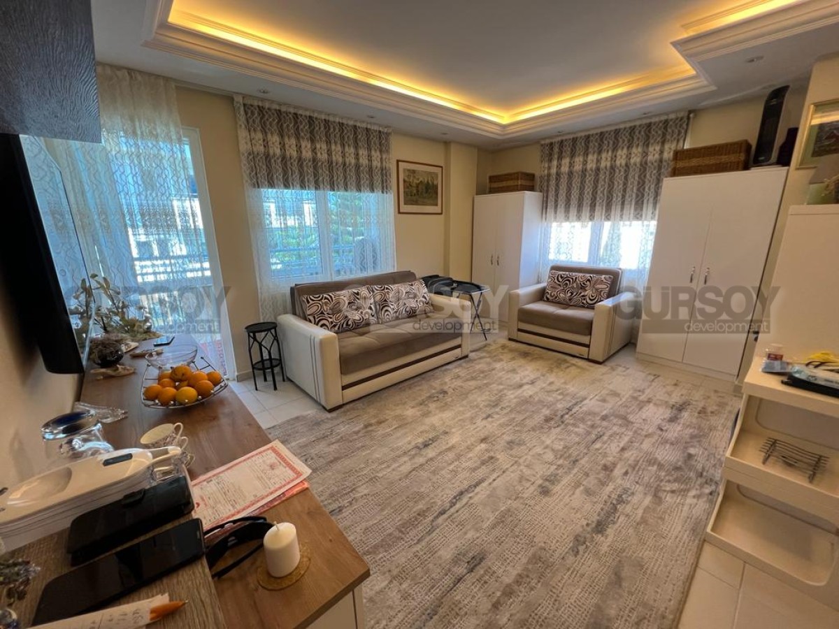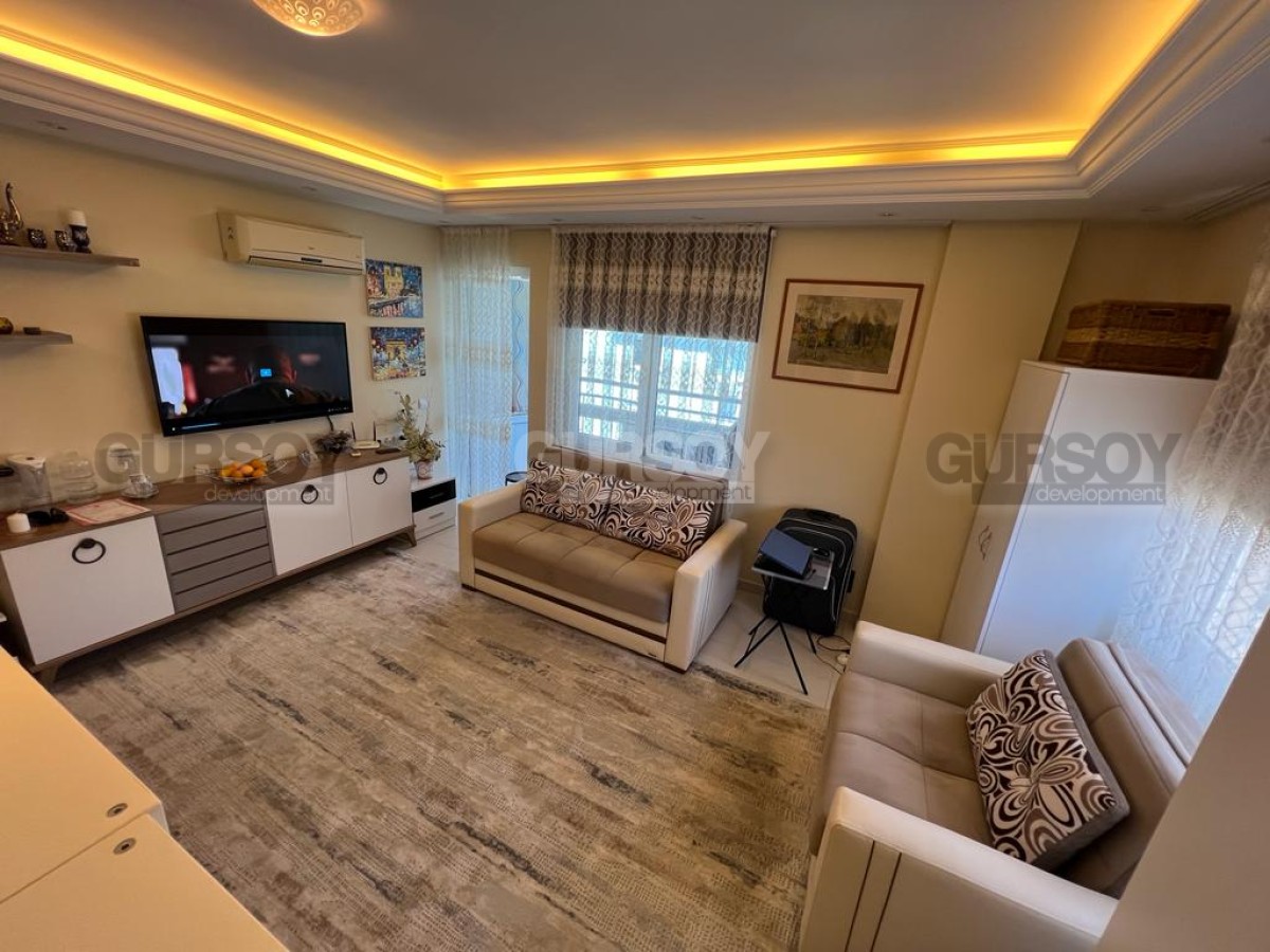 Компания Gürsoy Development представляет вашему вниманию меблированную квартиру 1+1 в уютном жилом комплексе в районе Оба. Площадь квартиры 45 м2, а планировка 1+1 подразумевает наличие гостиной, совмещённой с кухней, спальни, ванной комнаты и застеклённого балкона. Квартира продаётся в полной меблировке, с установленной бытовой техникой, кондиционерами и LED подсветкой. Ванная комната оборудована душевой кабиной и сантехникой, есть стиральная машина. Квартира расположена на 3-м этаже 5-этажного жилого комплекса 2010 года постройки. С балкона открывается красивый вид на Таврские горы и на улицу, поэтому наслаждаться неспешным ритмом турецкой жизни вы сможете даже не выходя из своей квартиры. Квартира выходит на северо-западную сторону.