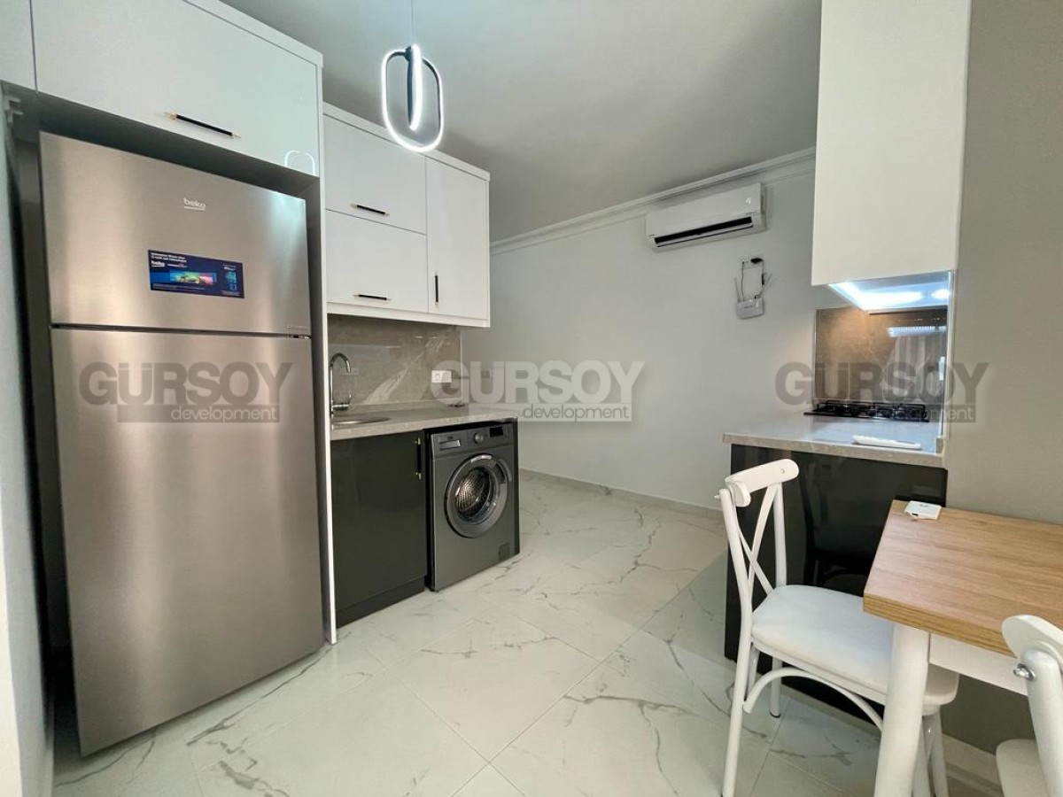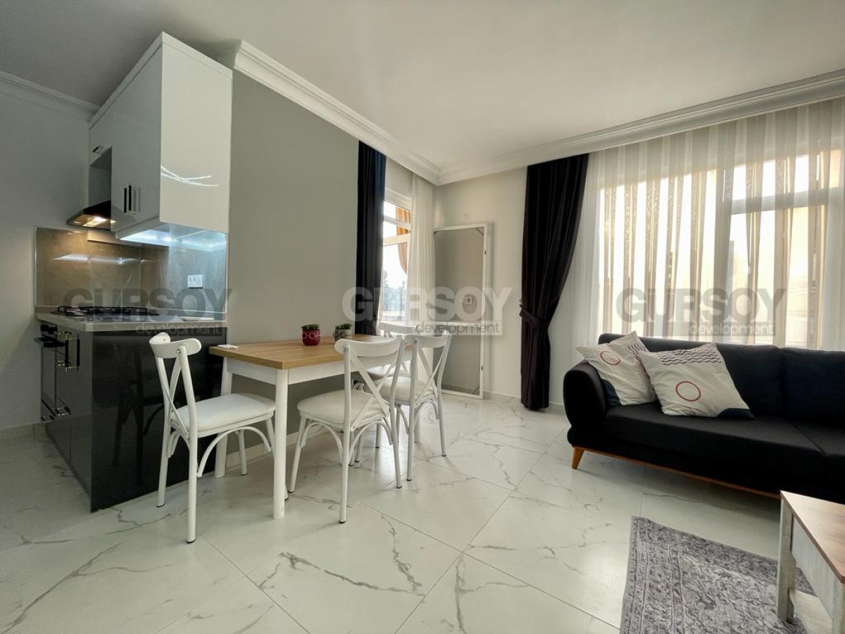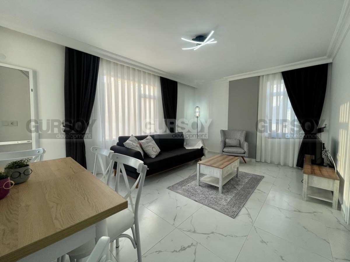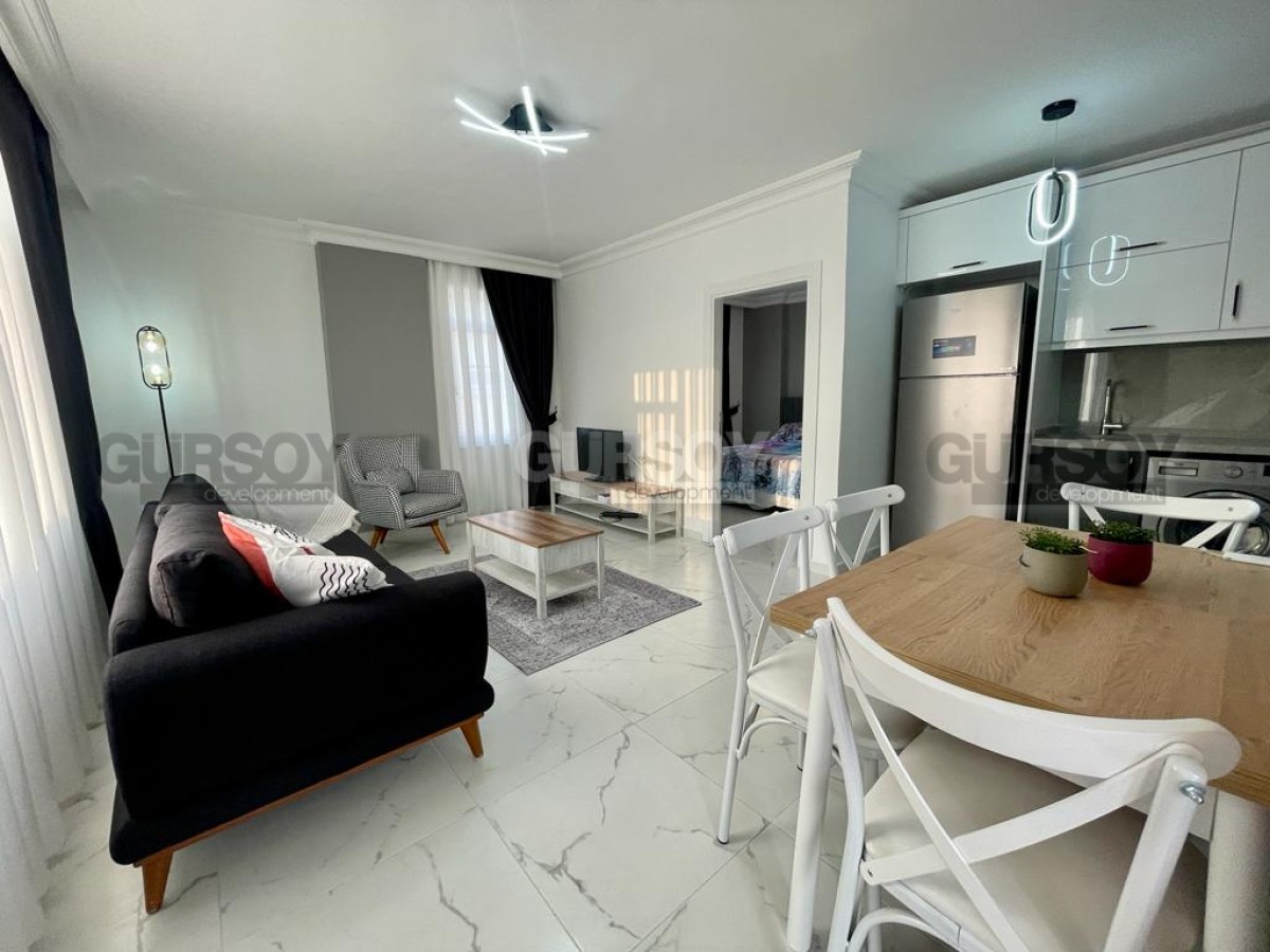 Компания Gürsoy Development представляет вашему вниманию квартиру 1+1 со свежим ремонтом и мебелью в 400 м от моря в районе Оба. Площадь квартиры - 55 м2, а планировка 1+1 подразумевает наличие гостиной, совмещённой с кухней, спальни, ванной комнаты и балкона. Квартира продаётся в полной меблировке, с установленной бытовой техникой, кондиционерами. Ванная комната оборудована душевой кабиной и современной сантехникой, есть проточный водонагреватель. Квартира расположена на 3-м этаже 5-этажного жилого комплекса 2007 года постройки. С балкона открывается чудесный вид на море и вершину Крепости. Квартира выходит на юго-западную сторону.