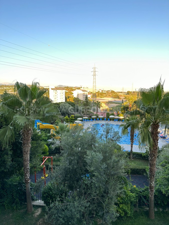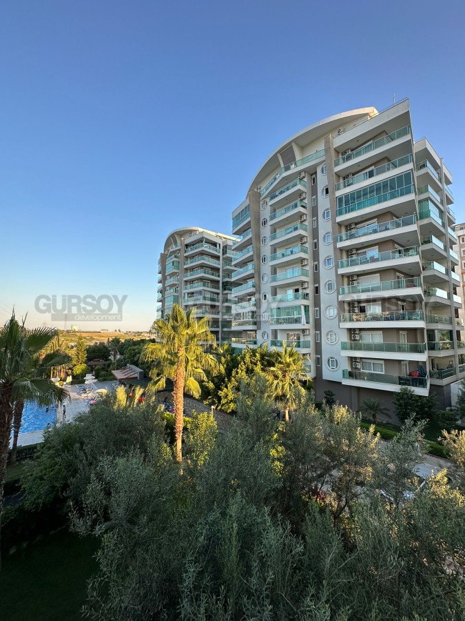 Площадь квартиры - 58 кв.м, а планировка 1+1 подразумевает наличие гостиной, совмещённой с кухней, спальни, ванной комнаты и балкона. Квартира продаётся в полной меблировке, с установленной бытовой техникой, кондиционерами и LED-освещением. Ванная комната оборудована душевой кабиной и сантехникой. Квартира расположена на 2-м этаже 10-этажного элитного жилого комплекса. С балкона открывается вид на бассейн и пёстрые пальмы.