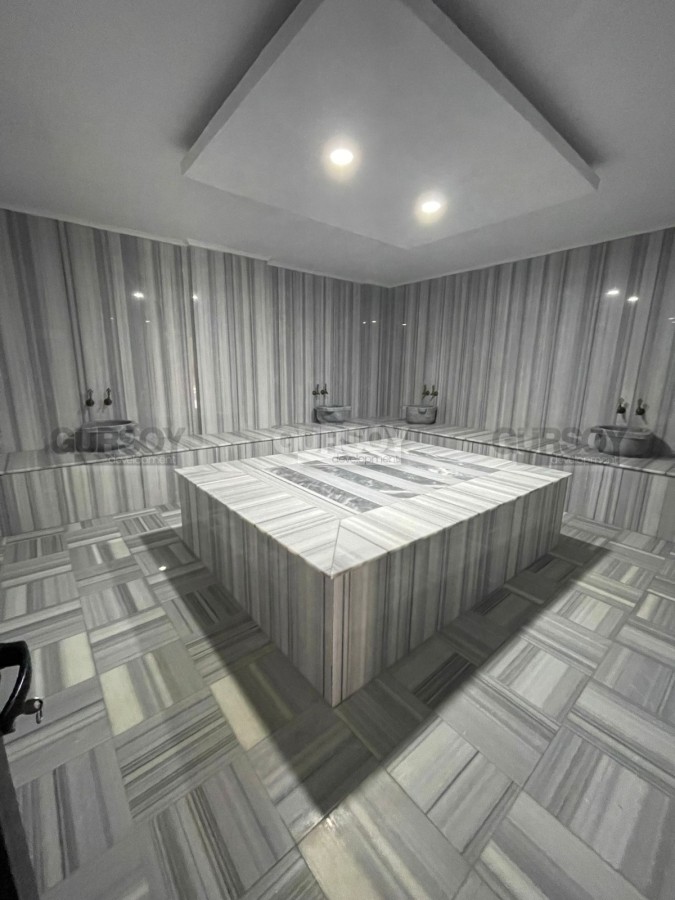 Комплекс предлагает инфраструктуру для комфортной жизни: открытый и крытый бассейны, хамам, сауна, паровая комната, фитнес-зал, лифт, генератор, благоустроенный сад, камелия и парковка. Территория ухоженная и подходит для круглогодичного проживания.