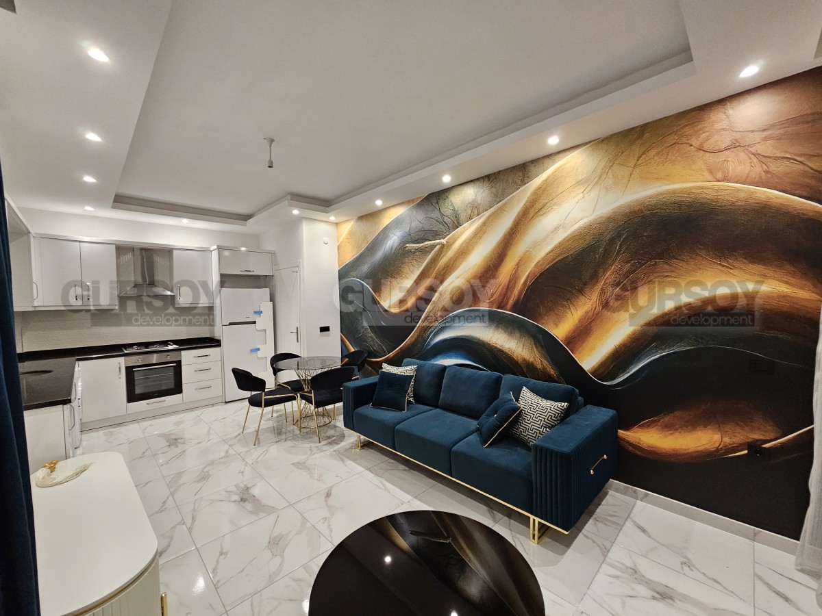 Продаётся квартира планировки 1+1, расположенная на 1 высоком этаже в современном доме. Общая площадь — 65 м². Квартира полностью укомплектована новой техникой и мебелью. В планировку входят просторная гостиная с кухней открытого типа, спальня, санузел и балкон.