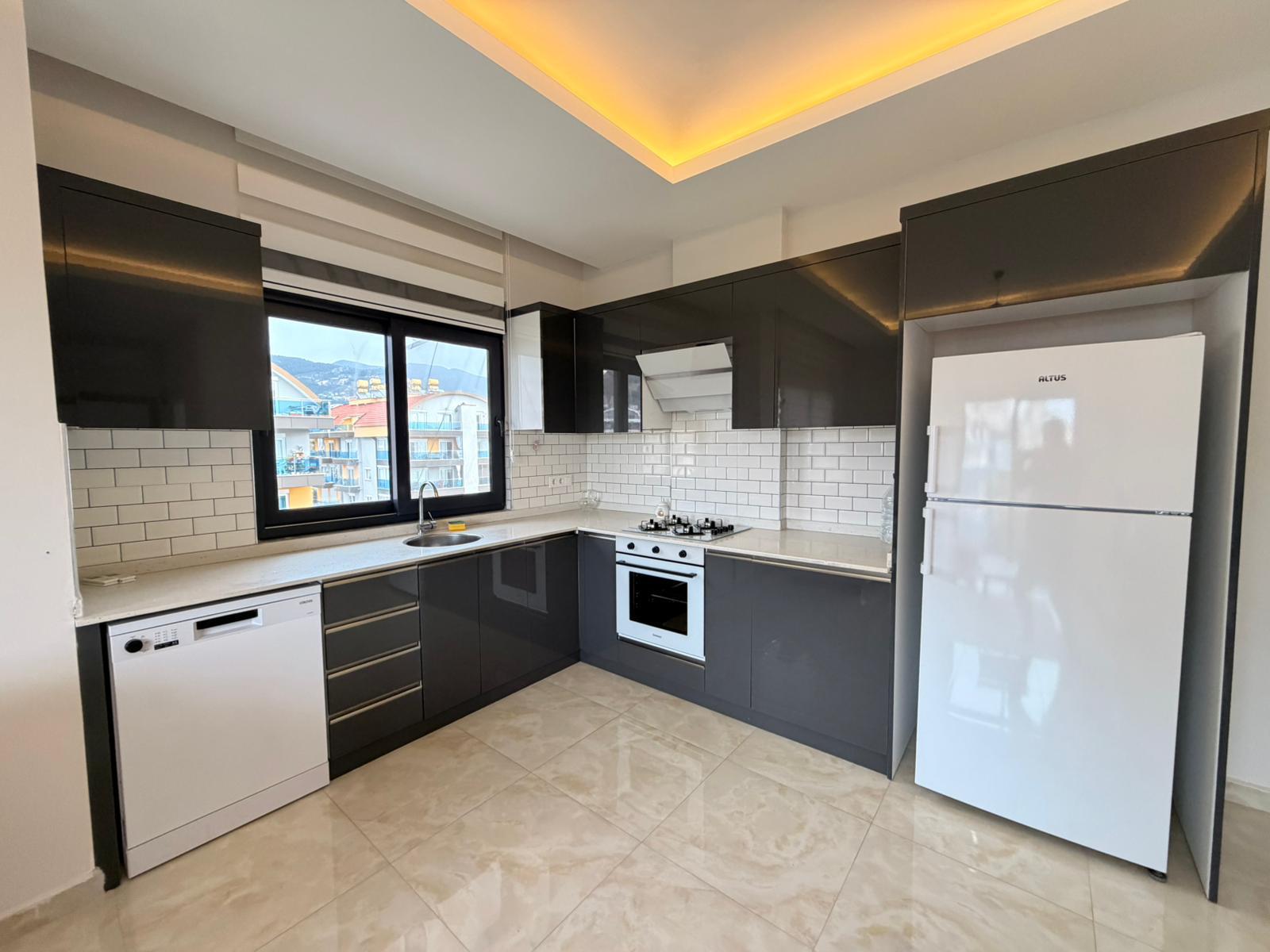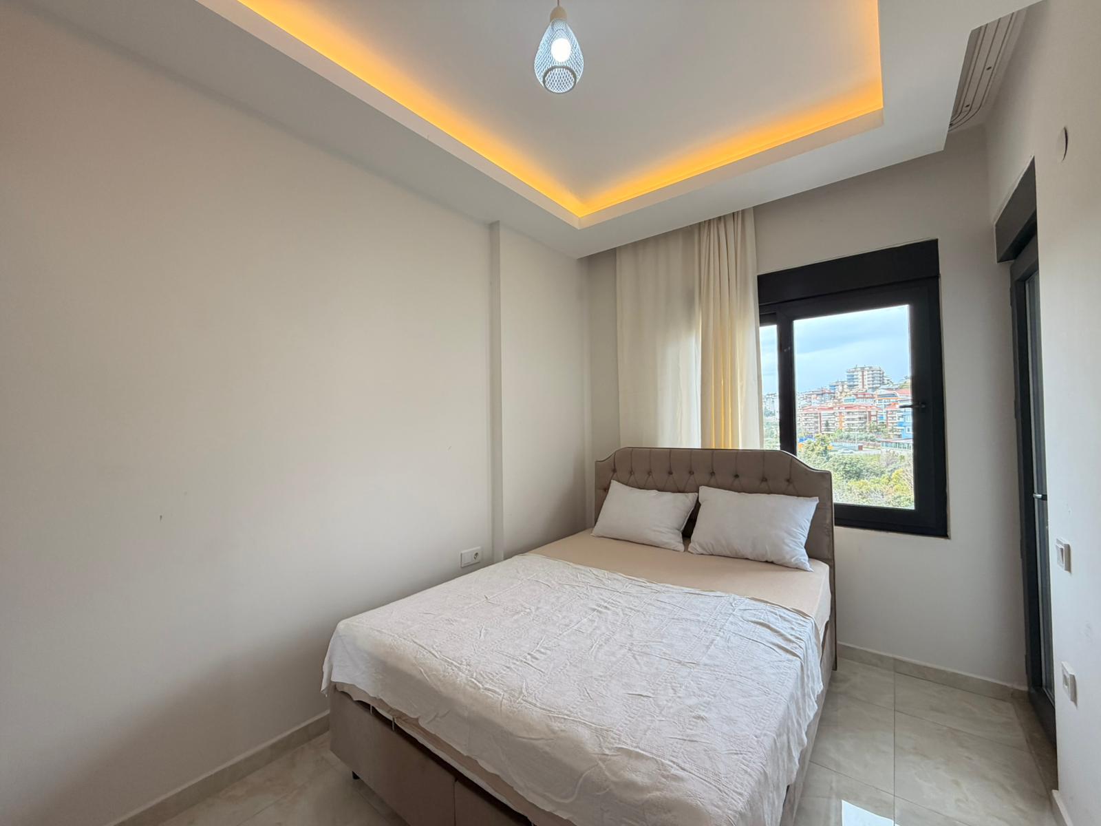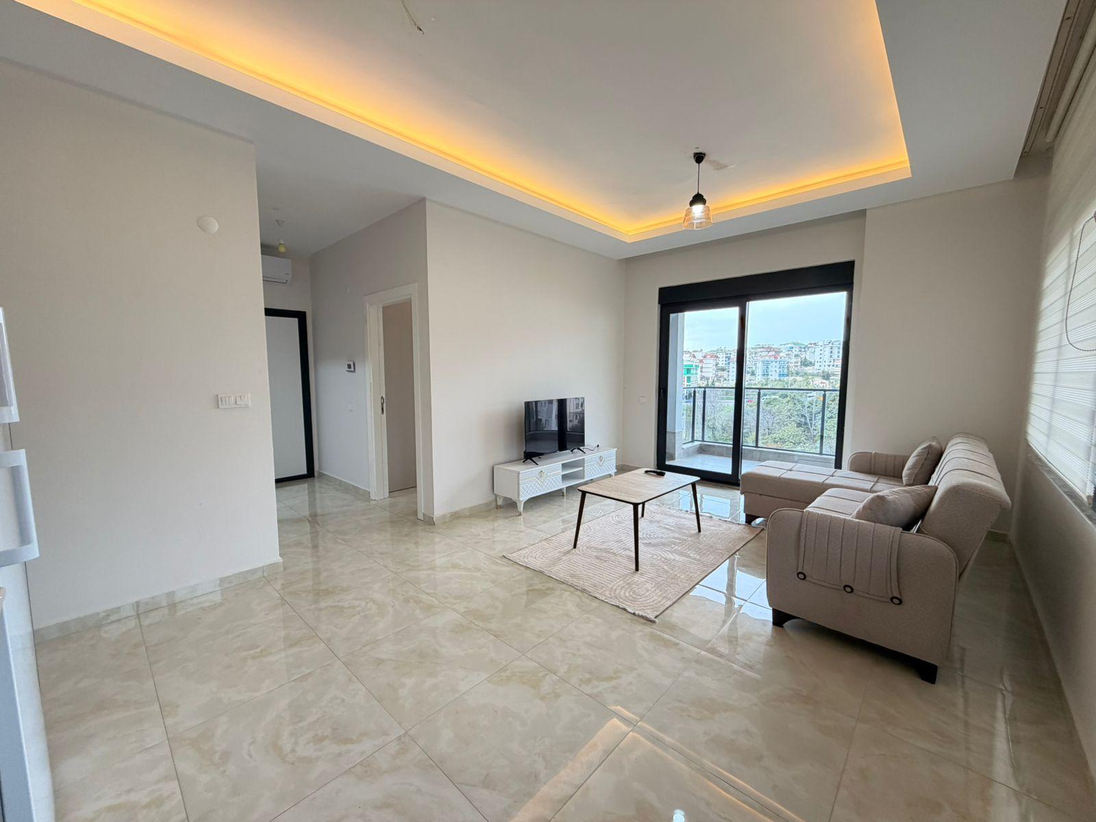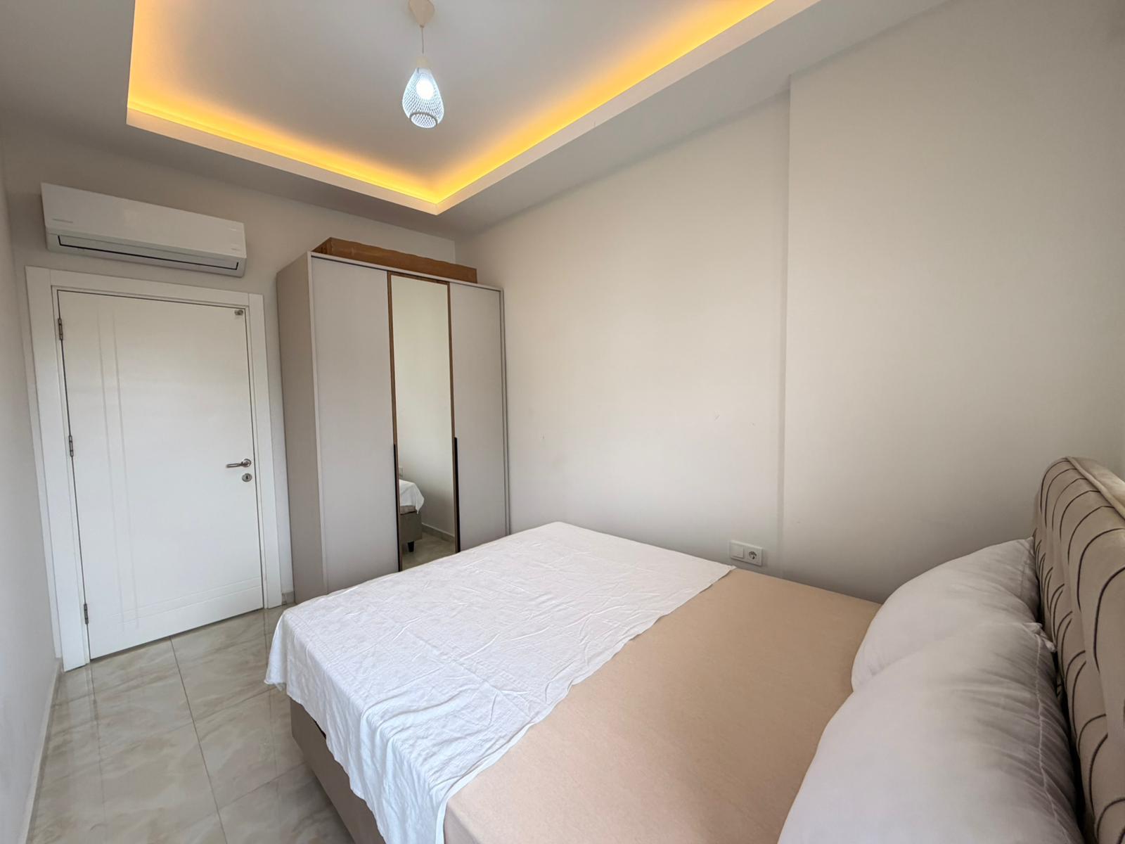 Предлагается к продаже квартира 1+1 общей площадью 60 м², расположенная на 4 этаже в районе Оба. Дом новый, возраст около 1 года, современный пятиэтажный жилой комплекс. Квартира продаётся с мебелью, имеет балкон, планировка включает гостиную с кухней американского типа, спальню и санузел.