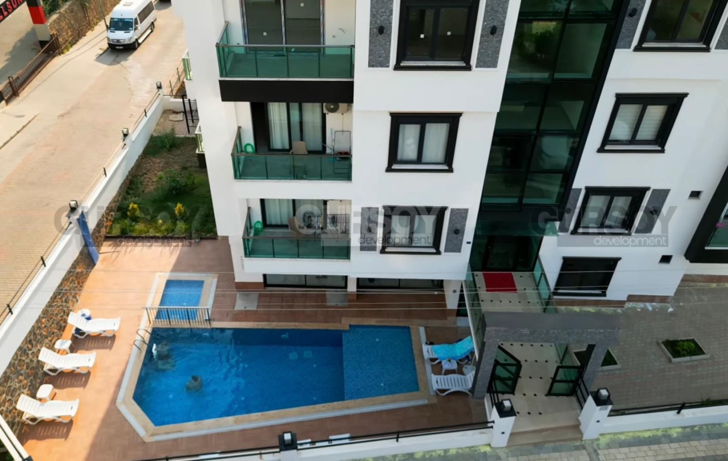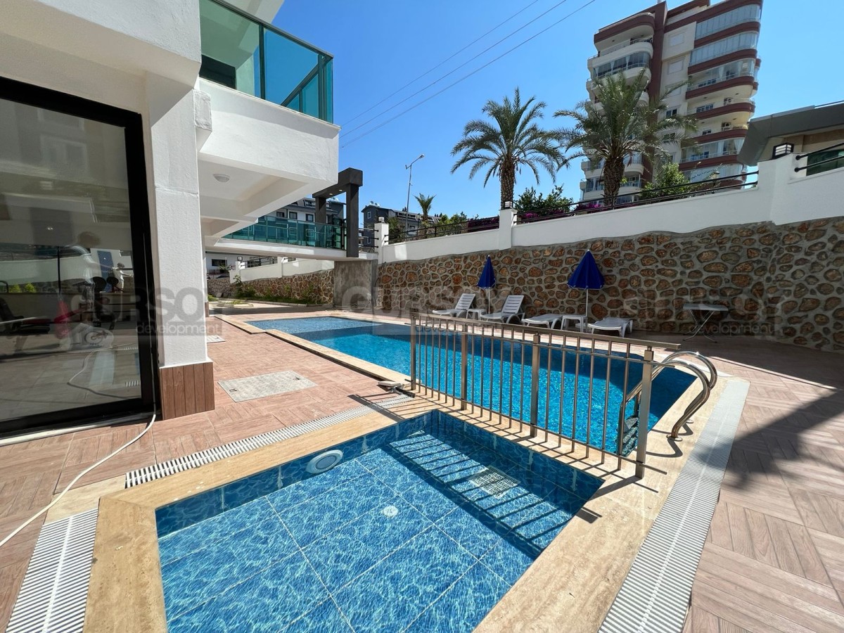 Расстояние до моря составляет около 700 метров. Район Тосмур ценится за удобное расположение, близость к центру Аланьи и развитую городскую инфраструктуру при сохранении спокойной жилой атмосферы.