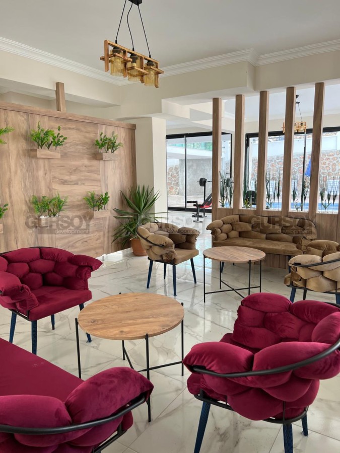 В продаже меблированная квартира планировки 1+1 общей площадью 55 м², расположенная на 4 этаже современного жилого комплекса Manyas Sea Prime в районе Тосмур. Дом построен в 2023 году. Квартира ориентирована на северную сторону, планировка включает гостиную с кухней открытого типа, спальню и ванную комнату.