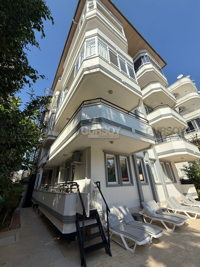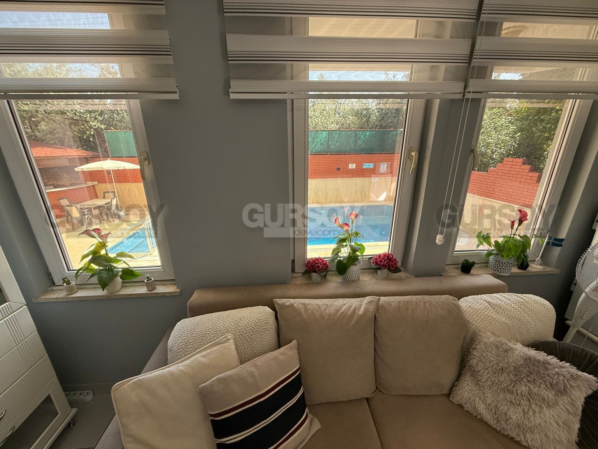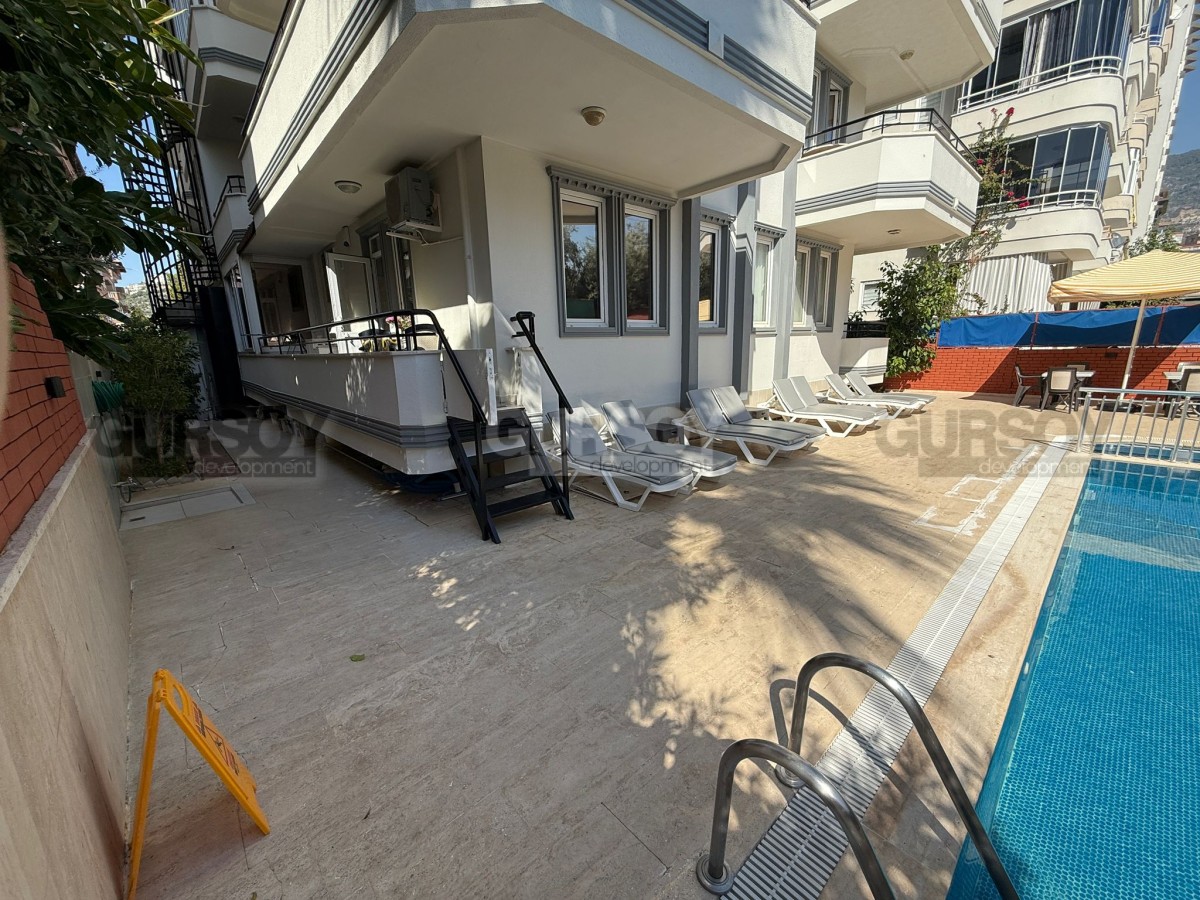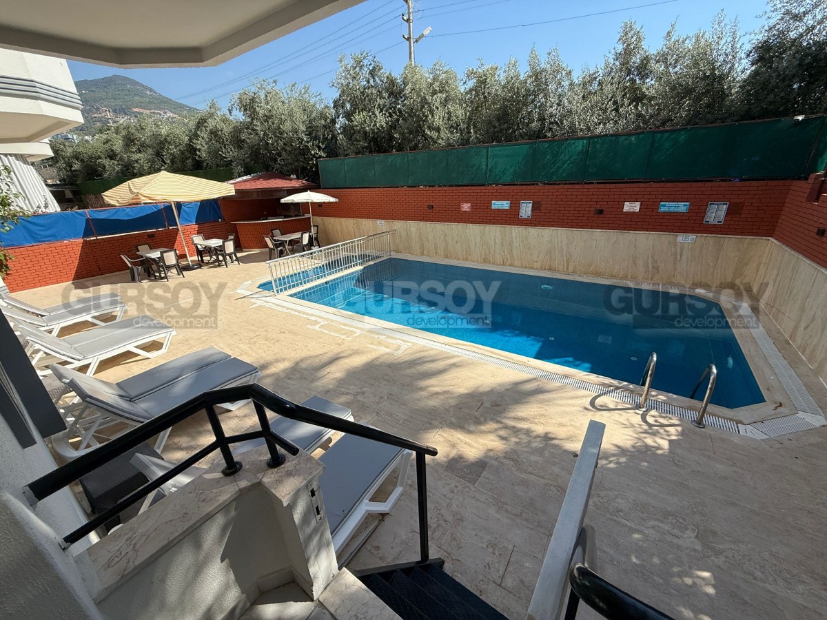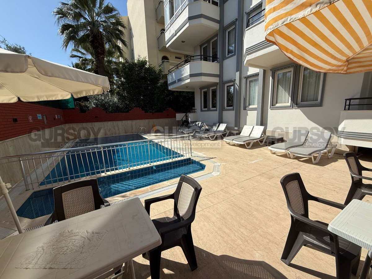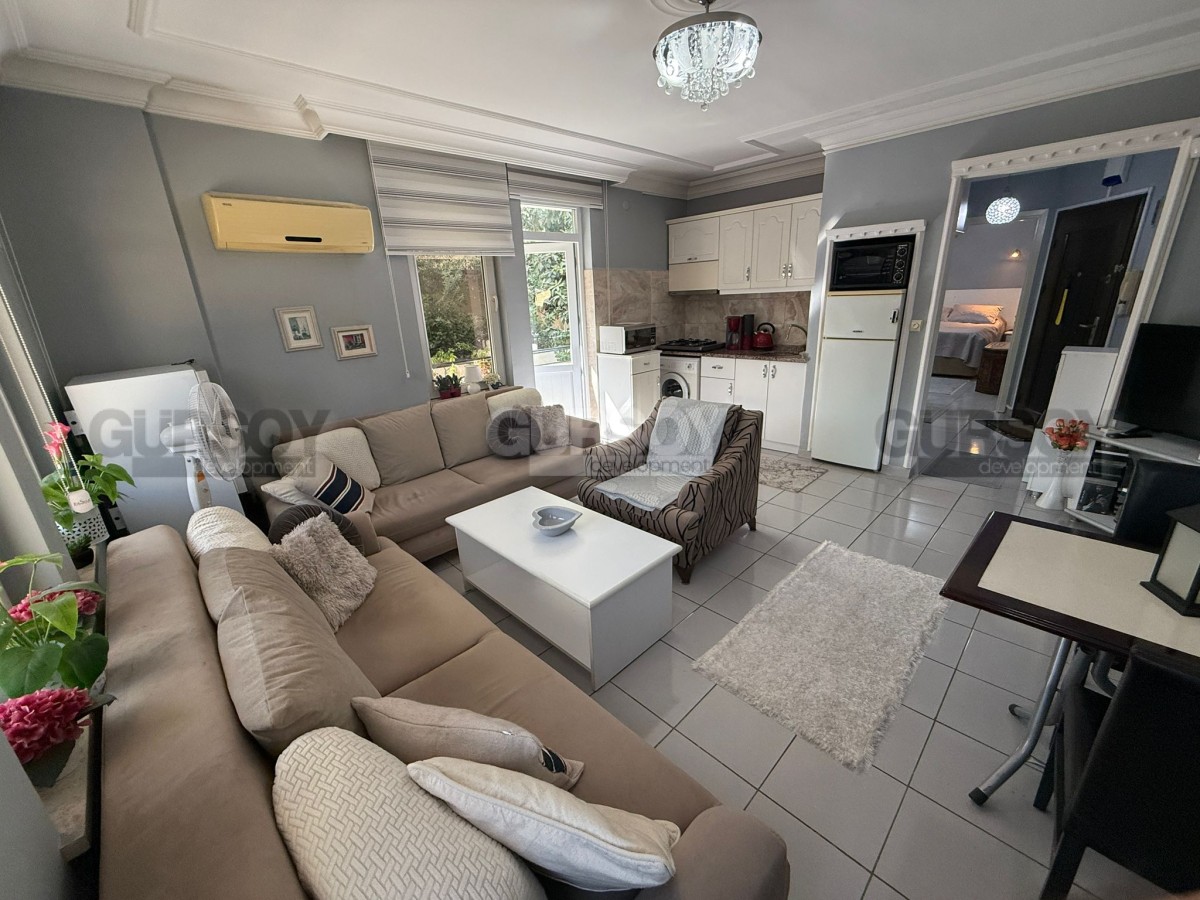 Продаётся меблированная квартира 1+1 общей площадью 65 м². Просторная планировка включает прихожую, гостиную, совмещённую с кухонной зоной, уютную спальню, ванную комнату и балкон с выходом к бассейну.