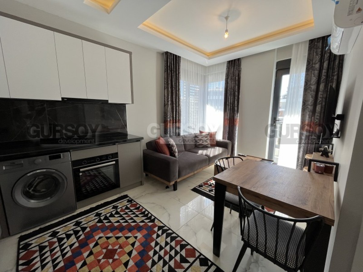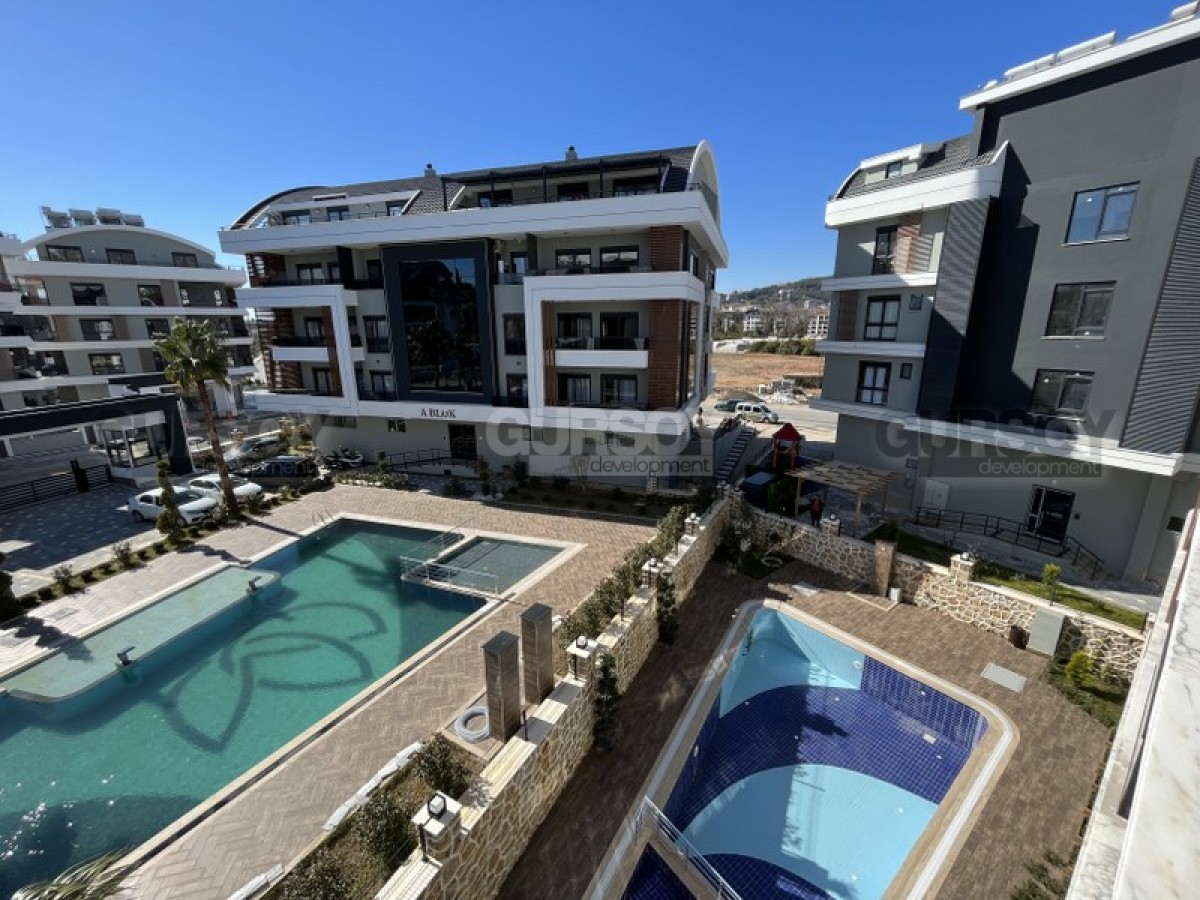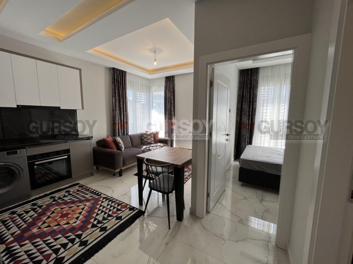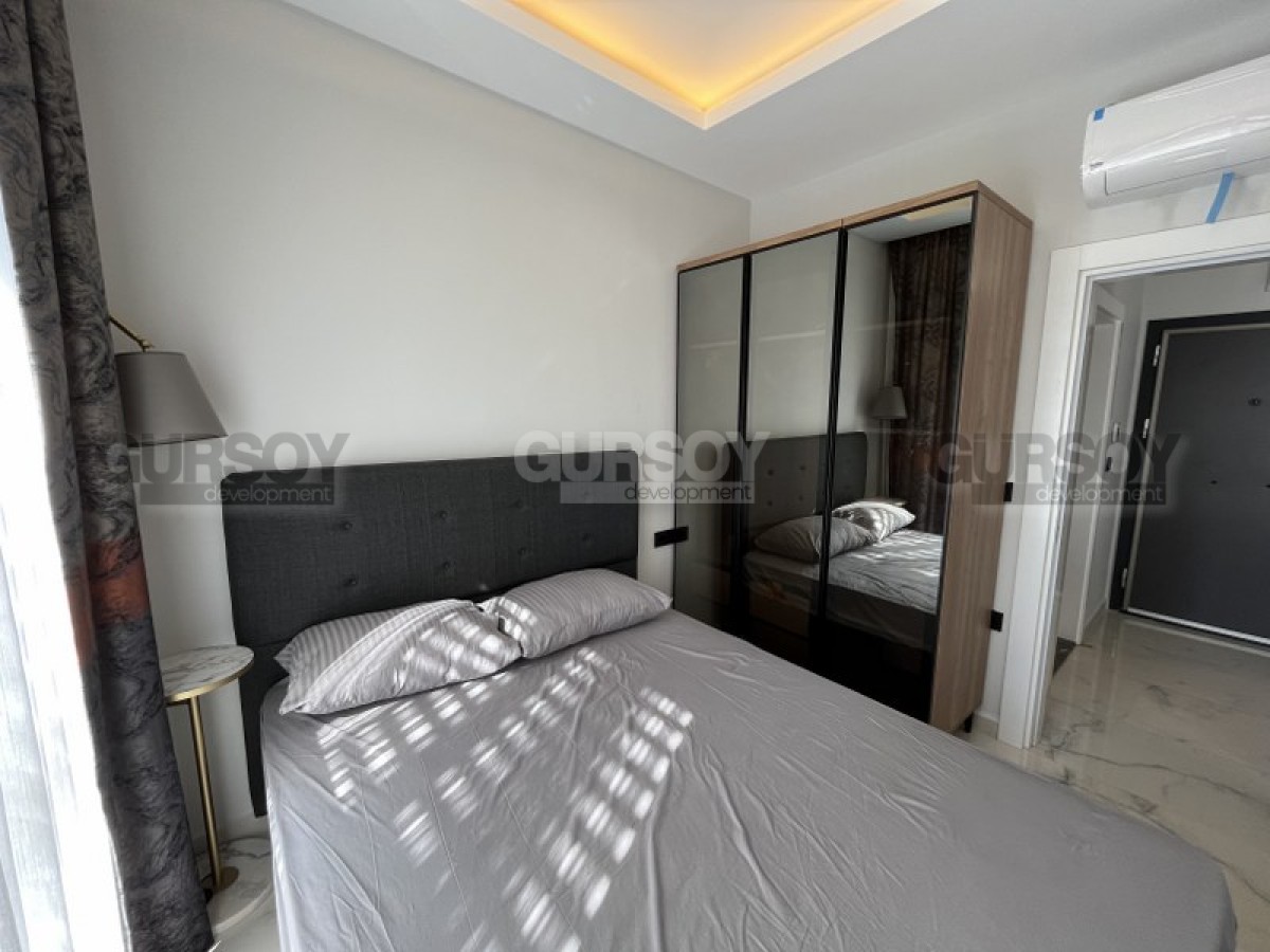 Компания Gürsoy Development представляет вашему вниманию меблированную квартиру 1+1 в уютном современном жилом комплексе в районе Оба. Площадь квартиры - 47 м2, а планировка 1+1 подразумевает наличие гостиной, совмещённой с кухней, спальни, ванной комнаты и балкона. Квартира продаётся с мебелью, бытовой техникой, кондиционерами и LED освещением, как представлено на фотографиях. Ванная комната оборудована душевой кабиной и сантехникой, есть проточный водонагреватель. Квартира расположена на 3-м этаже 4-этажного жилого комплекса 2022 года постройки. С балкона открывается чудесный вид на бассейн и территорию комплекса. Квартира выходит на юго-восточную сторону.