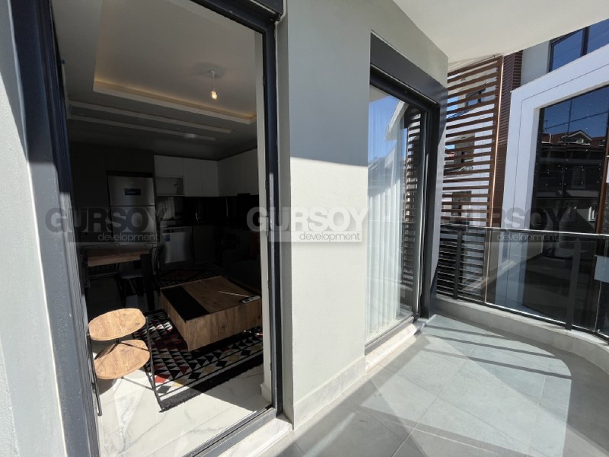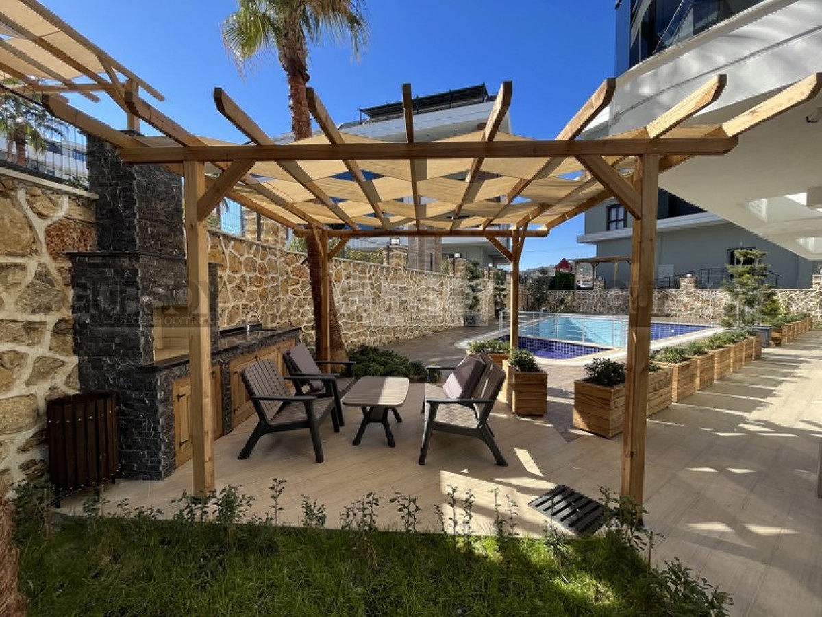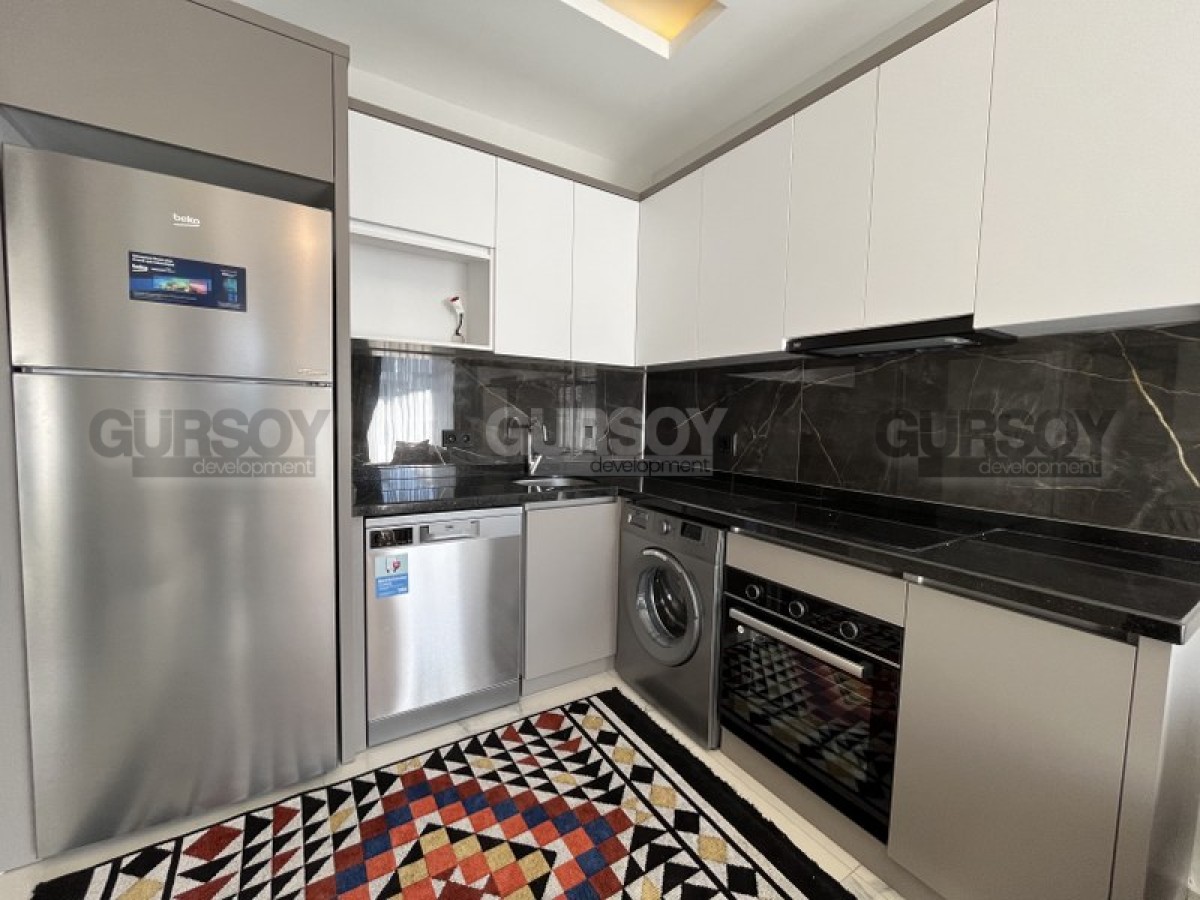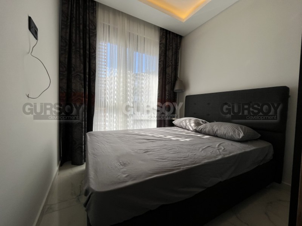 Компания Gürsoy Development представляет вашему вниманию меблированную квартиру 1+1 в уютном современном жилом комплексе в районе Оба. Площадь квартиры - 47 м2, а планировка 1+1 подразумевает наличие гостиной, совмещённой с кухней, спальни, ванной комнаты и балкона. Квартира продаётся с мебелью, бытовой техникой, кондиционерами и LED освещением, как представлено на фотографиях. Ванная комната оборудована душевой кабиной и сантехникой, есть проточный водонагреватель. Квартира расположена на 3-м этаже 4-этажного жилого комплекса 2022 года постройки. С балкона открывается чудесный вид на бассейн и территорию комплекса. Квартира выходит на юго-восточную сторону.
