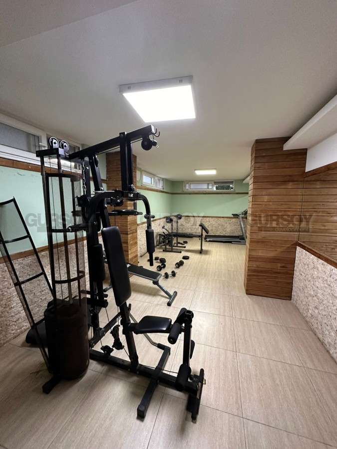 В комплексе есть открытый плавательный бассейн с детской секцией, сауна, фитнес зал, сад и смотритель.