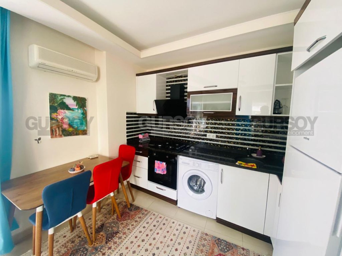 На продажу выставлена полностью меблированная квартира 1+1 всего в 300 метрах от моря в Махмутларе. Такая квартира отлично подойдёт для пассивного дохода от сдачи в аренду, незабываемого отдыха и сезонного проживания. В Махмутларе есть все необходимое для комфортной жизни. Это самый развитый и один из самых популярных районов Алании. Здесь есть множество сетевых супермаркетов и магазинов, торговый центр, парки и детские площадки, кафе и рестораны, школы и детские сады, клиника, аптеки, банки и банкоматы, почта и многое другое. Стоит отметить и набережную в Махмутларе - она отлично оборудована: дорожки для велосипедов и пробежек, беседки для отдыха, детские и спортивные площадки, парк для собак и прочее.