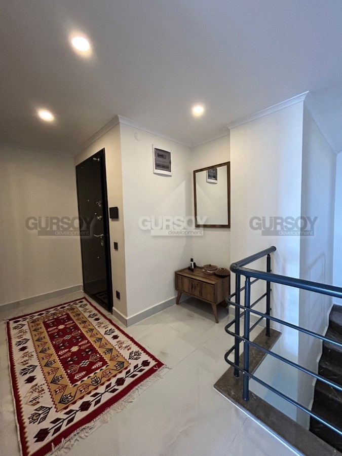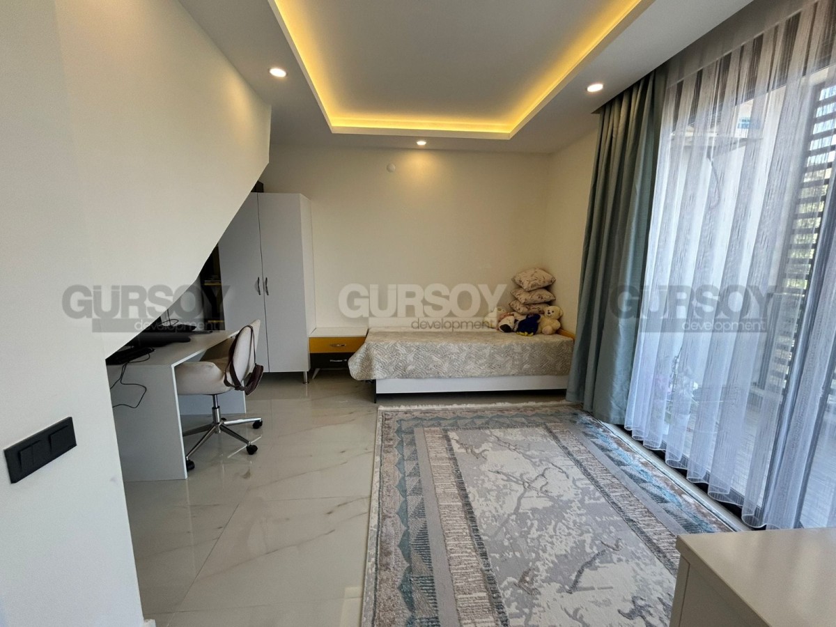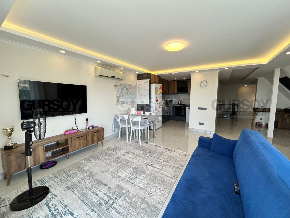 Предлагается к продаже просторная меблированная квартира планировки 2+1, расположенная на 4–5 этажах уютного жилого комплекса. Общая площадь квартиры составляет 125 м² (нетто). Апартаменты включают в себя светлую гостиную, объединённую с кухней открытого типа, две спальные комнаты, два санузла и два балкона. Квартира полностью меблирована и укомплектована всей необходимой бытовой техникой, что позволяет заехать и жить без дополнительных вложений. Из окон открывается великолепный панорамный вид на море, горы и знаменитую Аланийскую крепость, что делает пребывание в квартире особенно приятным.