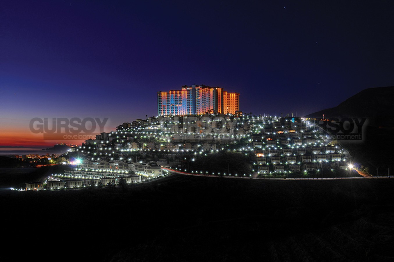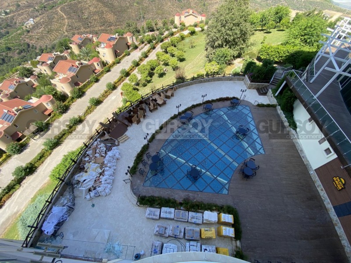 Великолепный масштабный многофункциональный комплекс, включающий апартаменты и виллы класса люкс, расположен в живописной местности на холме у подножия величественных гор Таурус, откуда открываются изумительные панорамные виды на Аланийскую крепость, фруктовые плантации, горные массивы, живописное побережье, береговую линию и бесконечную синеву Средиземного моря. Все это создаёт атмосферу абсолютной свободы и полной безмятежности.