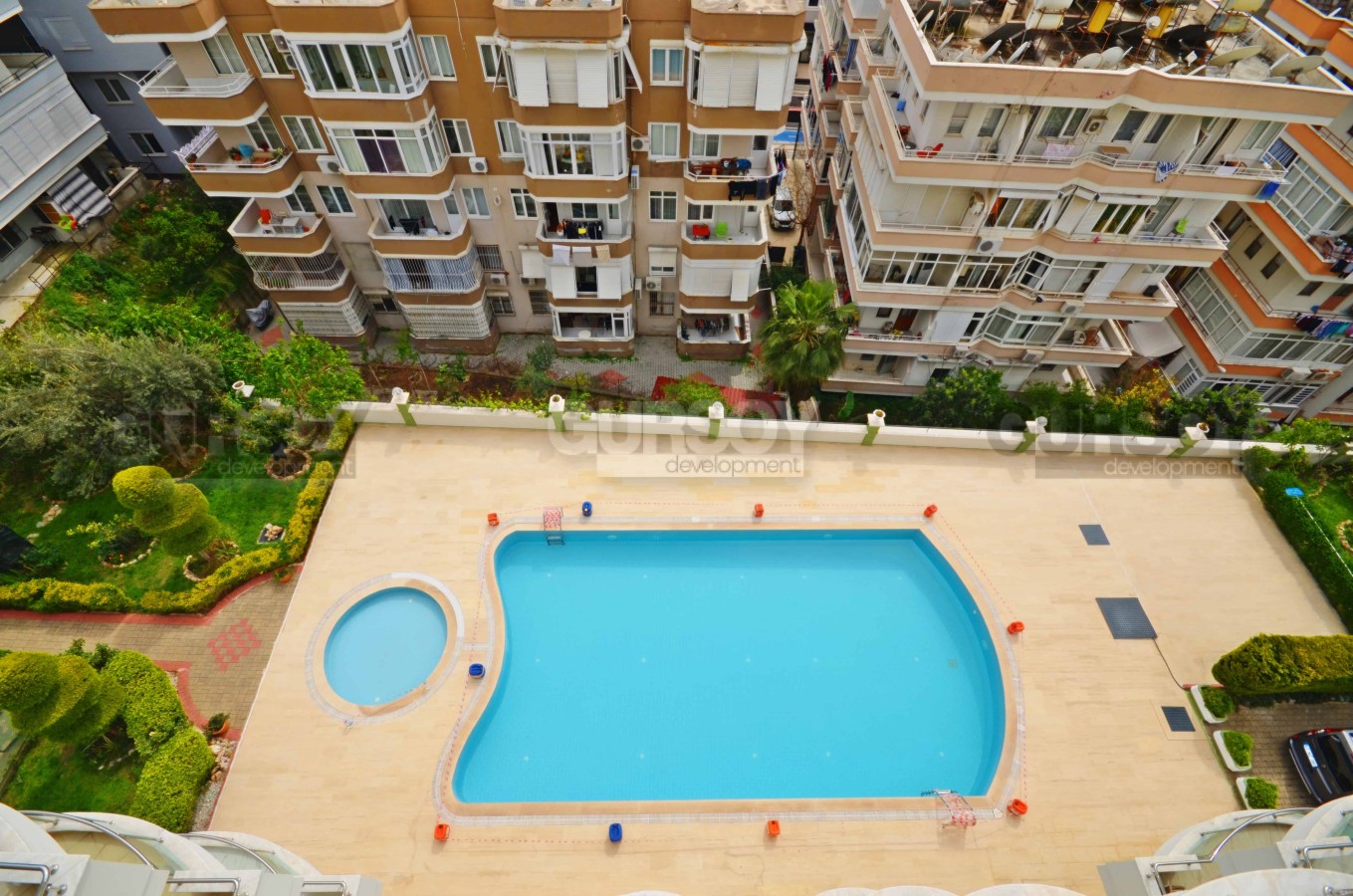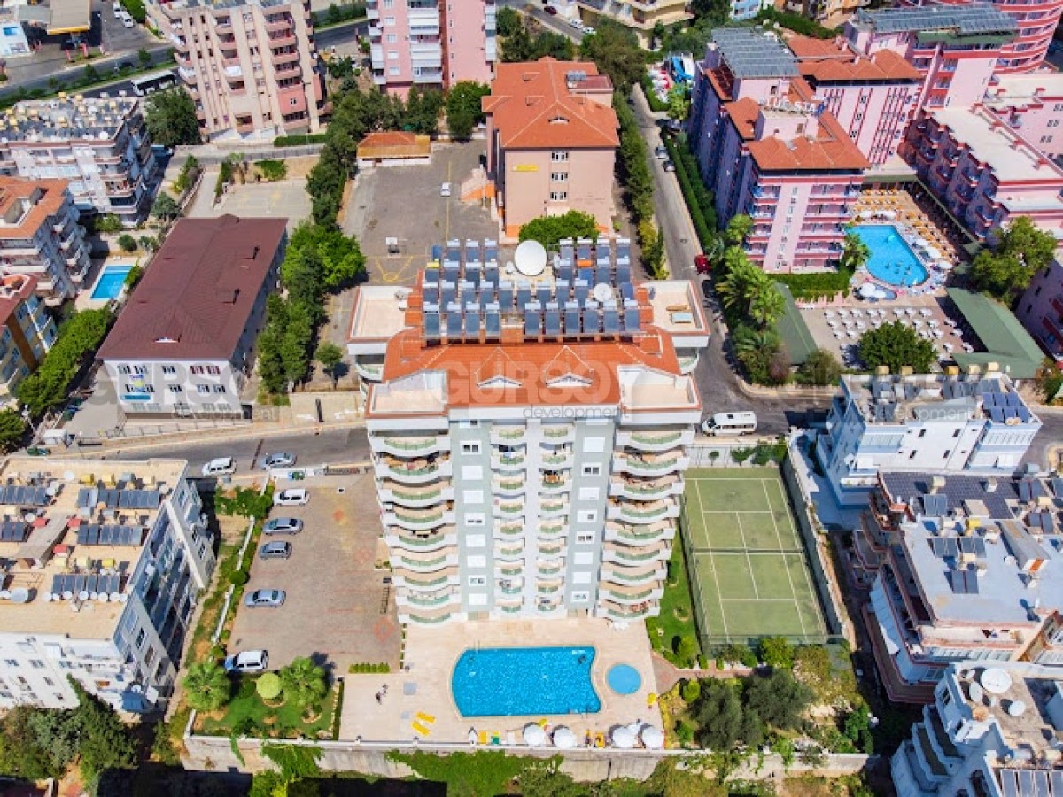 Жилой комплекс имеет всю необходимую для комфортного проживания инфраструктуру. Здесь есть открытый бассейн, парковка, теннисный корт, сад, бильярд и настольный теннис. За порядком и чистотой в комплексе следит смотритель. Уютный жилой комплекс находится всего в 600 метрах от Средиземного моря, в двух шагах от пляжа Клеопатры. Здесь множество исторических и природных достопримечательностей, сетевых супермаркетов и торговых центров, баров, ресторанов и многого другого. Для любителей ночной жизни предусмотрены ночные клубы, для семей с детьми - детские площадки и парки. В Алании каждый найдёт что-то для себя. Квартиры в центре Алании пользуются большим спросом, поскольку недвижимость здесь подойдёт как для постоянного или сезонного проживания, так и для сдачи в аренду и пассивного дохода.
