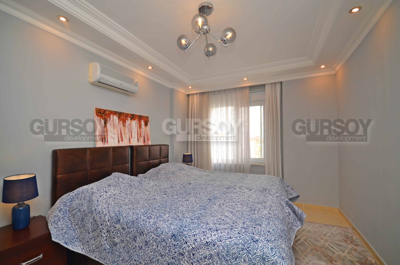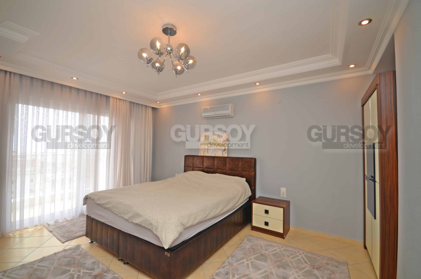 Компания Gürsoy development представляет Вашему вниманию меблированную квартиру 2+1 в центре Алании, всего в 600 метрах от пляжа Клеопатры. Планировка квартиры 2+1, площадь - 100 м2. Квартира расположена на 5-м этаже 10-этажного жилого комплекса 2006 года постройки. Планировка квартиры подразумевает гостиную, совмещённую с кухней, 2 спальни, ванную комнату и 2 балкона. Ванная комната оборудована сантехникой и душем, есть джакузи. Квартира предлагается к продаже с мебелью, бытовой техникой, кондиционерами и точечным освещением, как представлено на фотографиях. С балконов открываются чудесные виды на Средиземное море и Крепость.