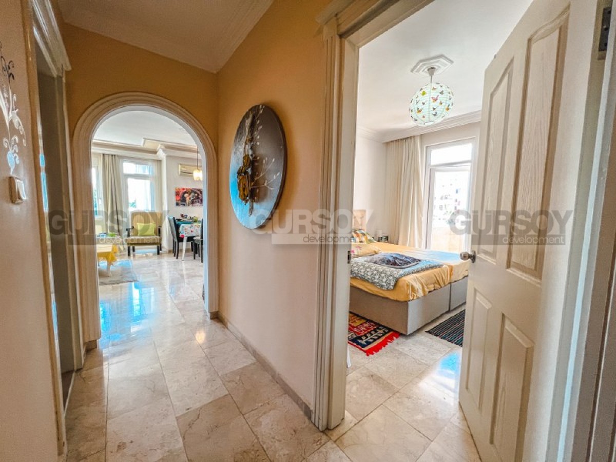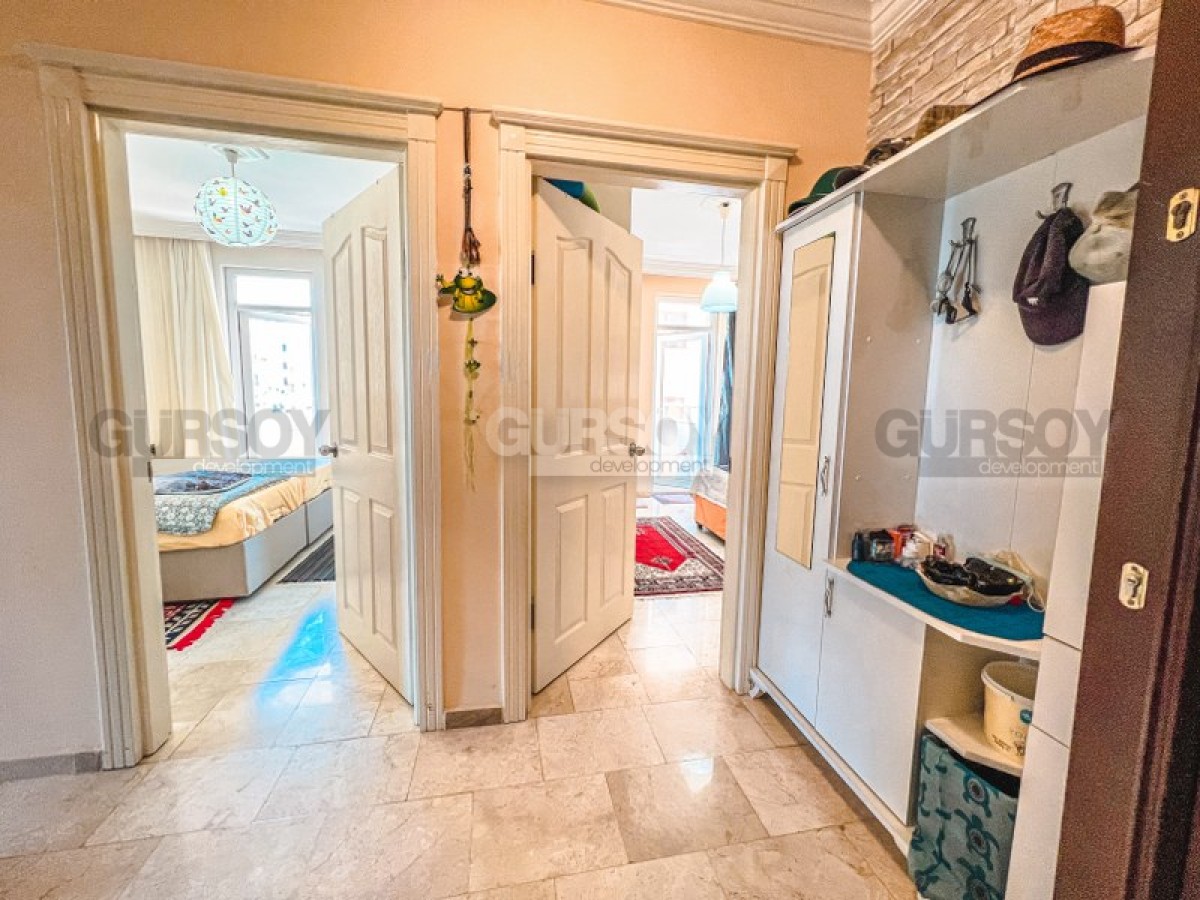 Если вы все еще в поиске апартаментов у моря, предлагаем обратить внимание на готовую к проживанию квартиру 2+1, площадью 110 м2, расположенную на 4-м этаже в комплексе 2008 года постройки, в центре района Махмутлар. Планировка квартиры представлена кухней открытого типа, совмещенной с салоном, двумя спальнями, двумя санузлами, открытым и застекленным балконами с видом на море. Дизайн комнат - простой и универсальный, в светлом интерьере удачно смотрятся картины, комфортабельная мебель и предметы декора. Гостиная визуально разделена на зону отдыха, с мягким диваном, креслом, низким столиком и тумбой; и кухню, с обеденным столом и гарнитуром, оснащенным небольшим холодильником, посудомоечной машиной и духовым шкафом. Спальни укомплектованы кроватями, тумбами и гардеробным шкафами, а на застекленном балконе имеется набор практичной садовой мебели.