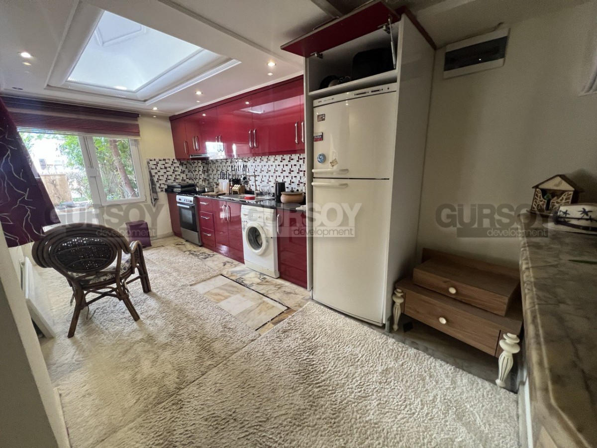 Компания Gürsoy Development представляет вашему вниманию меблированную квартиру 2+1 с выходом в сад в районе Оба. Площадь квартиры - 80 м2, а планировка 2+1 подразумевает наличие гостиной, совмещённой с кухней, 2 спален и ванной комнаты. Квартира продаётся с мебелью, бытовой техникой, кондиционерами и точечным освещением, как представлено на фотографиях. Ванная комната оборудована душевой кабиной и сантехникой. Квартира расположена на 1-м этаже 5-этажного жилого комплекса 1995 года постройки. Квартира имеет выход в сад.