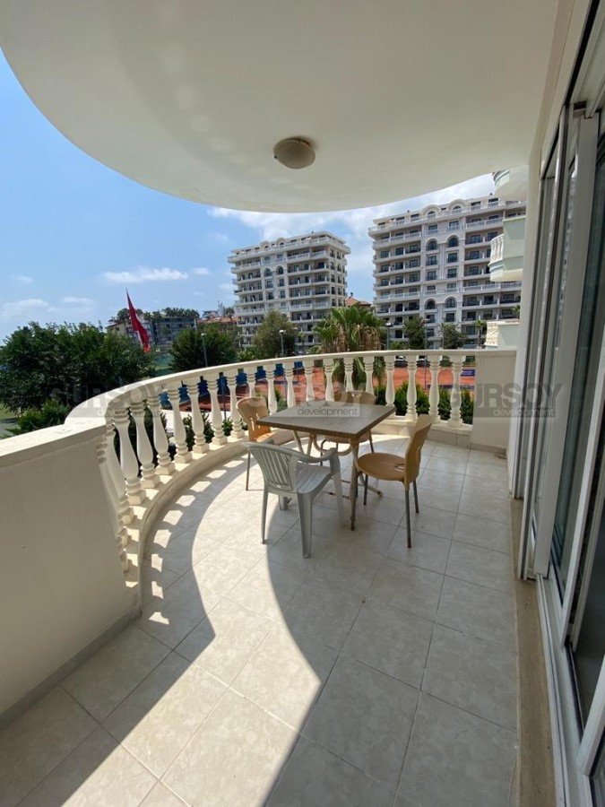 Продаётся просторная квартира планировки 2+1 площадью 110 м², расположенная на втором этаже пятиэтажного жилого дома. Квартира полностью меблирована и готова к проживанию. Из окон и с балкона открывается вид на море и на территорию с бассейном. Южная ориентация обеспечивает максимальное количество солнечного света в течение дня, создавая уютную и комфортную атмосферу для проживания.