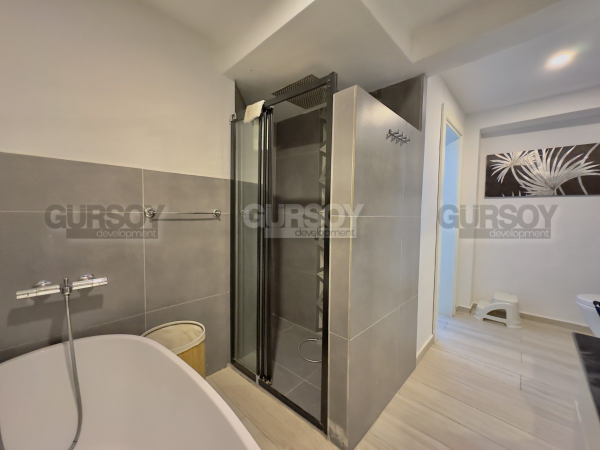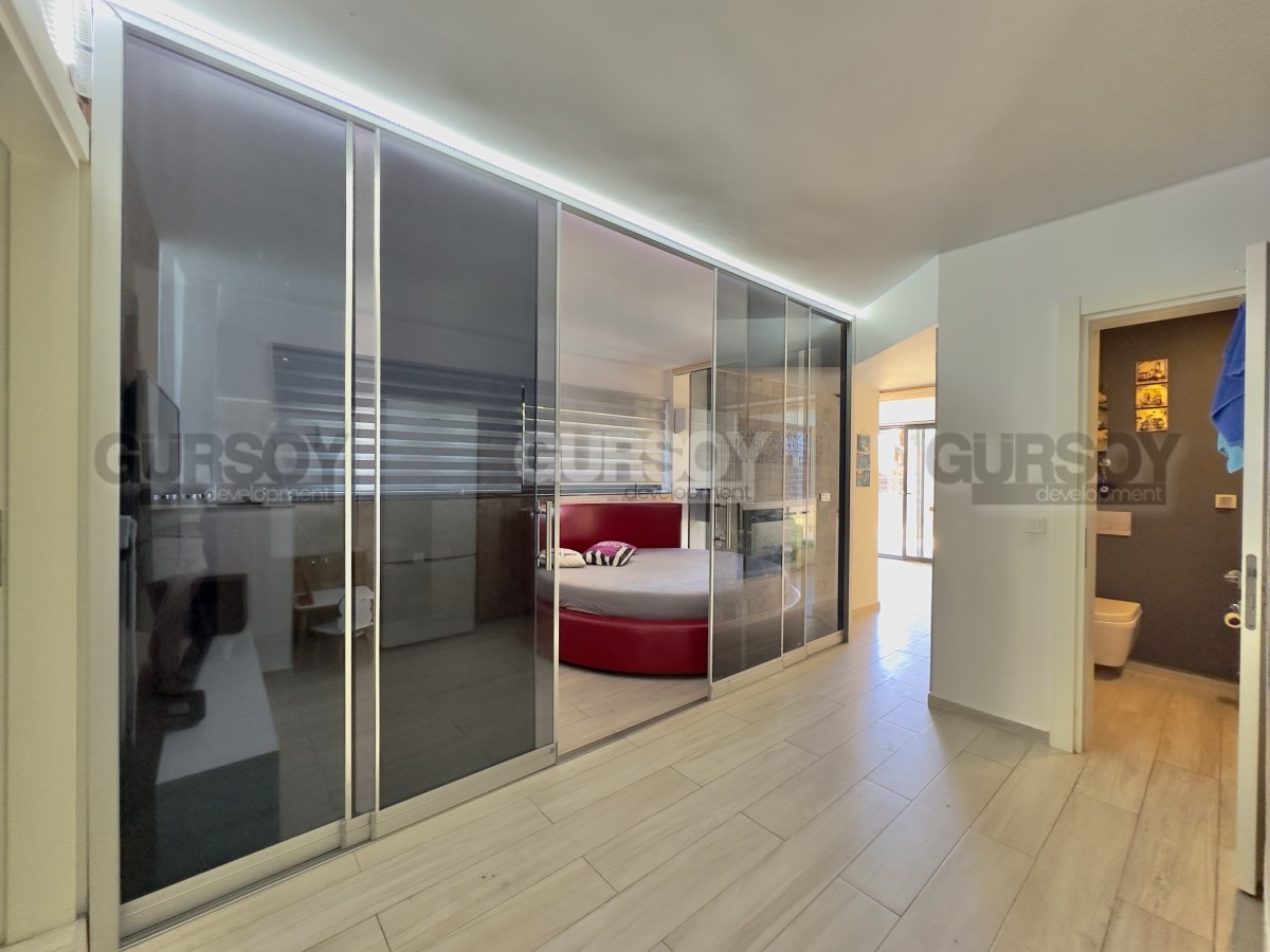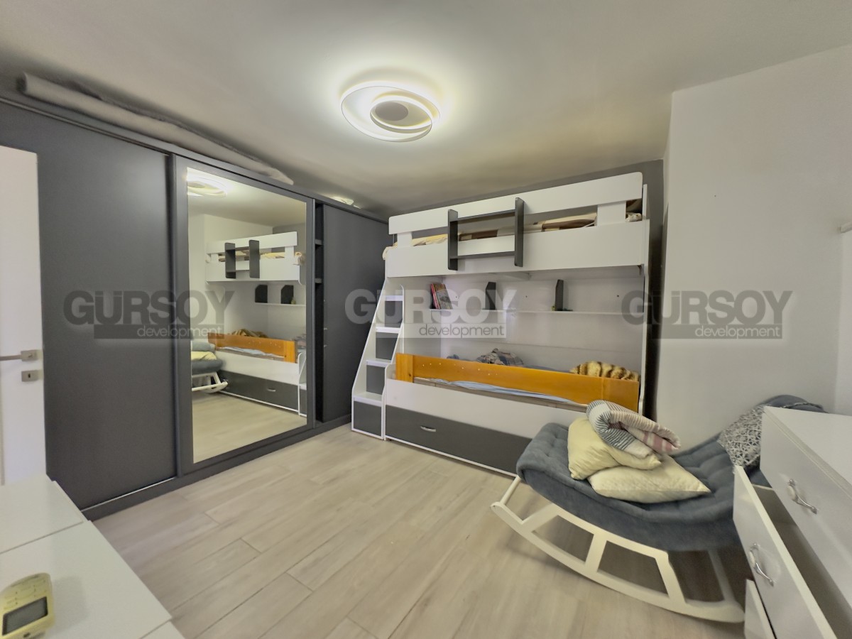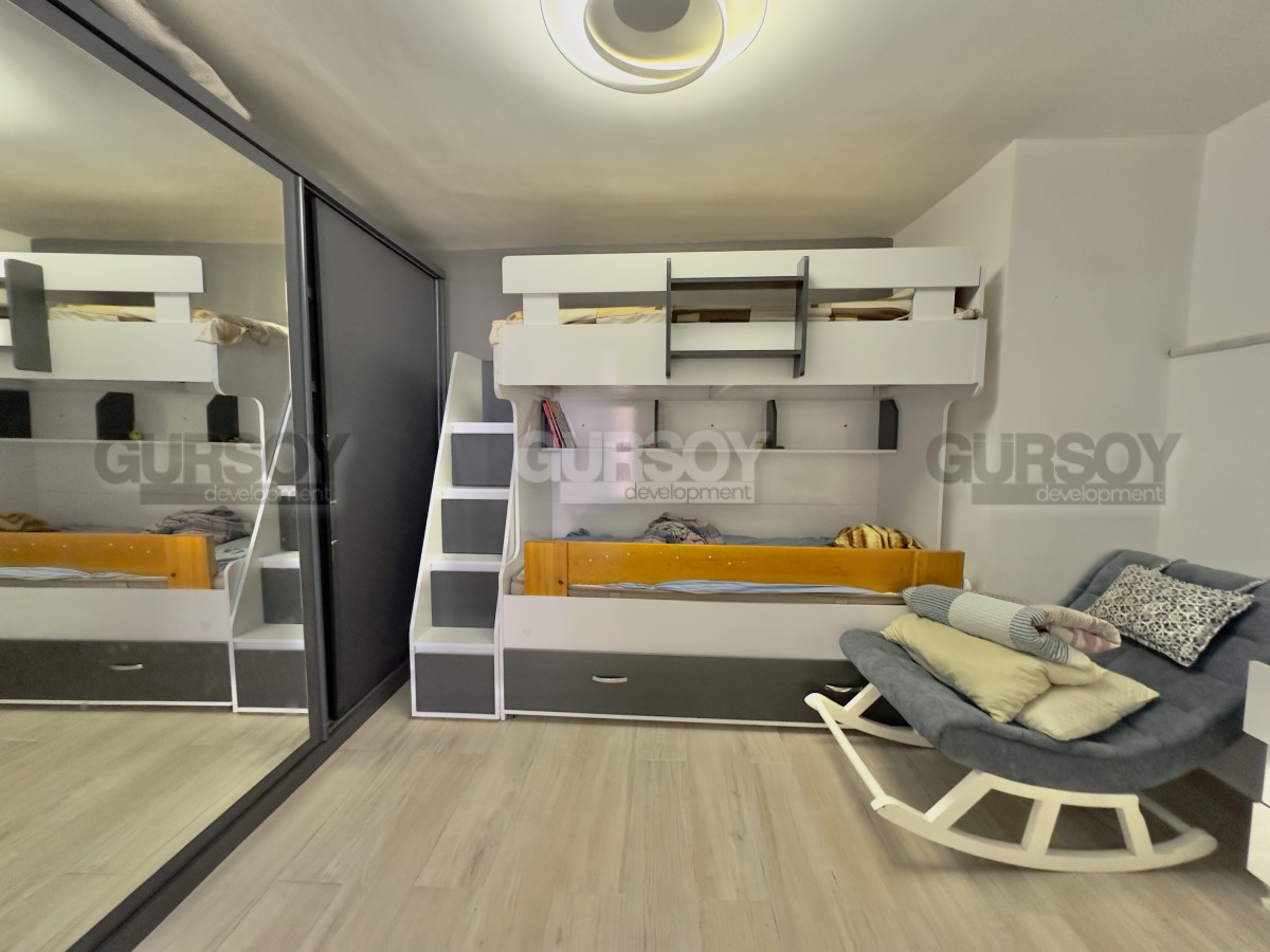 В продаже уютная квартира 2+1 площадью 80 м² с ремонтом, полностью меблированная и готовая к заселению. Расположена на первом этаже, имеет отдельный выход в собственный зелёный сад. В квартире — две спальни, гостиная с кухней открытого типа, санузел и просторная терраса с доступом на участок, где предусмотрен отдельный бассей и зона отдыха с барбекю. Идеальный вариант для тех, кто ценит уединение и возможность отдыхать на свежем воздухе прямо у себя дома.
