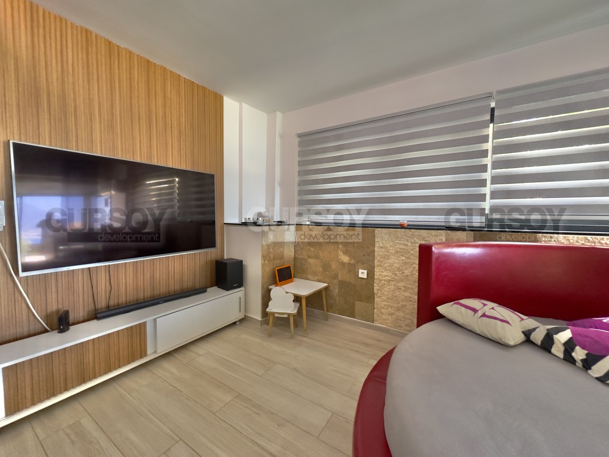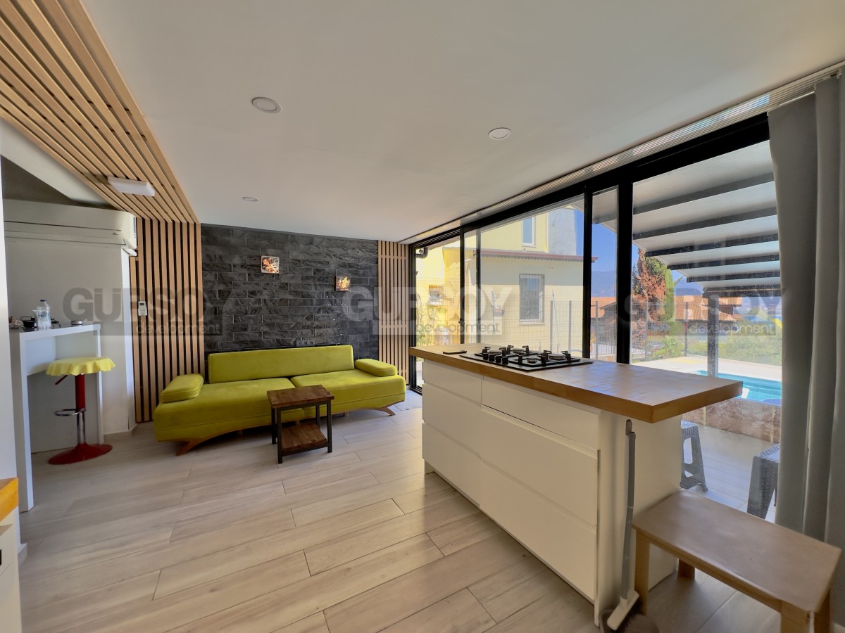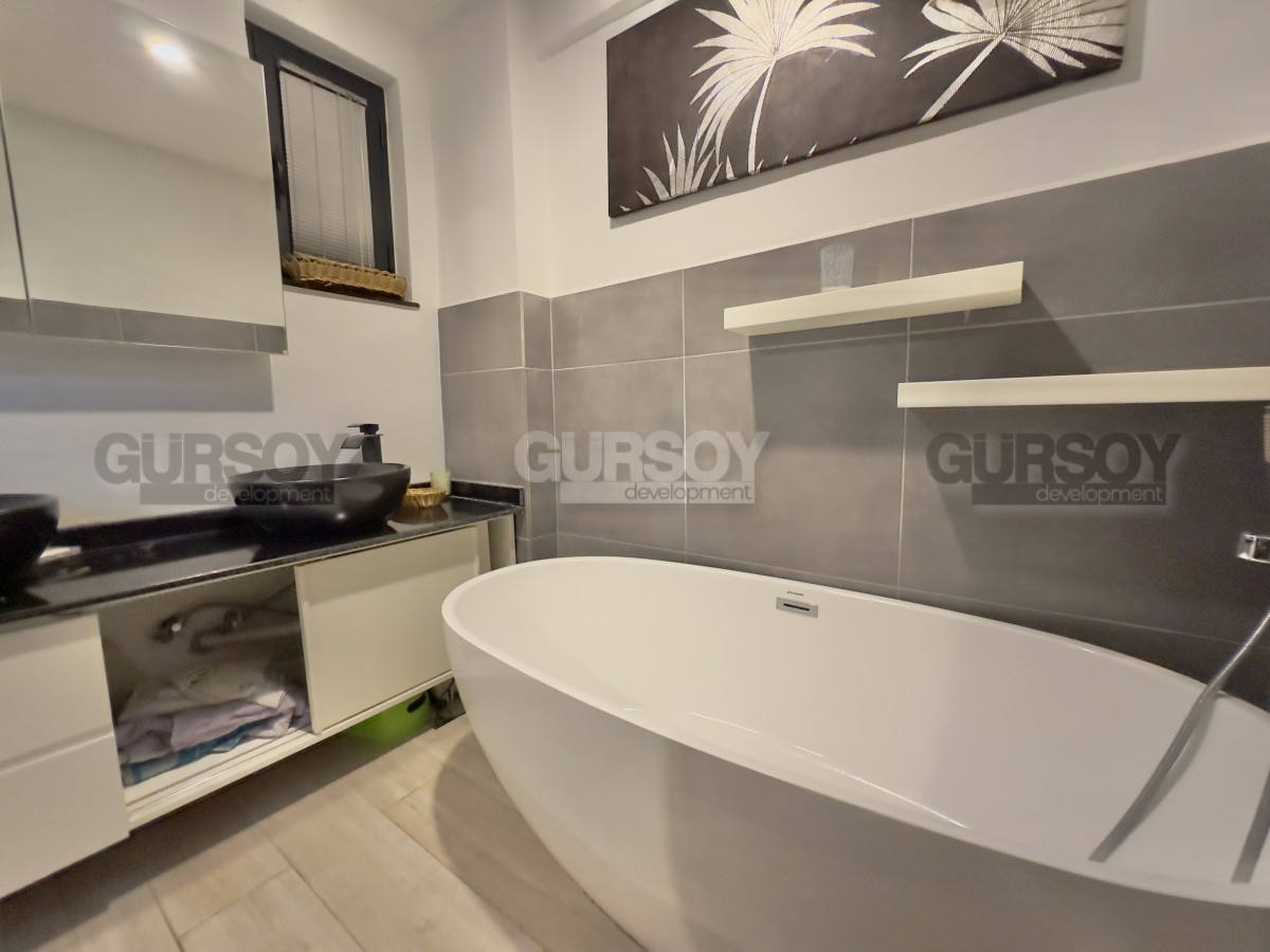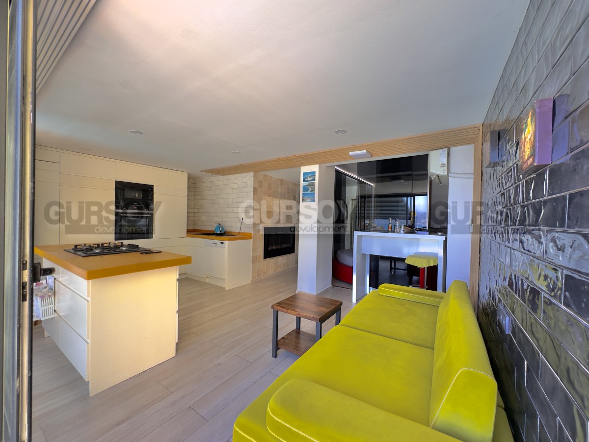 В продаже уютная квартира 2+1 площадью 80 м² с ремонтом, полностью меблированная и готовая к заселению. Расположена на первом этаже, имеет отдельный выход в собственный зелёный сад. В квартире — две спальни, гостиная с кухней открытого типа, санузел и просторная терраса с доступом на участок, где предусмотрен отдельный бассей и зона отдыха с барбекю. Идеальный вариант для тех, кто ценит уединение и возможность отдыхать на свежем воздухе прямо у себя дома.