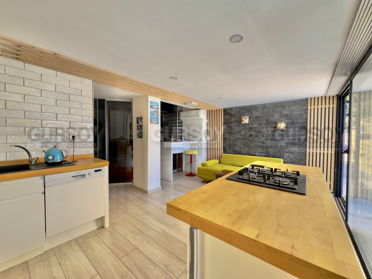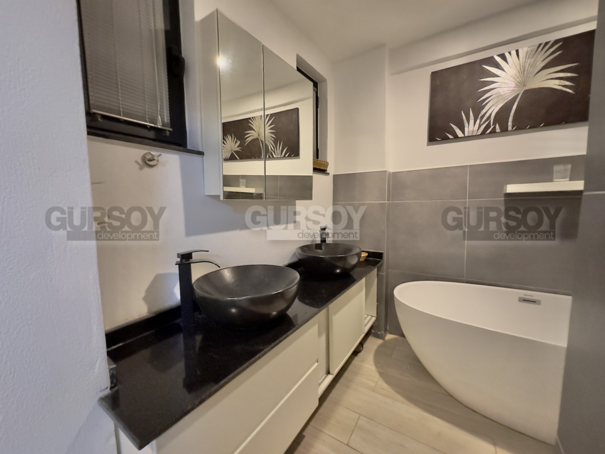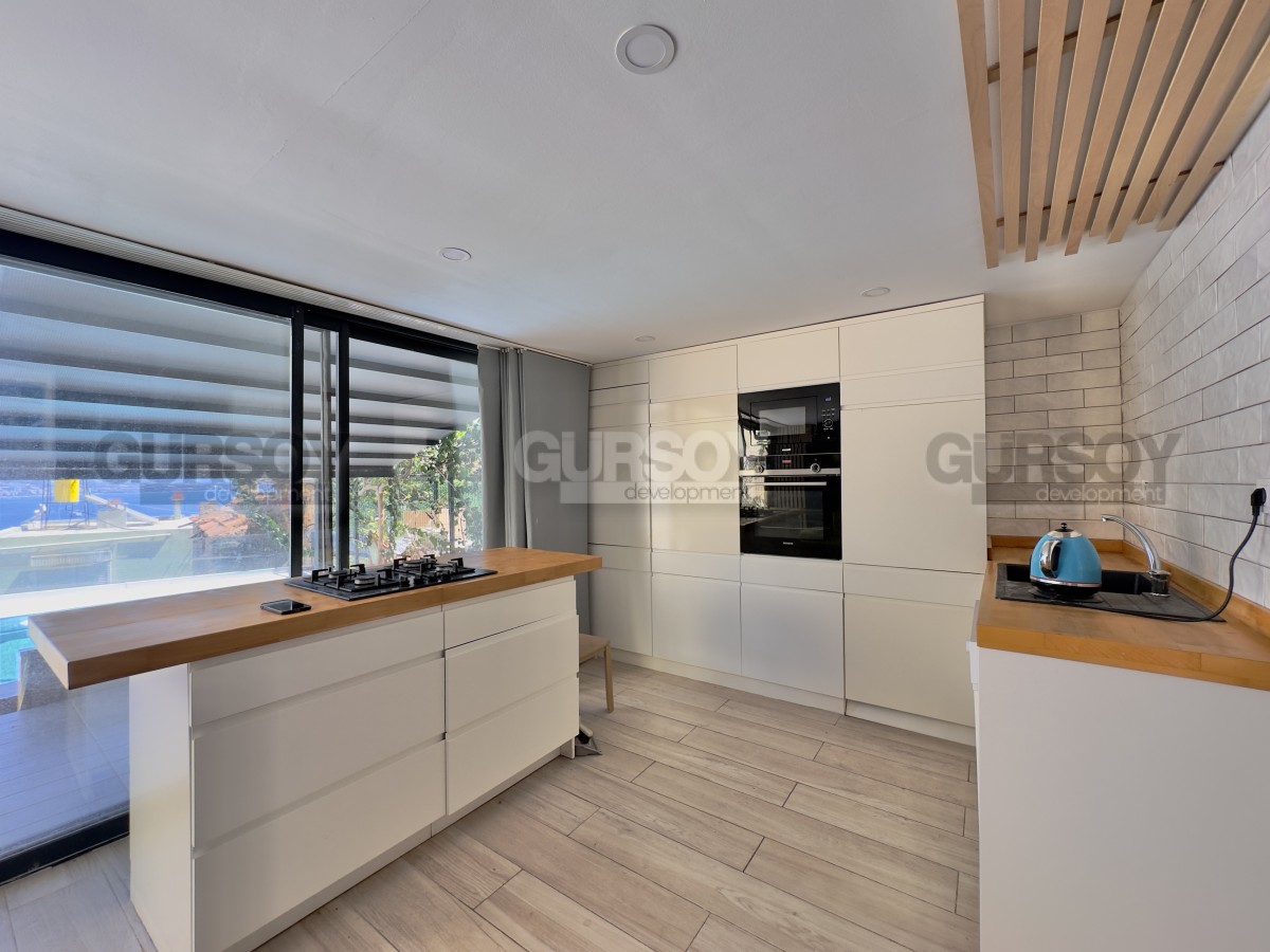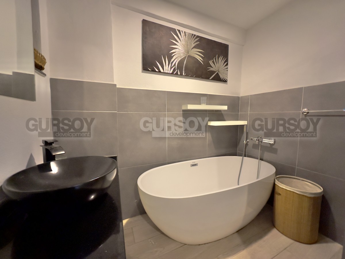 В продаже уютная квартира 2+1 площадью 80 м² с ремонтом, полностью меблированная и готовая к заселению. Расположена на первом этаже, имеет отдельный выход в собственный зелёный сад. В квартире — две спальни, гостиная с кухней открытого типа, санузел и просторная терраса с доступом на участок, где предусмотрен отдельный бассей и зона отдыха с барбекю. Идеальный вариант для тех, кто ценит уединение и возможность отдыхать на свежем воздухе прямо у себя дома.
