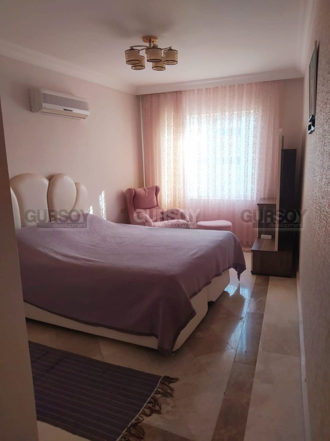 Вашему вниманию представлена просторная меблированная квартира в 600 метрах от моря в Махмутларе. Площадь квартиры - 108 м2, а планировка 2+1 подразумевает наличие гостиной, совмещённой с кухней, 2 спален, 2 ванных комнат и балкона. Квартира расположена на 7-м этаже 12-этажного масштабного жилого комплекса. Квартира продаётся с полным комплектом мебели, бытовой техникой и кондиционерами. В ванных комнатах установлена сантехника, есть душевая кабина и ванна. Квартира полностью готова к заселению. С просторного балкона открывается чудесный вид на ухоженную территорию комплекса.