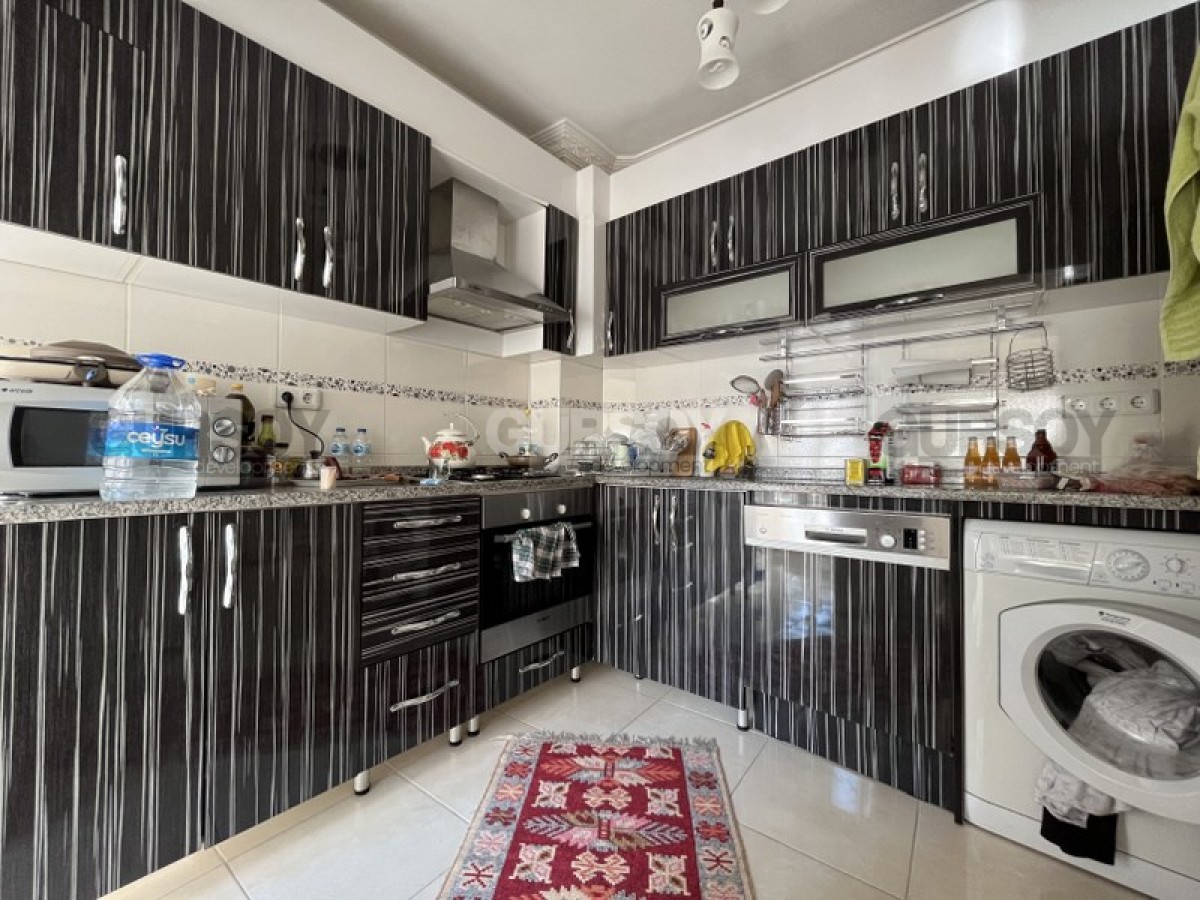 Компания Gürsoy Development представляет вашему вниманию меблированную квартиру 3+1 всего в 50 м от моря в районе Оба. Площадь квартиры - 120 м2, а планировка 3+1 подразумевает наличие гостиной, совмещённой с кухней, 3 спален, ванной комнаты, гостевого санузла и 2 балконов. Квартира продаётся в полной меблировке, с установленной бытовой техникой, кондиционерами. Ванная комната оборудована душевой кабиной и сантехникой, есть проточный водонагреватель. Квартира расположена на 4-м этаже 4-этажного жилого комплекса 1998 года постройки. С балконов открывается чудесный вид на море, горы и пестрые пальмы.