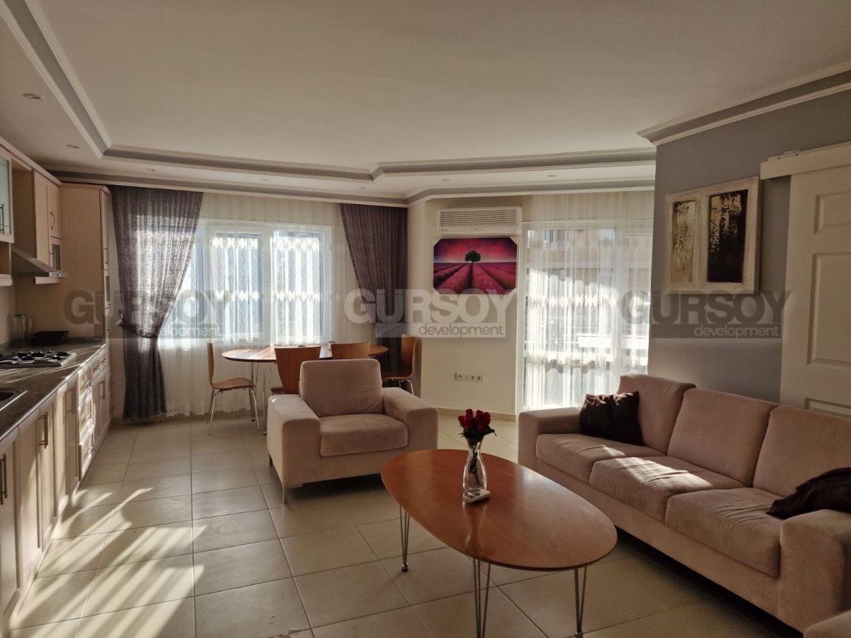 Квартира расположена на 4-м этаже 9-этажного жилого комплекса 2009 года постройки. На территории комплекса есть открытый плавательный бассейн, сад, беседка для отдыха, генератор, камеры видеонаблюдения, сауна, лифт и подвал. Уютный жилой комплекс расположен в популярном районе Алании - Тосмур, на расстоянии 250 м от моря и пляжа. Исторический центр Алании находится в 4,5 км и до него легко добраться на автобусе. Аэропорт Газипаша находится в 39 км. Аэропорт Антальи расположен в 129 км.