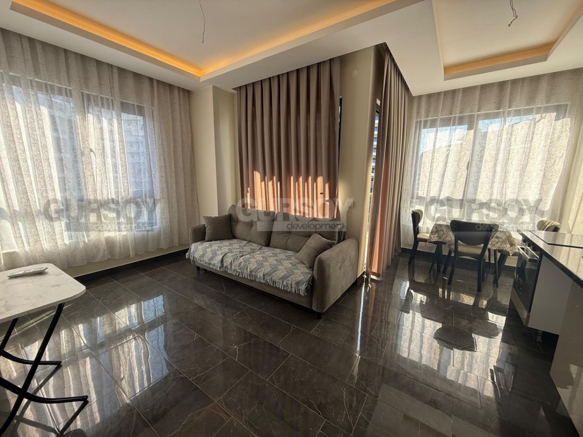 Квартира формата 1+1 общей площадью 55 м² расположена на 7-м этаже современного жилого комплекса. Планировка включает просторную гостиную, совмещённую с кухонной зоной, что создаёт комфортное пространство для отдыха и приёма гостей. Спальня отделена от общего пространства, обеспечивая уединённость и спокойствие. Ванная комната оснащена современной сантехникой и выполнена в стильном дизайне. Большой балкон, ориентированный на восточную сторону, наполняет квартиру естественным светом в утренние часы и открывает приятный вид на город и зелёные зоны.
