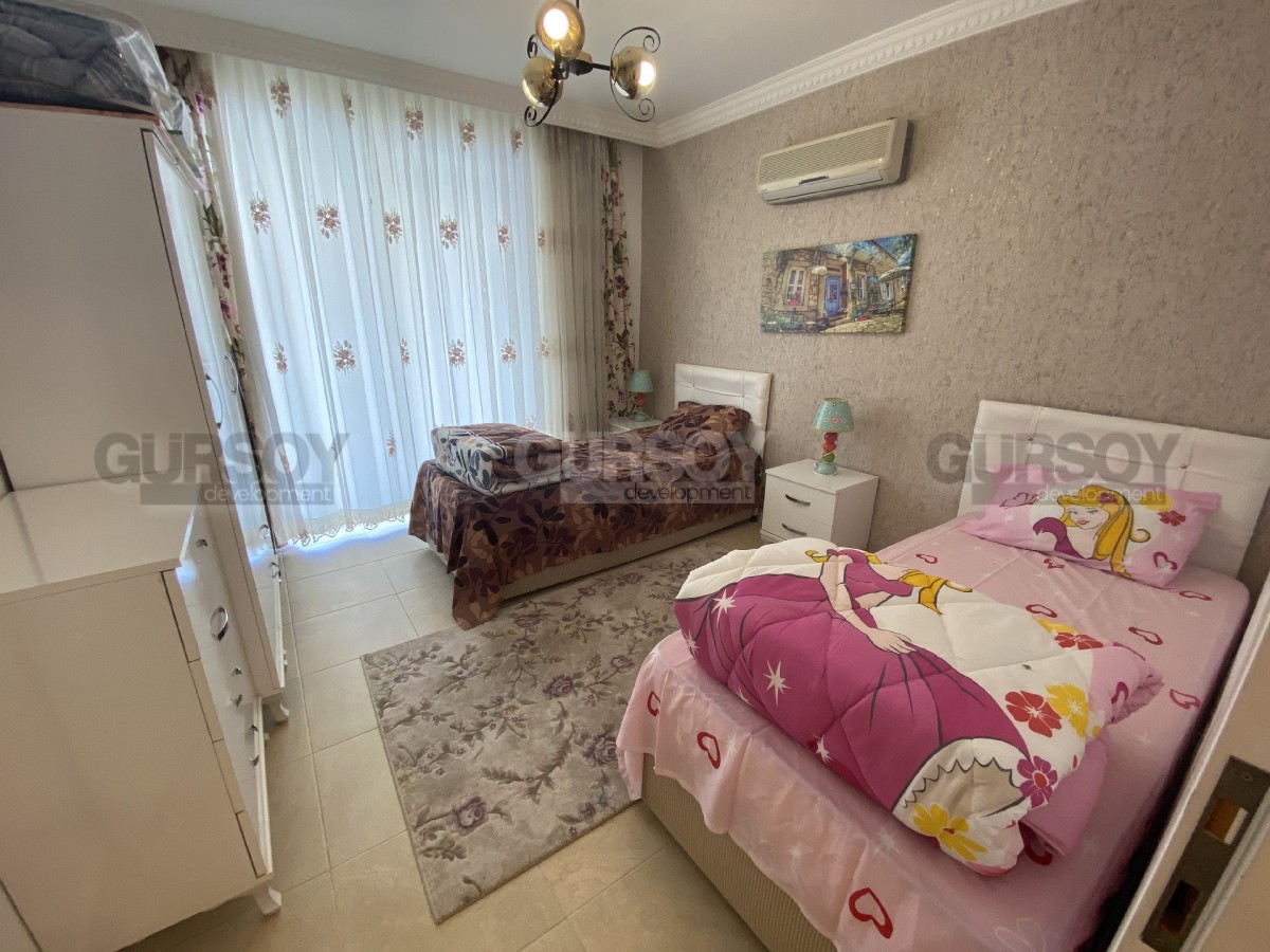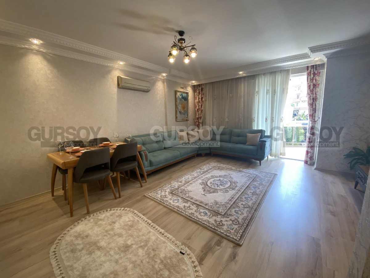 Продается уютная квартира всего в 100 метрах от берега моря в прекрасном районе Махмутлар. Эта квартира имеет планировку 2+1 и площадь 115 кв.м. Она расположена на южной стороне, что позволит вам наслаждаться светом в течение большей части дня. Важно отметить, что квартира продается с мебелью и бытовой техникой, что делает ее готовой к заселению.