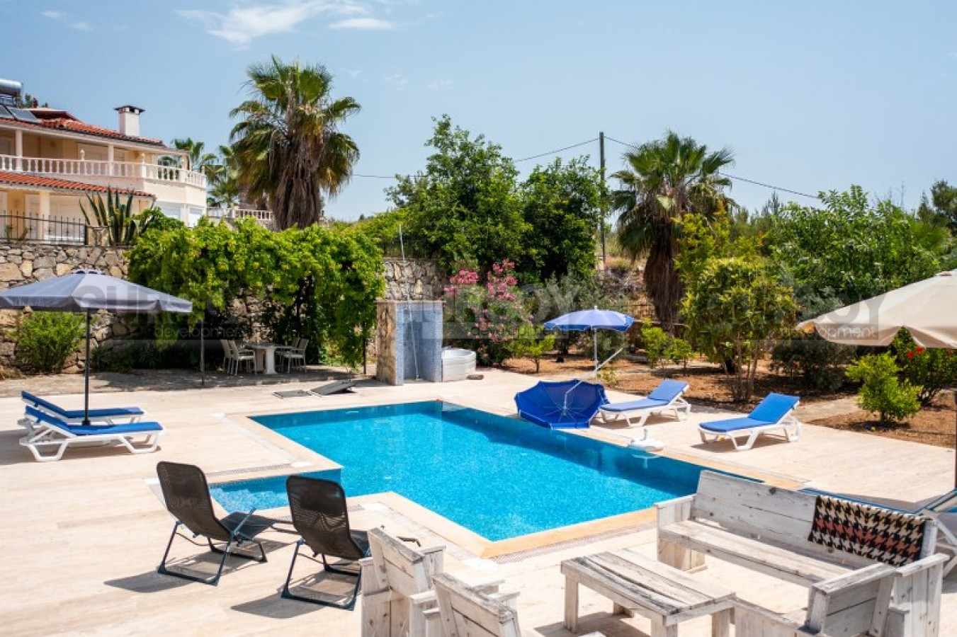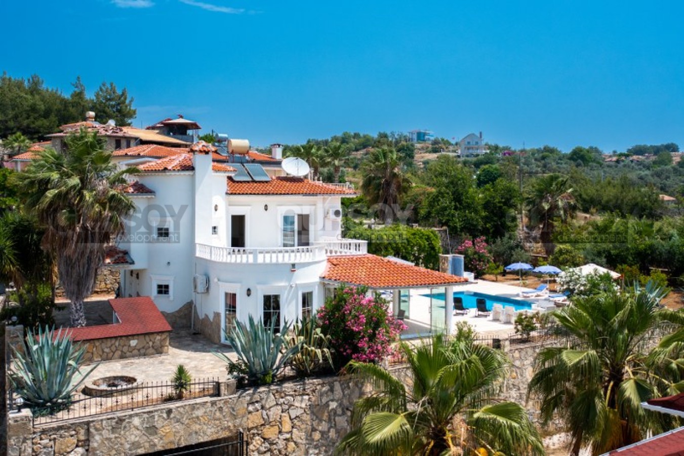 Расположение этой виллы в районе Инжекум является одним из ее главных преимуществ. Этот район известен своей живописной природой и является открытым для получения ВНЖ (вида на жительство). Знаменитый пляж Инжекум находится всего в 2000 метрах от виллы. Этот пляж отмечен "голубым флагом", что свидетельствует о его чистоте и безопасности. Он обладает красивым песчаным берегом и плавным входом в море, что делает его идеальным для отдыха и купания.