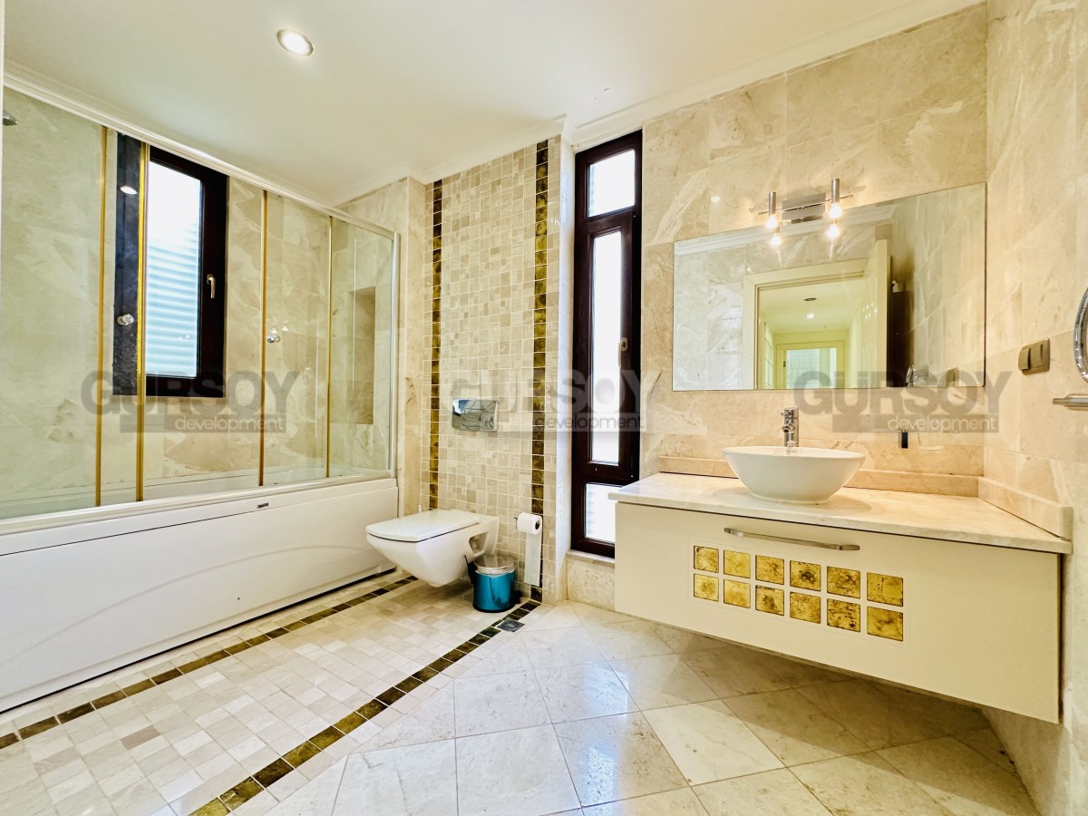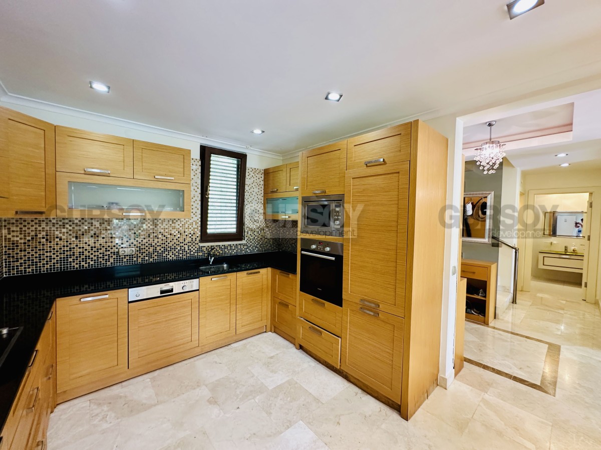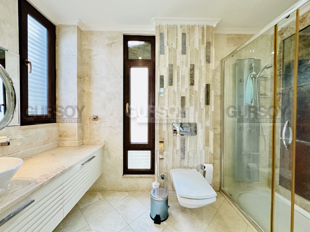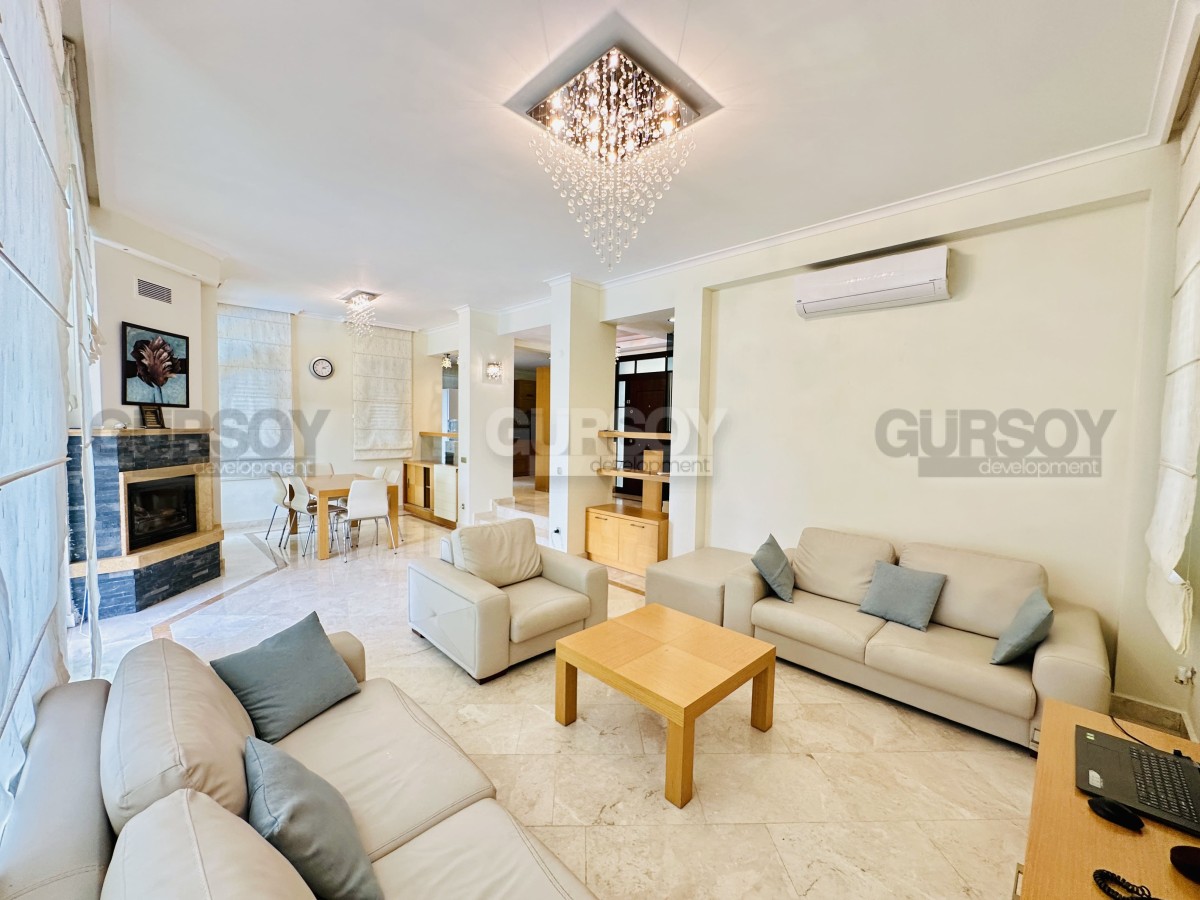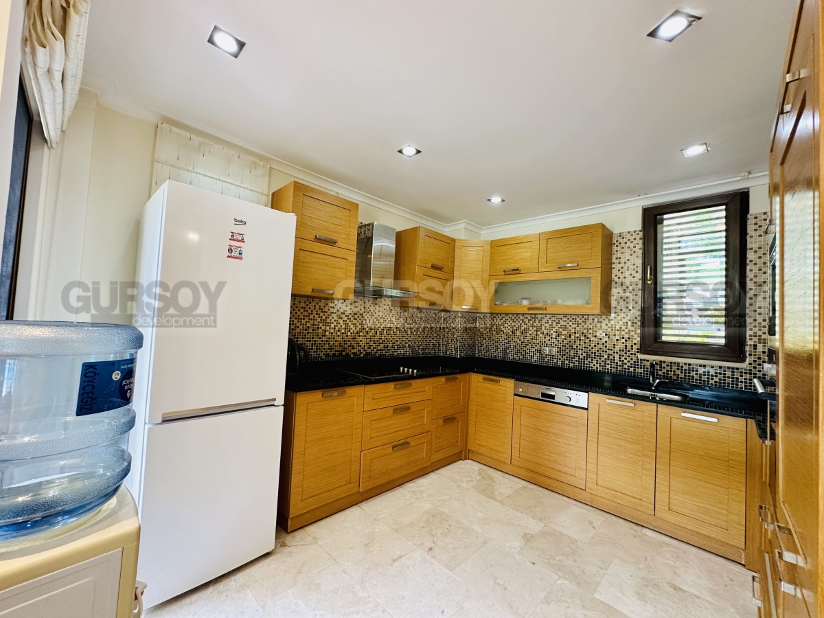 На продажу представлена просторная вилла 3+1 площадью 245 м², расположенная в живописной части района Каргыджак. На первом этаже — гостиная с камином, кухня открытого типа и гостевой санузел; на втором — три спальни, две ванные комнаты и терраса с видом на море. Вилла продаётся с мебелью, техникой и полностью готова к заселению. Все комнаты светлые благодаря юго-восточной и западной ориентации.