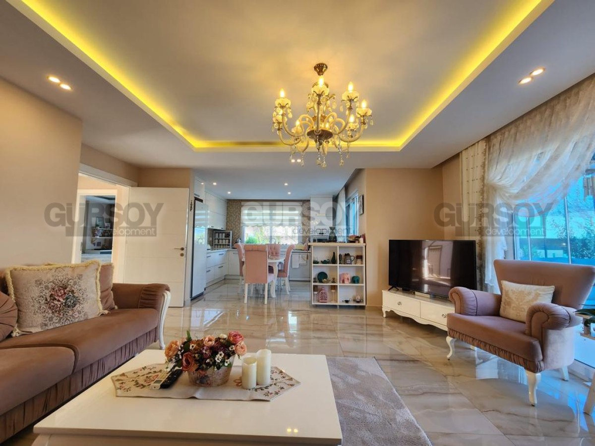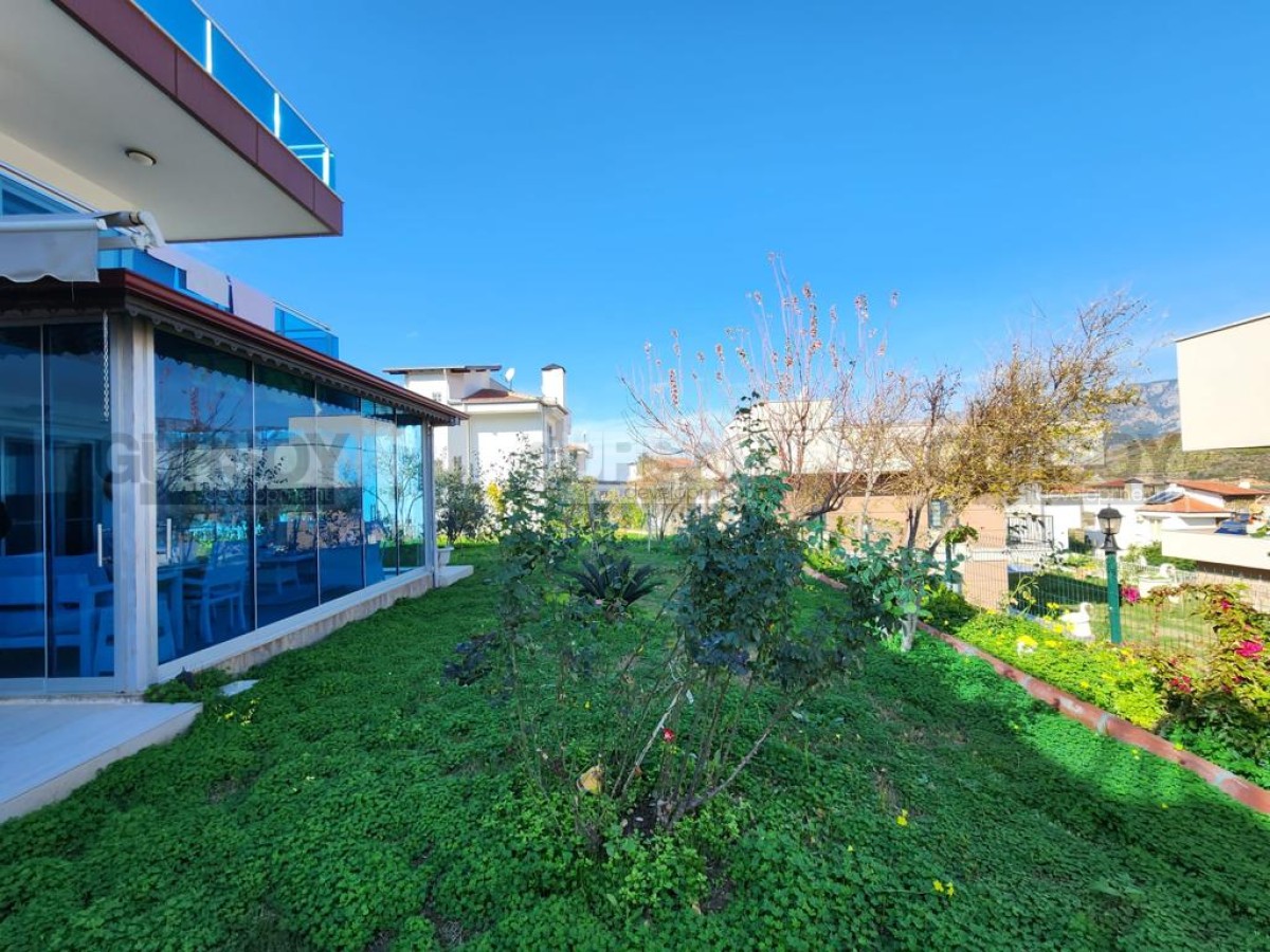 Компания Gürsoy Development представляет вашему вниманию частную виллу 4+1 площадью 300 м2 в 1.5 км от пляжа в районе Каргыджак. Двухэтажная вилла полностью меблирована и укомплектована бытовой техникой, что сохранит время и средства на её обустройство. Планировка 4+1 подразумевает наличие 4-х спален, гостиной, совмещённой с кухней, 2-х ванных комнат, двух балконов и просторной террасы. Во всех комнатах установлены кондиционеры и подогрев полов. Ванные комнаты оборудованы сантехникой и душевыми кабинами. С балконов и террасы открываются захватывающие дух виды на Таврские горы. Также вилла имеет зимний сад, в котором уже установлена садовая мебель. Вилла полностью готова к заселению. Площадь сада - 300 м2, здесь посажены овощи и установлена автоматическая система полива. На территории есть гараж.