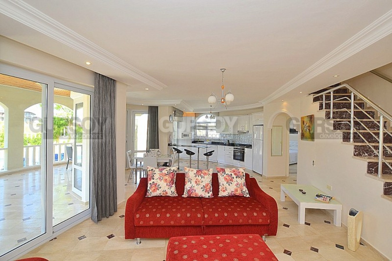 Вилла имеет планировку 5+1: пять спален, гостиная с кухней две ванные комнаты и три туалета. Терраса идеально подходит для утреннего кофе или вечерних посиделок с друзьями и семьей. Два балкона добавляют дополнительный шарм и позволяют наслаждаться свежим воздухом и прекрасными видами на окрестности. Вилла продается полностью меблированной, что позволяет вам сразу же насладиться комфортом и уютом без необходимости дополнительных затрат на обустройство.