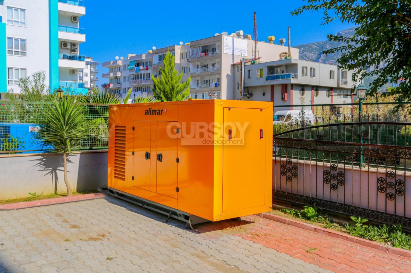Комплекс находится всего в 350 метрах от моря и предлагает своим жильцам минимальную, но полезную инфраструктуру. Здесь вы найдете открытый и детский бассейны, где можно освежиться в жаркие дни, сауну и хамам для релаксации, фитнес-зал с теннисным столом для активного отдыха, а также круглосуточную охрану для вашего спокойствия и безопасности.