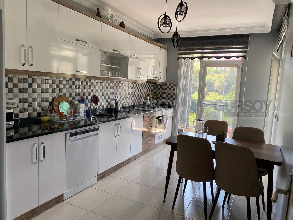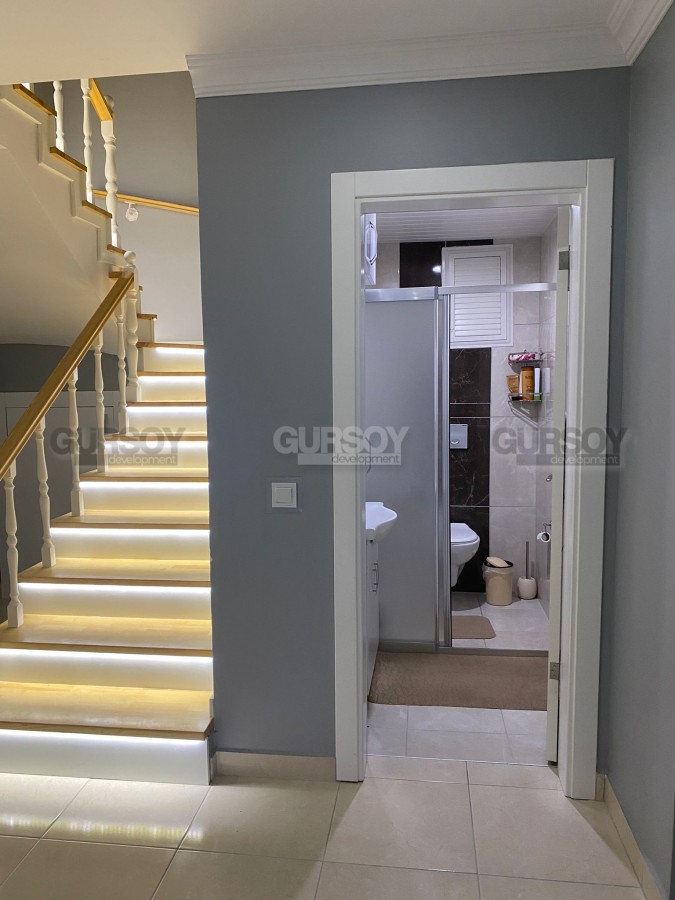 Компания Gürsoy Development представляет вашему вниманию просторный, полностью меблированный дуплекс планировкой 5+1 площадью 300 м² в районе Чиплаклы. Жилой комплекс городского типа был построен в 2018 году. Квартира расположена на 4-м и 5-м этажах 5-этажного комплекса. Планировка квартиры подразумевает гостиную, отдельную кухню, 5 спален, 2 ванные комнаты и 2 балкона. Квартира продаётся с полным комплектом мебели и бытовой техникой, как представлено на фотографиях. В комнатах установлены кондиционеры. Ванные комнаты оборудованы душевой кабиной и современной сантехникой. Двухуровневая квартира полностью готова к заселению. С балконов, один из которых застеклен, открывается шикарный вид на Таврские горы и живописную природу. Квартира выходит на северо-восточную сторону.