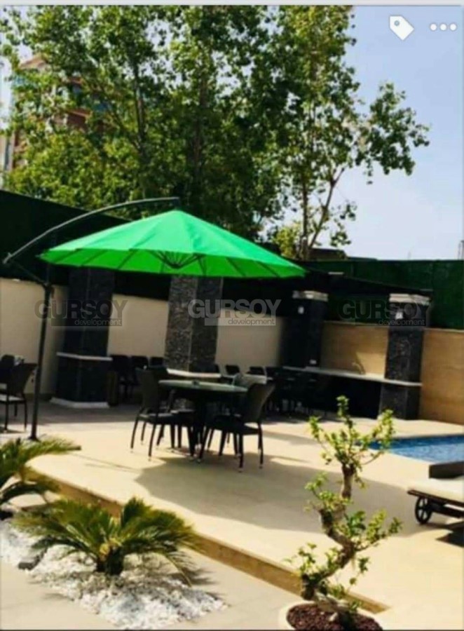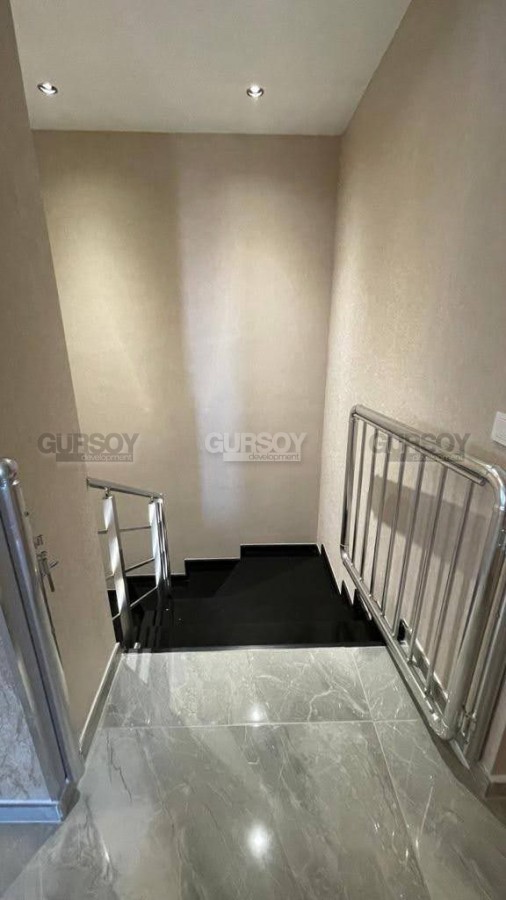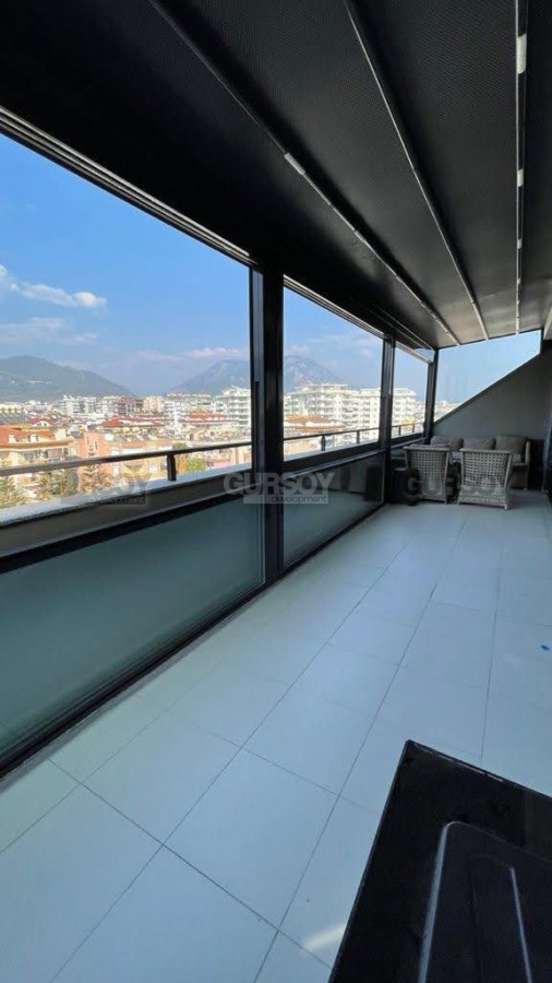 Просторный дуплекс 4+1 площадью 200 м² расположился на верхних этажах жилого комплекса, поэтому с балконов и окон открывается прекрасный вид на горы. На верхнем уровне расположены гостиная и кухня, оформленные в современном стиле. На нижнем уровне находятся четыре спальни, каждая из которых отличается уютом и функциональностью. Квартира оснащена застекленным балконом, который может использоваться как дополнительное пространство для отдыха. Все комнаты меблированы, отличаются просторностью и удобством для проживания.