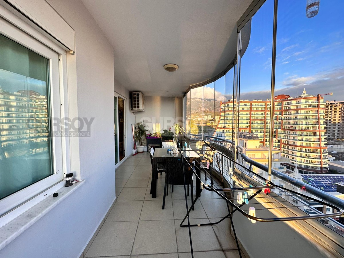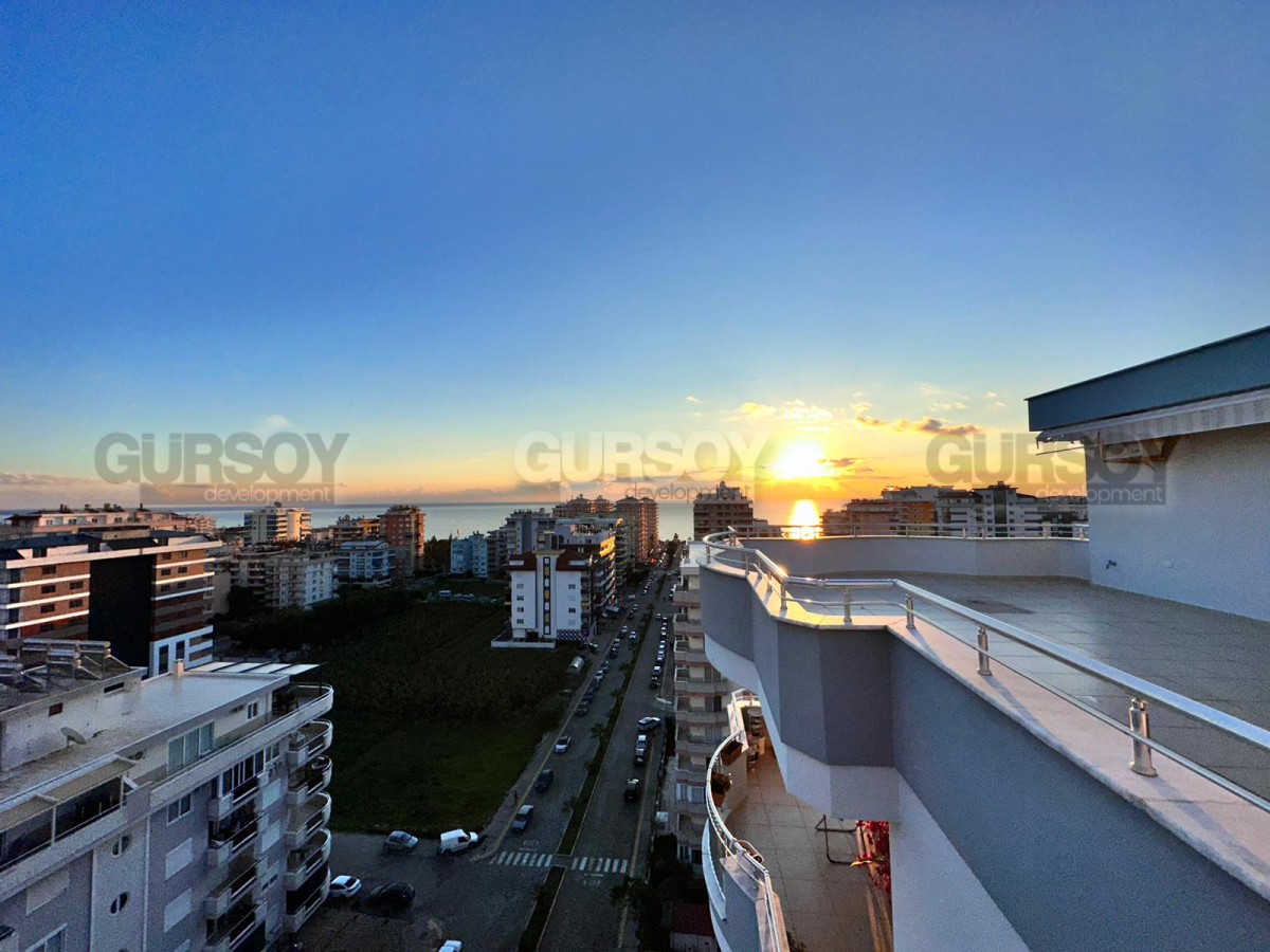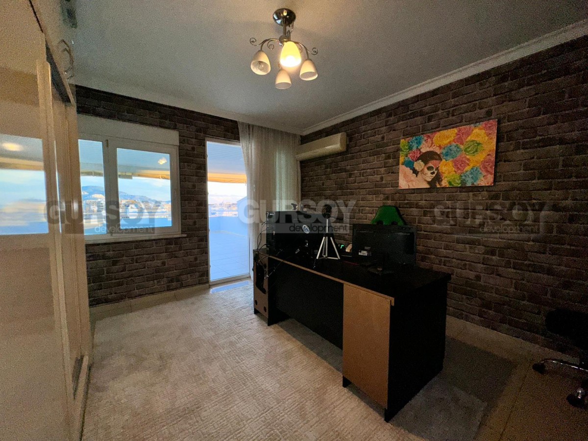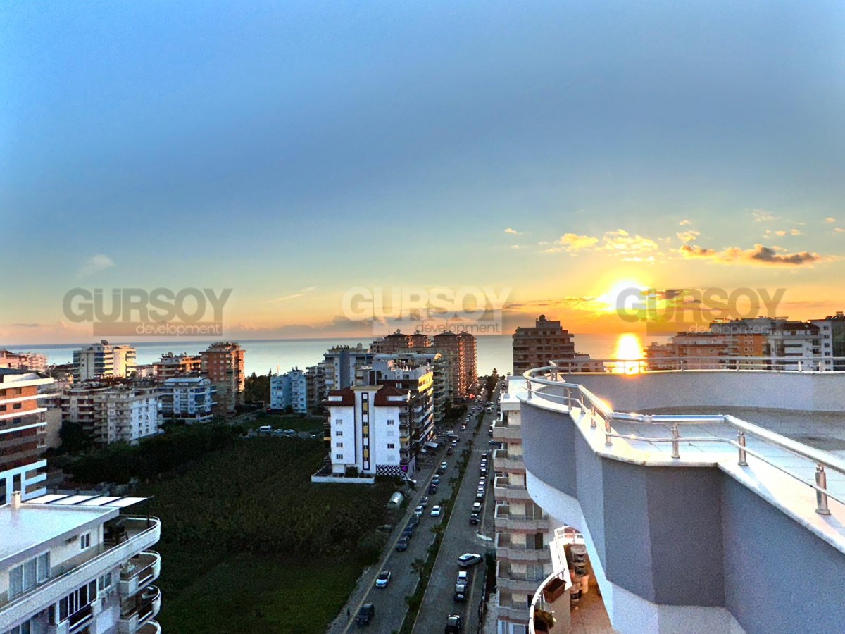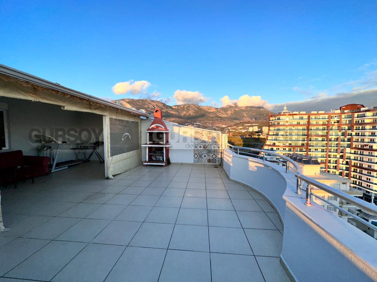Площадь квартиры - 280 м2. Квартира расположена на 11-м и 12-м этажах 12-этажного жилого комплекса. Планировка 4+1 подразумевает наличие гостиной, совмещённой с кухней, 4 спален, 3 ванных комнат, балкона и террасы. Квартира продаётся с полным комплектом стильной мебели и бытовой техники, кондиционерами, LED-подсветкой и точечным освещением. Ванные комнаты оборудованы душевыми кабинами и сантехникой, есть проточный водонагреватель. С дуплекса открываются захватывающие дух виды на Средиземное море, Таврские горы и пестрые пальмы.