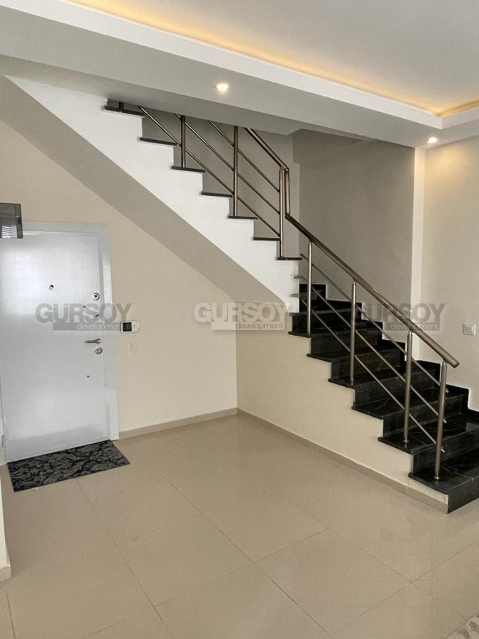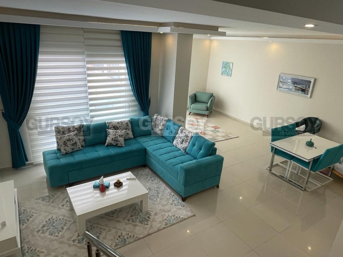 Вашему вниманию представлен просторный меблированный садовый дуплекс в Кестеле планировкой 2+1 площадью 140 м2. Планировка 2+1 подразумевает наличие 2 спален, гостиной, совмещённой с кухней, 2 ванных комнат и балкона. Двухуровневая квартира расположена на нулевом и первом этажах 5-этажного жилого комплекса с инфраструктурой. Квартира полностью готова к заселению - здесь есть мебель, бытовая техника, кондиционеры, точечное освещение и LED-подсветка, душевые кабины и сантехника.