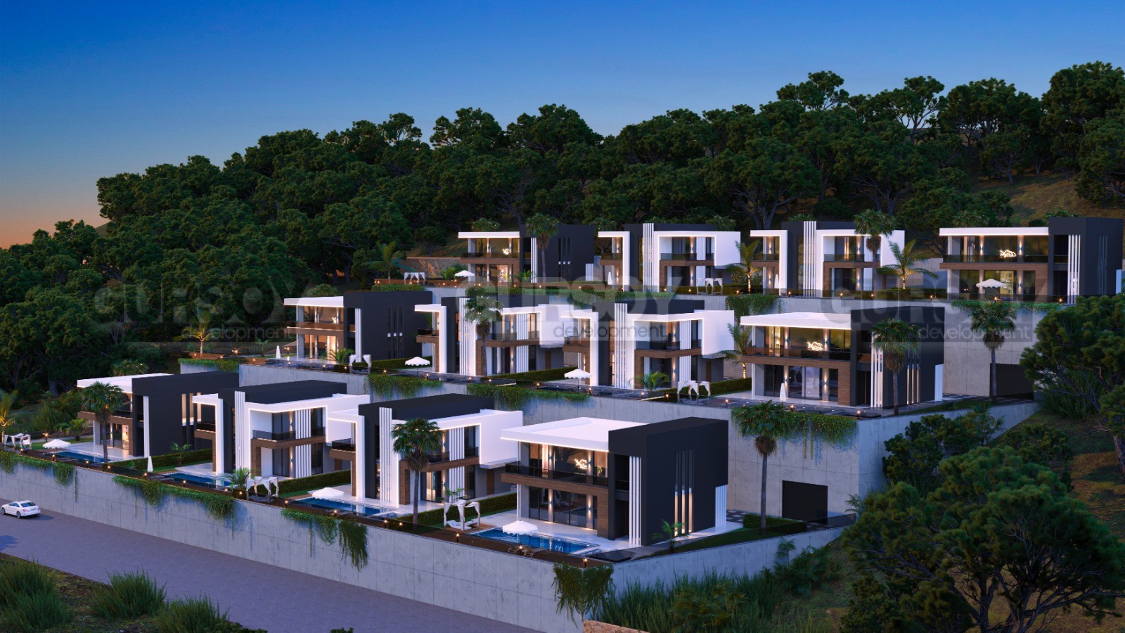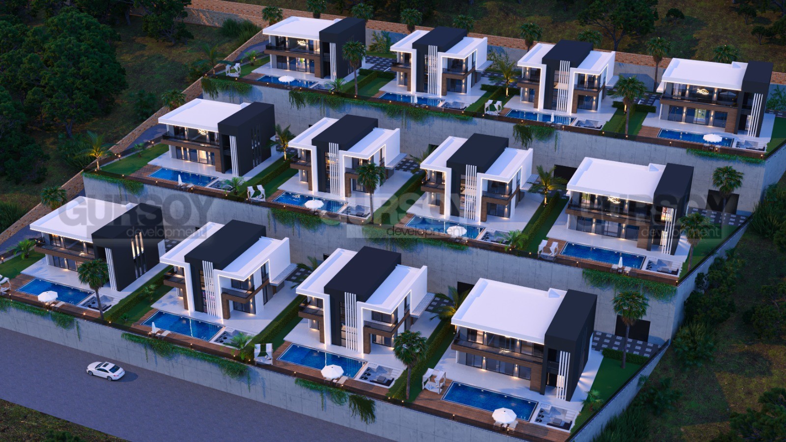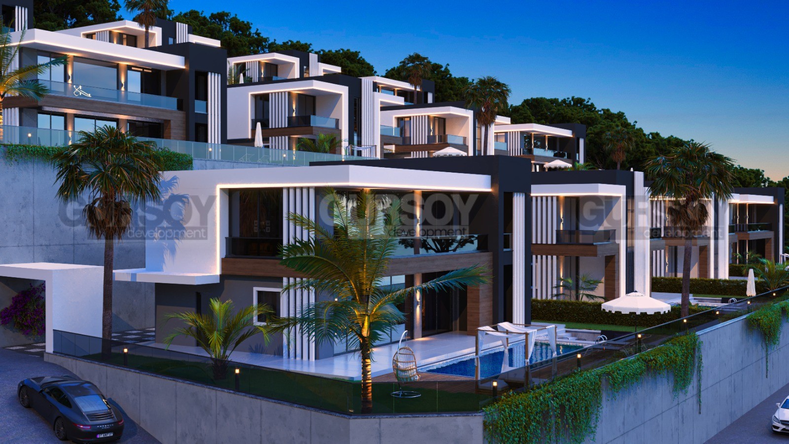 Общая площадь строительства составит 6,432 кв.м., и комплекс будет состоять из 12 роскошных вилл с планировкой 4+1, площадью 339 и 365 кв.м. Каждая вилла предлагает великолепные панорамные виды на Средиземное море, окружающую природу и город.