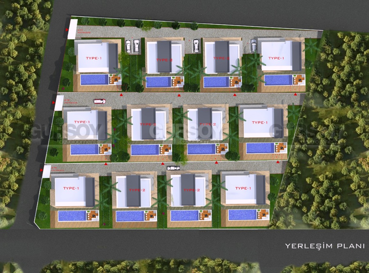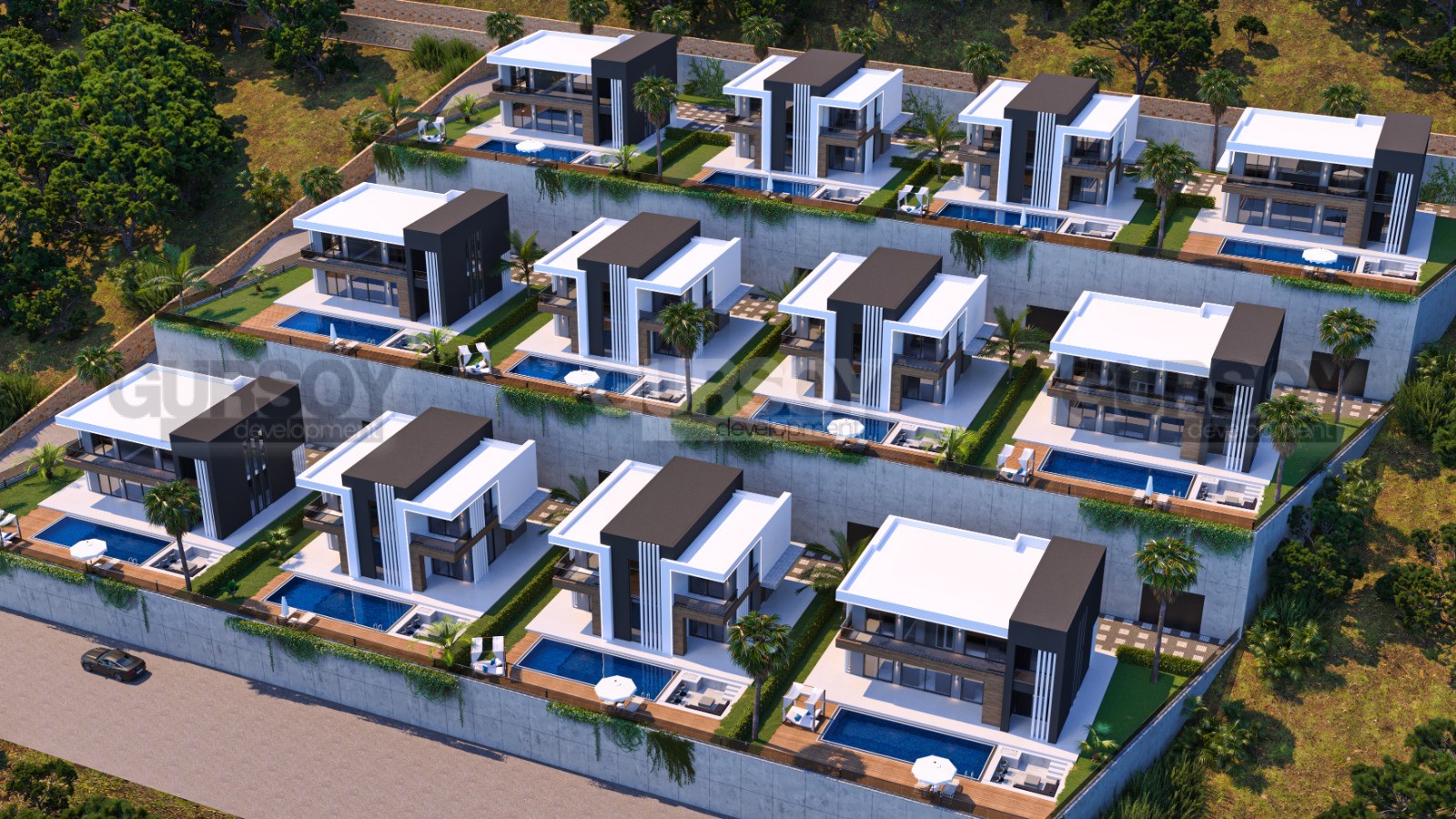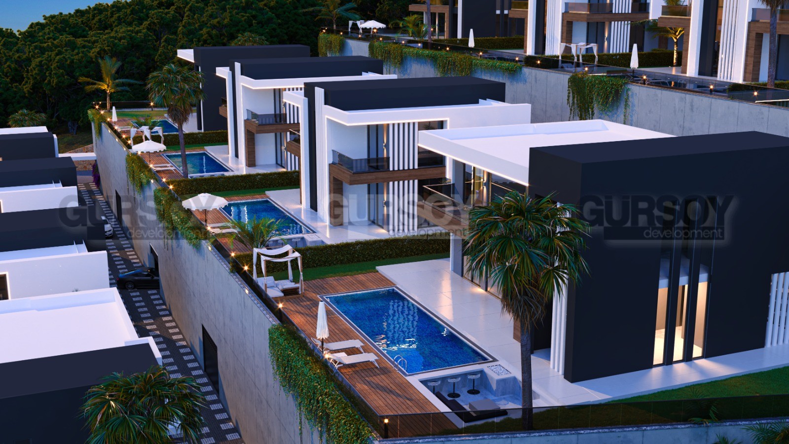 Общая площадь строительства составит 6,432 кв.м., и комплекс будет состоять из 12 роскошных вилл с планировкой 4+1, площадью 339 и 365 кв.м. Каждая вилла предлагает великолепные панорамные виды на Средиземное море, окружающую природу и город.