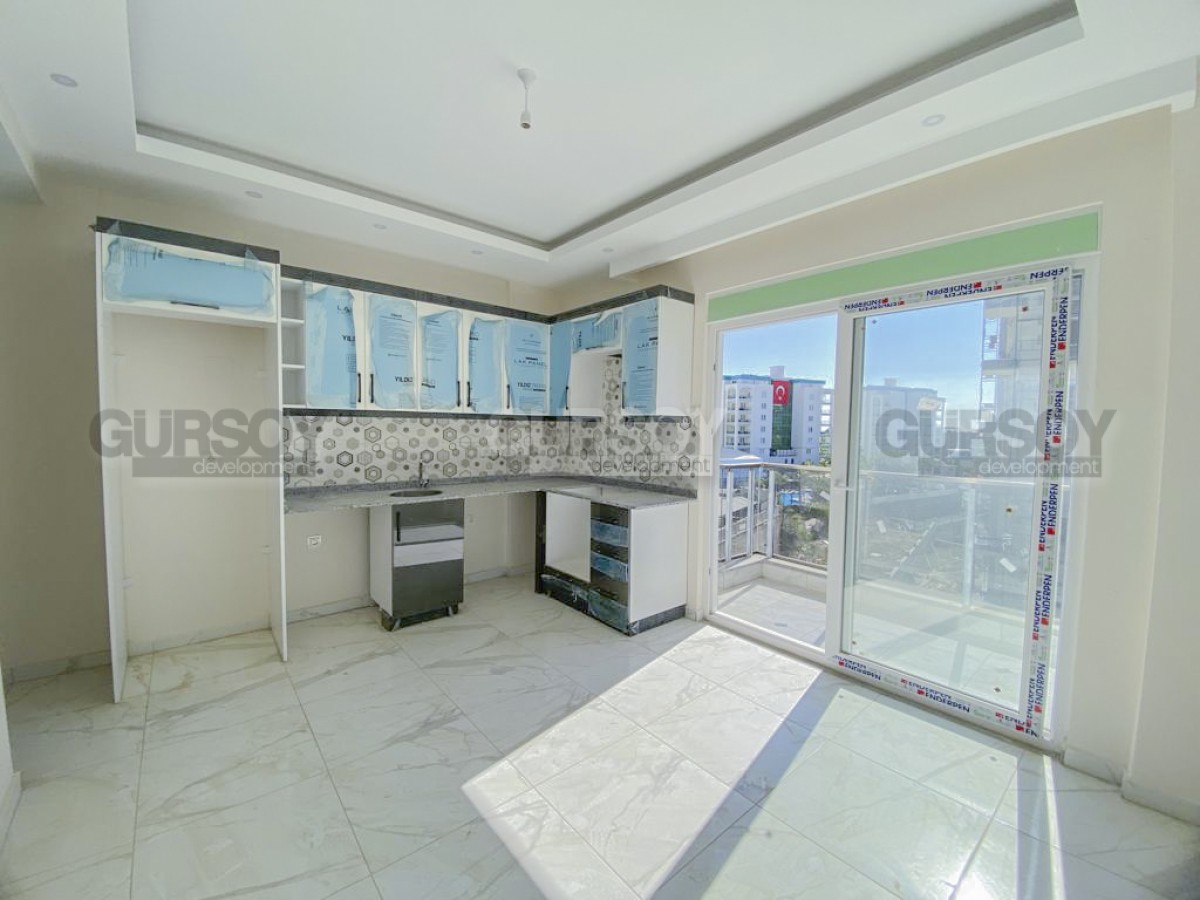 В данном разделе представлена недорогая квартира 1+1, общей площадью 50 м2, расположенная на 2-м этаже в небольшой резиденции, введенной в эксплуатацию в 2023 году. В планировке квартиры - совмещенная с кухней гостиная, спальня, санузел и балкон, с видом на новые кварталы города. В апартаментах уже завершены все отделочные работы, установлены подвесные потолки, напольное покрытие, входные и межкомнатные двери, кухонный гарнитур, душевая кабина и качественная сантехника.