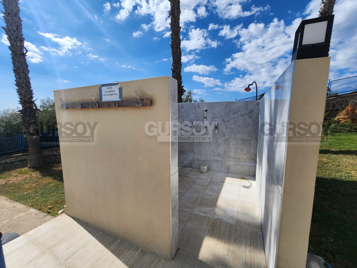 Расстояние до моря — около 700 метров. Из всех частей виллы открывается вид на море и бассейн. Локация тихая, зелёная и считается одной из наиболее приятных для жизни в районе Демирташ.