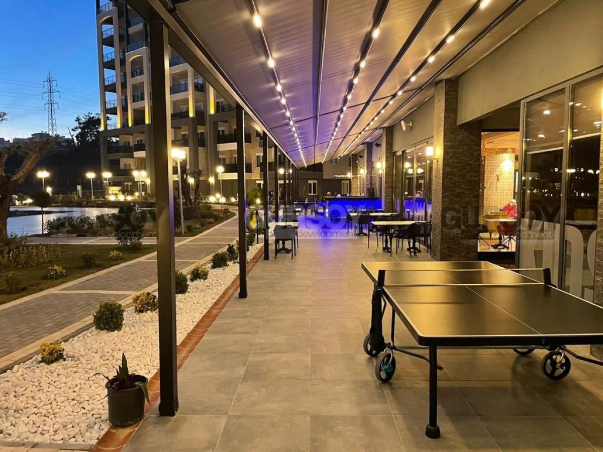 На территории комплекса есть открытый плавательный бассейн, закрытая благоустроенная территория, сад, детский бассейн, водные горки, зона для загара и отдыха, рецепция, консьерж-сервис, ресторан, бар, кафе, внутренний бассейн с подогревом, фитнес-центр, хамам, сауна, паровая баня, джакузи, массажный кабинет, кинотеатр, детская игровая комната, комната Play Station и ТВ, бильярд и настольный теннис, центральное спутниковое телевидение, интернет-WI-FI в местах общего пользования, площадки для барбекю с беседками, теннисный корт, волейбольная площадка, детская площадка, магазин, резервный генератор, автомобильная парковка, охрана и видеонаблюдение 7/24.